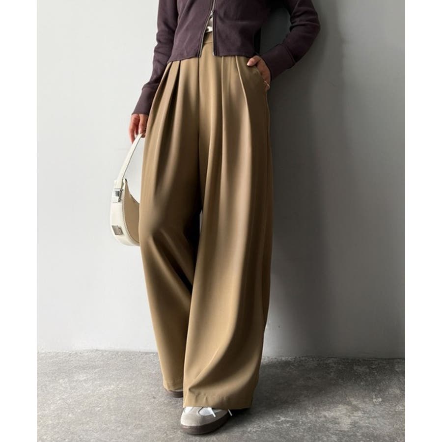 リラックス感ときちんと感を両立。上品見えするとろみ素材2タックスラックスパンツ