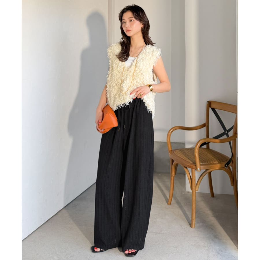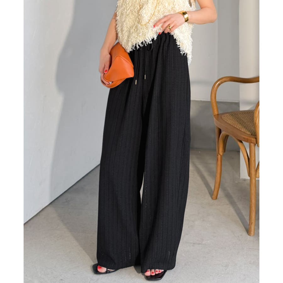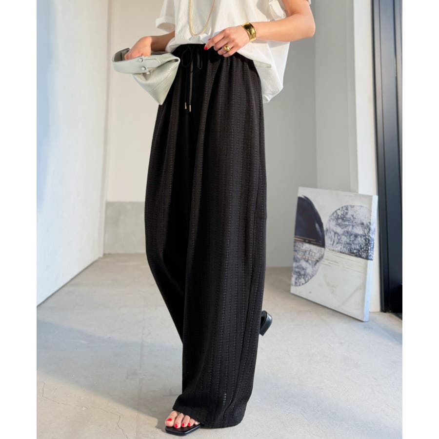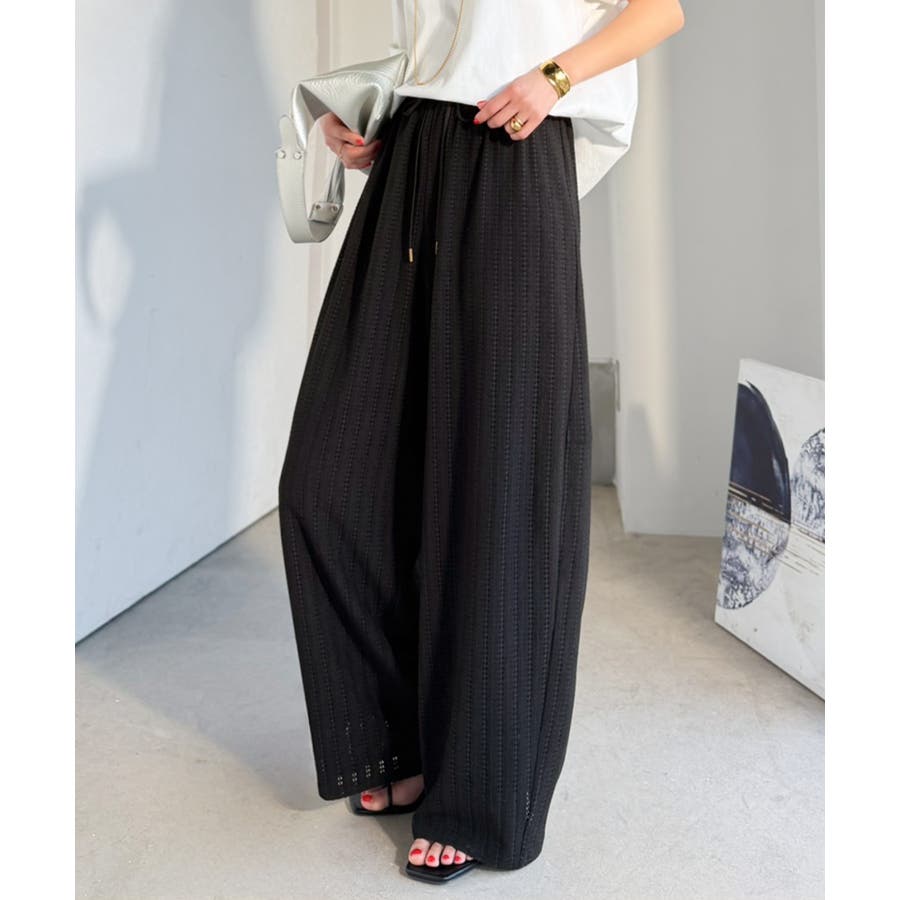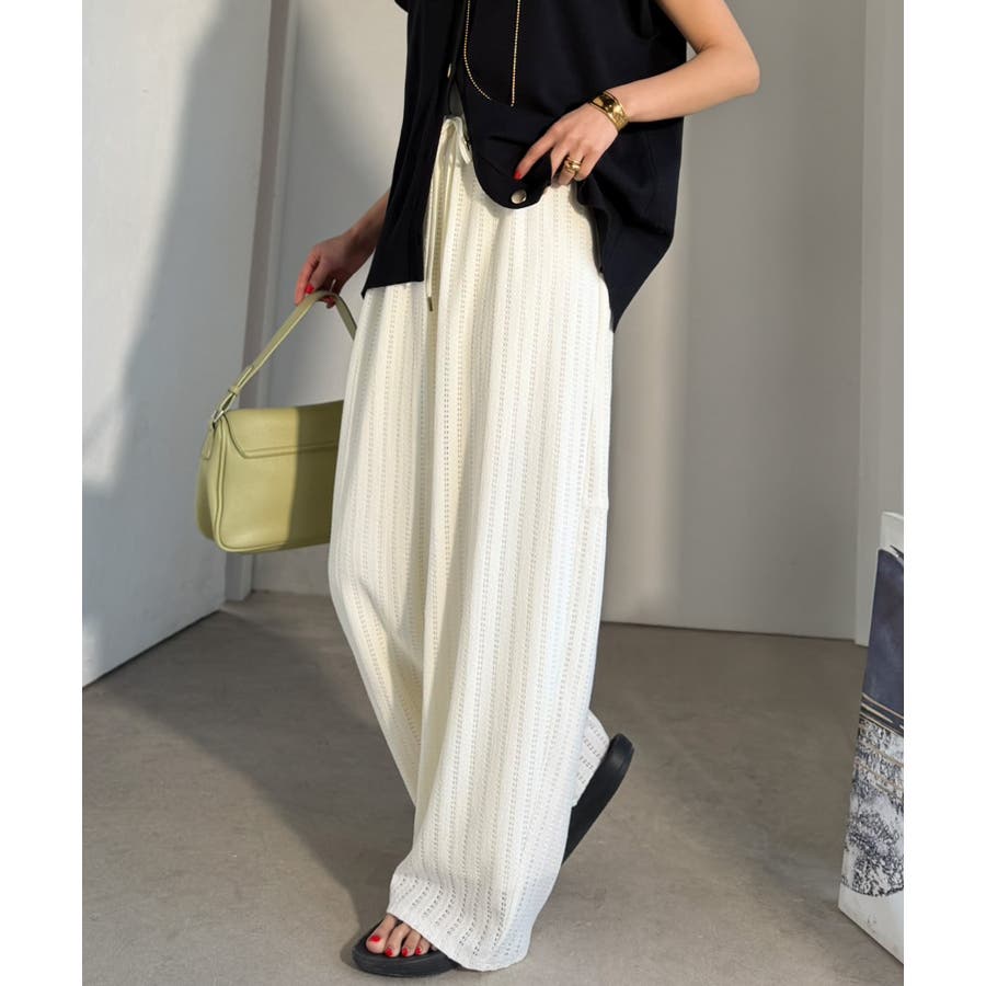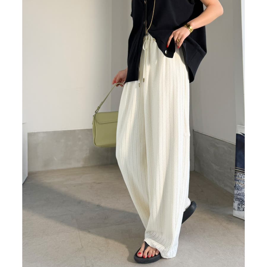 透かし編みでラクチンに映える♪ジャガードレースギャザーコクーンパンツ