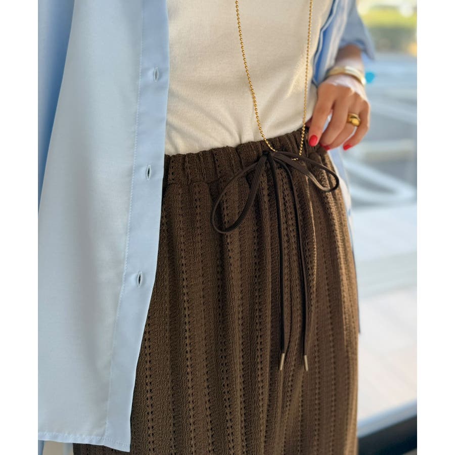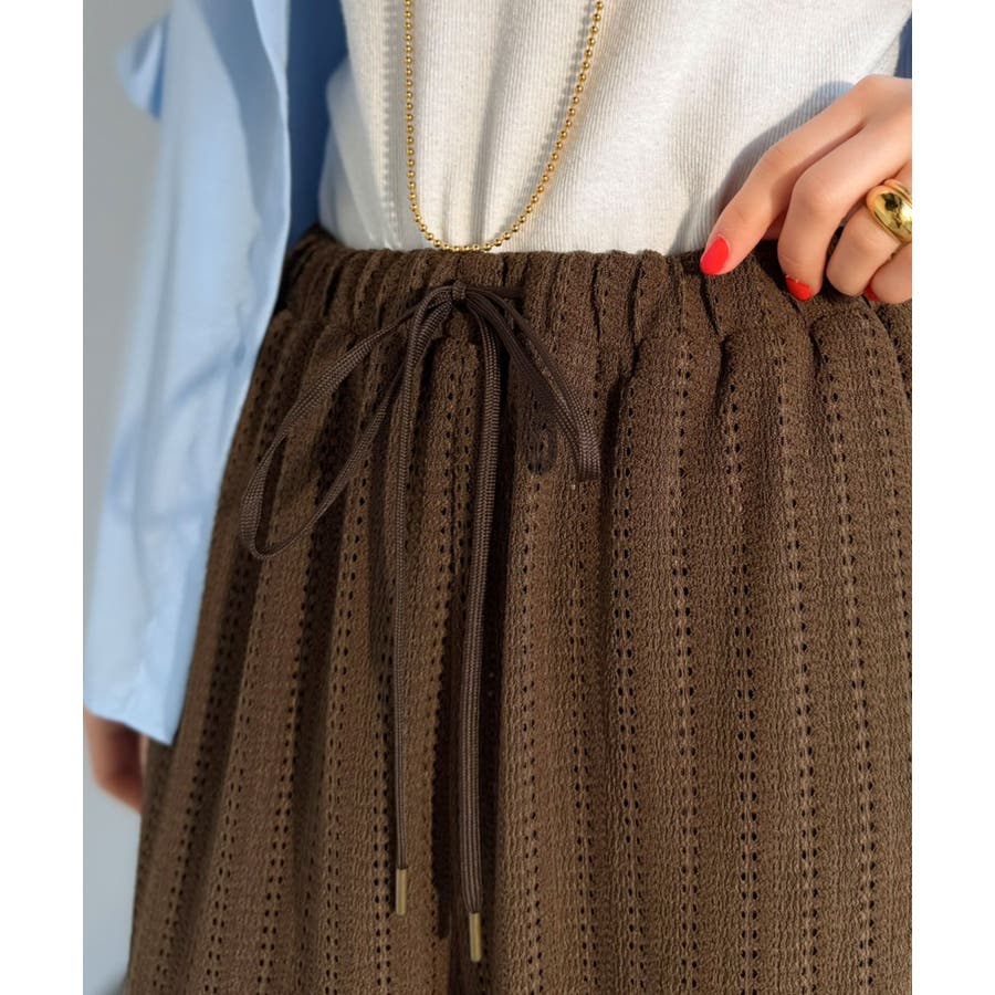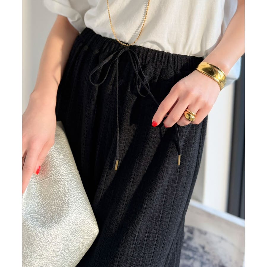 レース調の表情がシンプルなトップスと好相性で、カジュアルにもきれいめにも着回せる一本です。