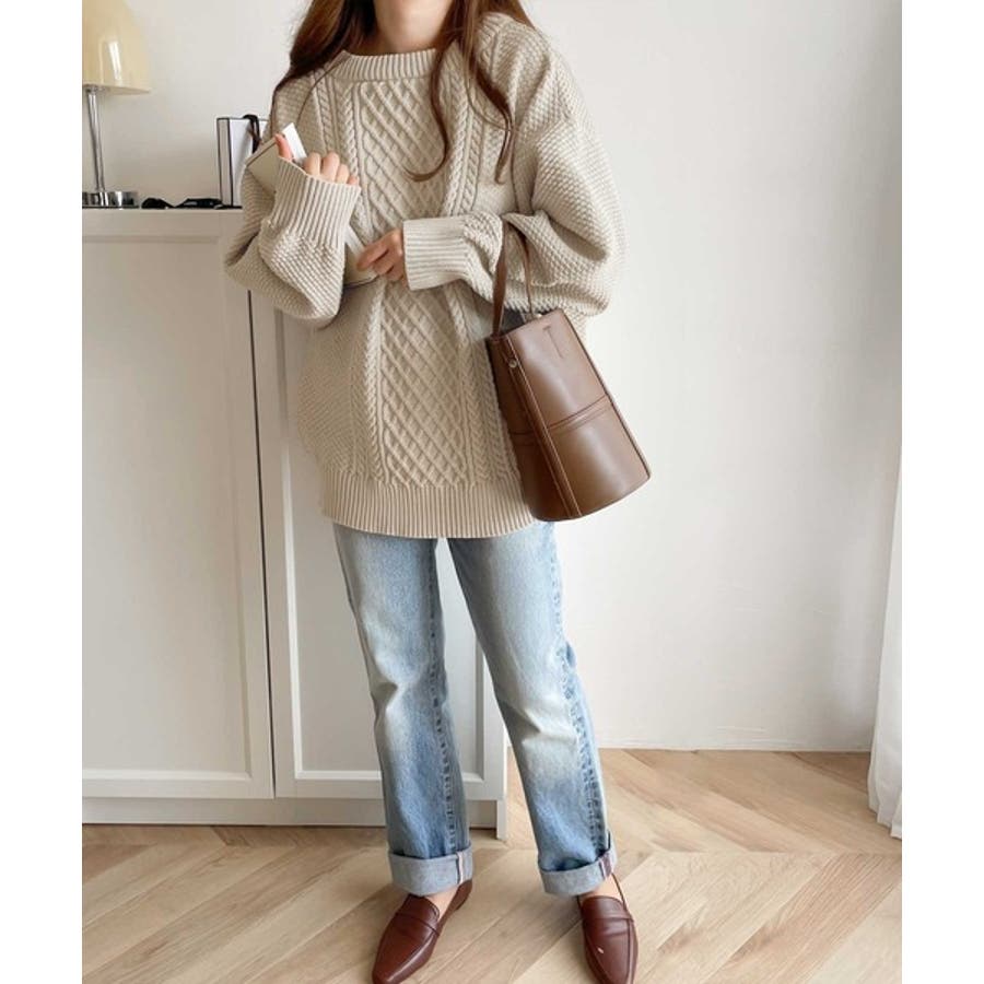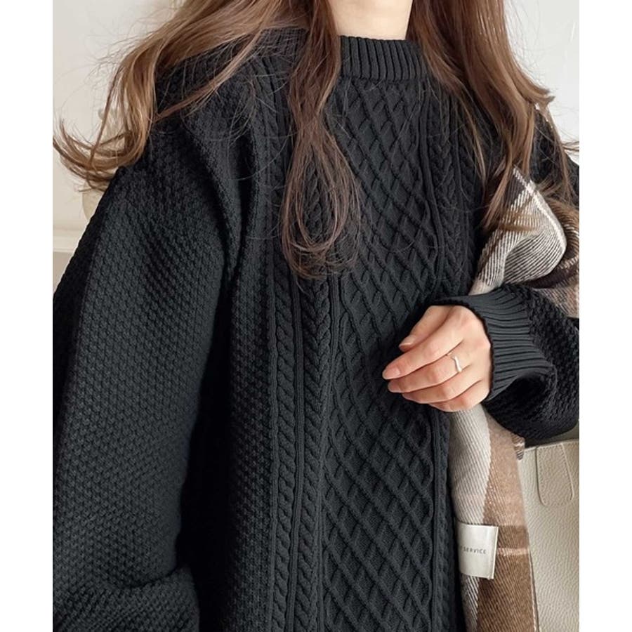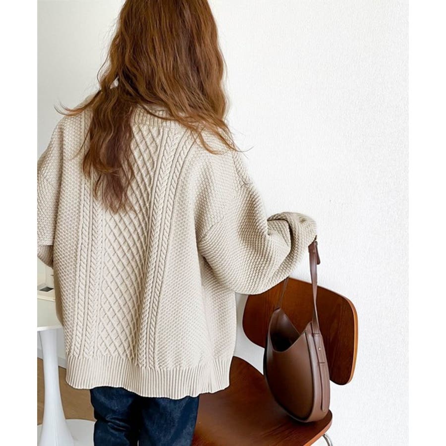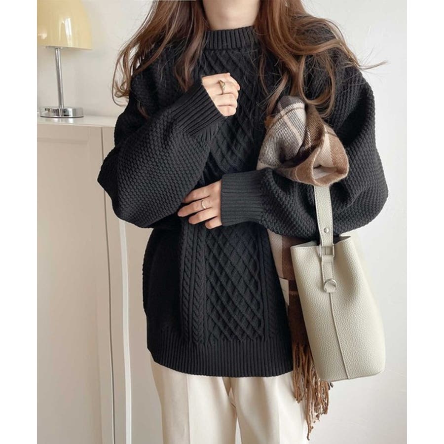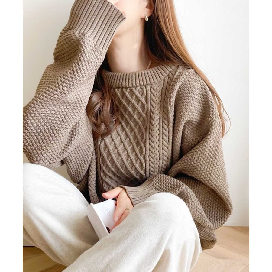 ケーブル編みのデザイン性がプラスされた1枚を選ぶとさらにシャレ見えに。