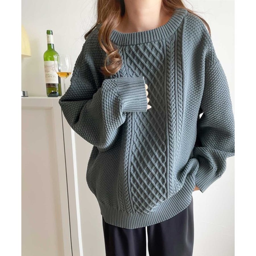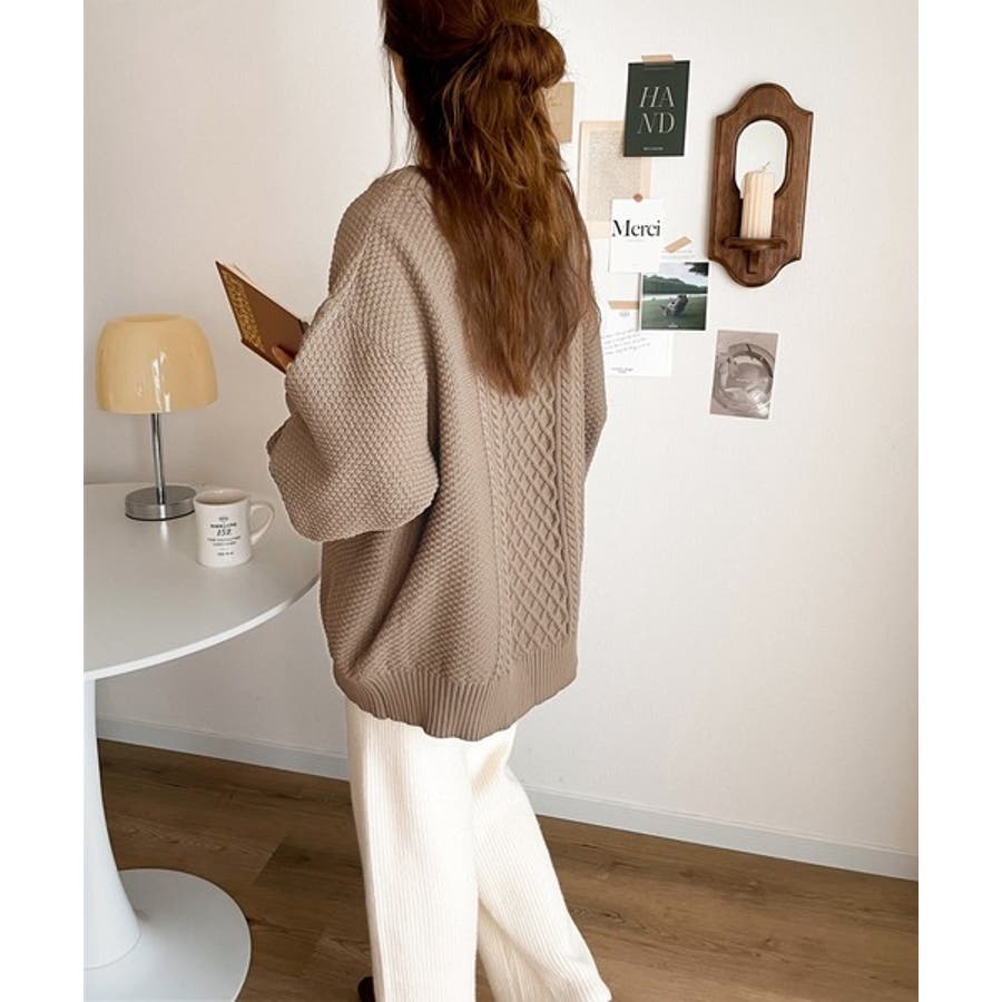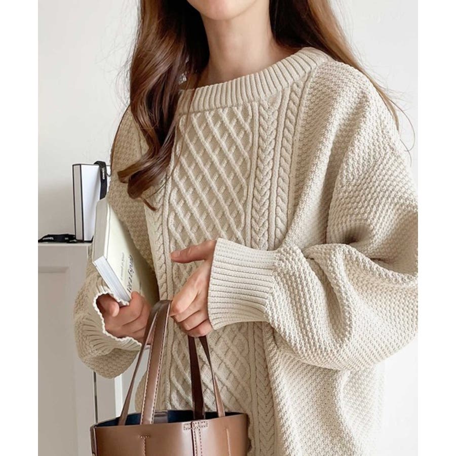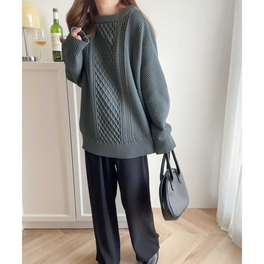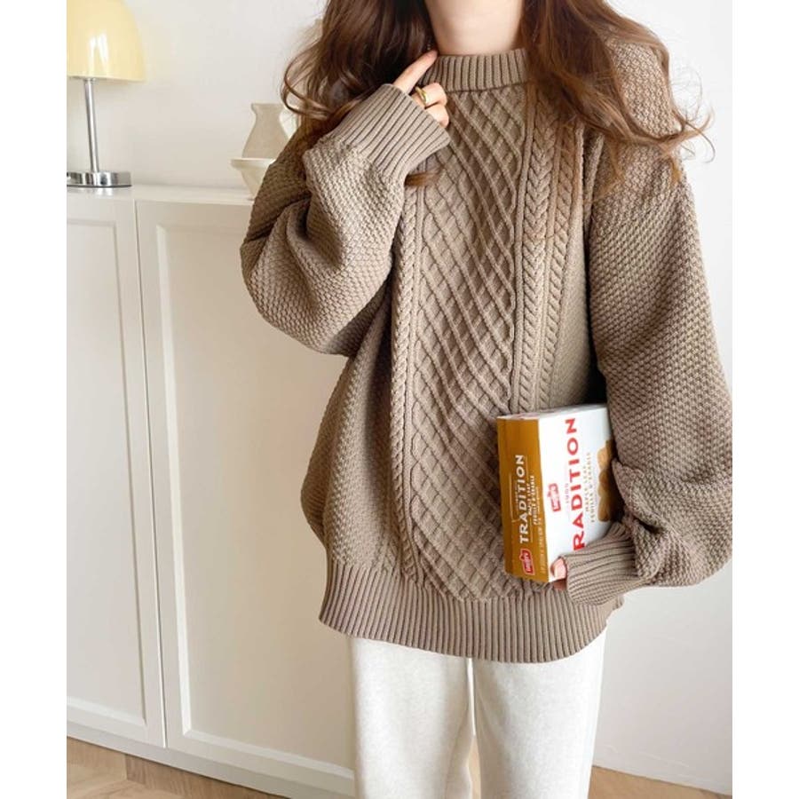 ケーブル編みのデザイン性がプラスされた1枚を選ぶとさらにシャレ見えに。