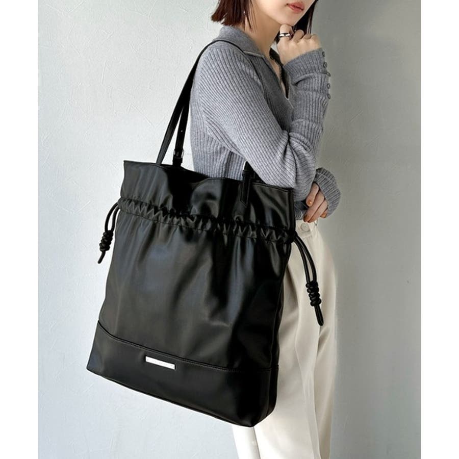 きゅっと絞って可愛さ◎フェイクレザービッグトートバッグ