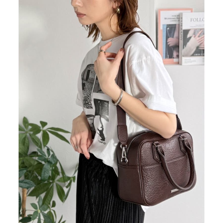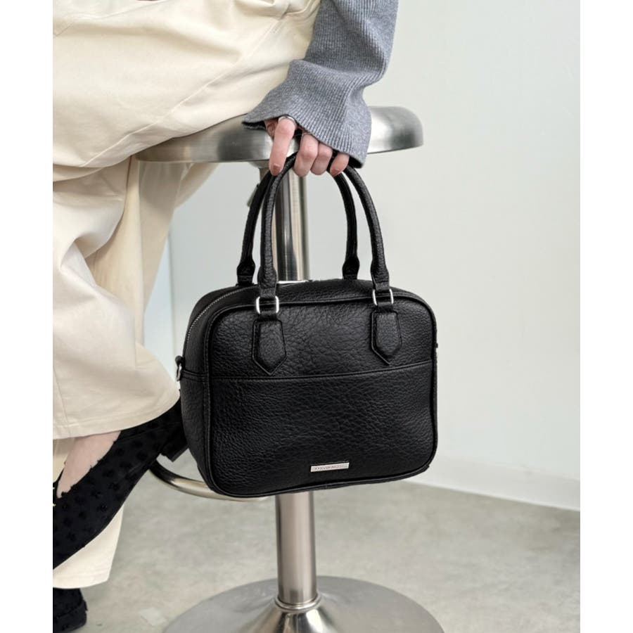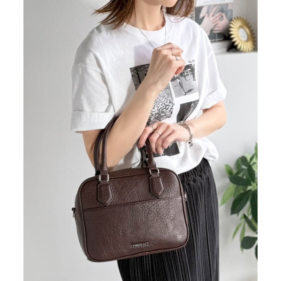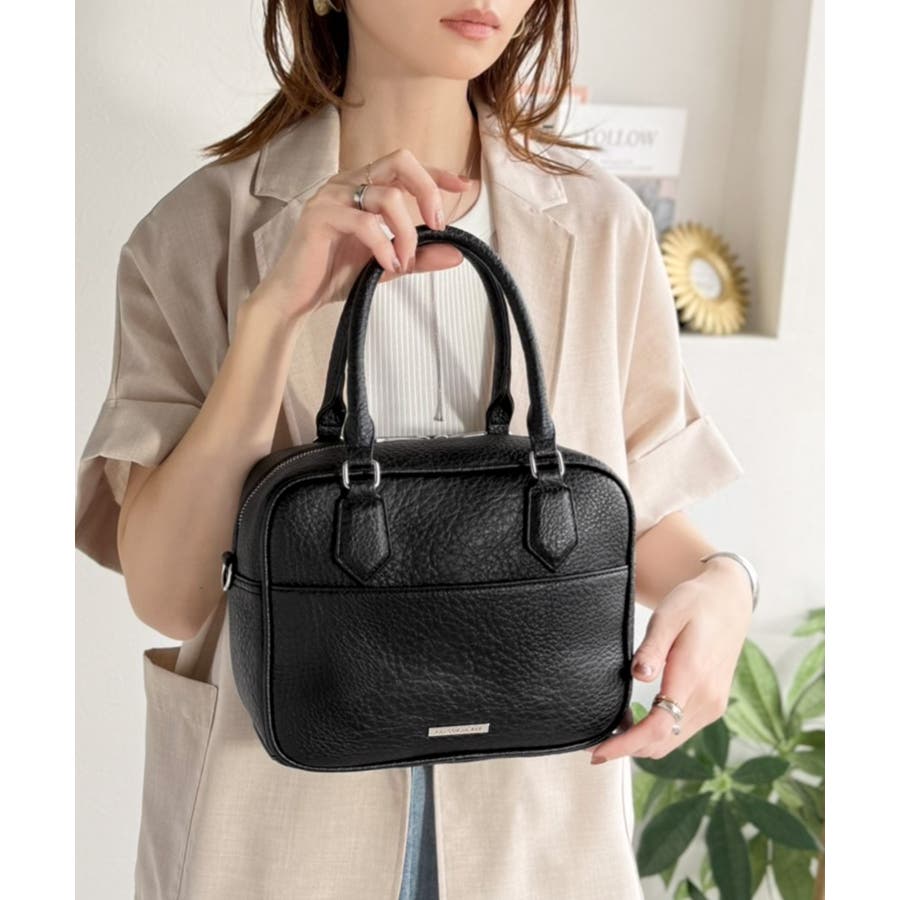 フェイクレザー素材でベーシックなデザインだから、どんなコーデにも合わせやすくて使いやすい万能ミニボストン♪