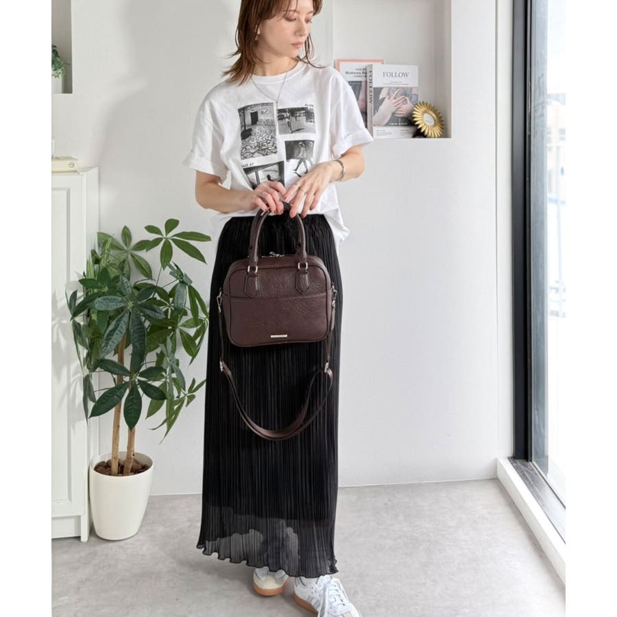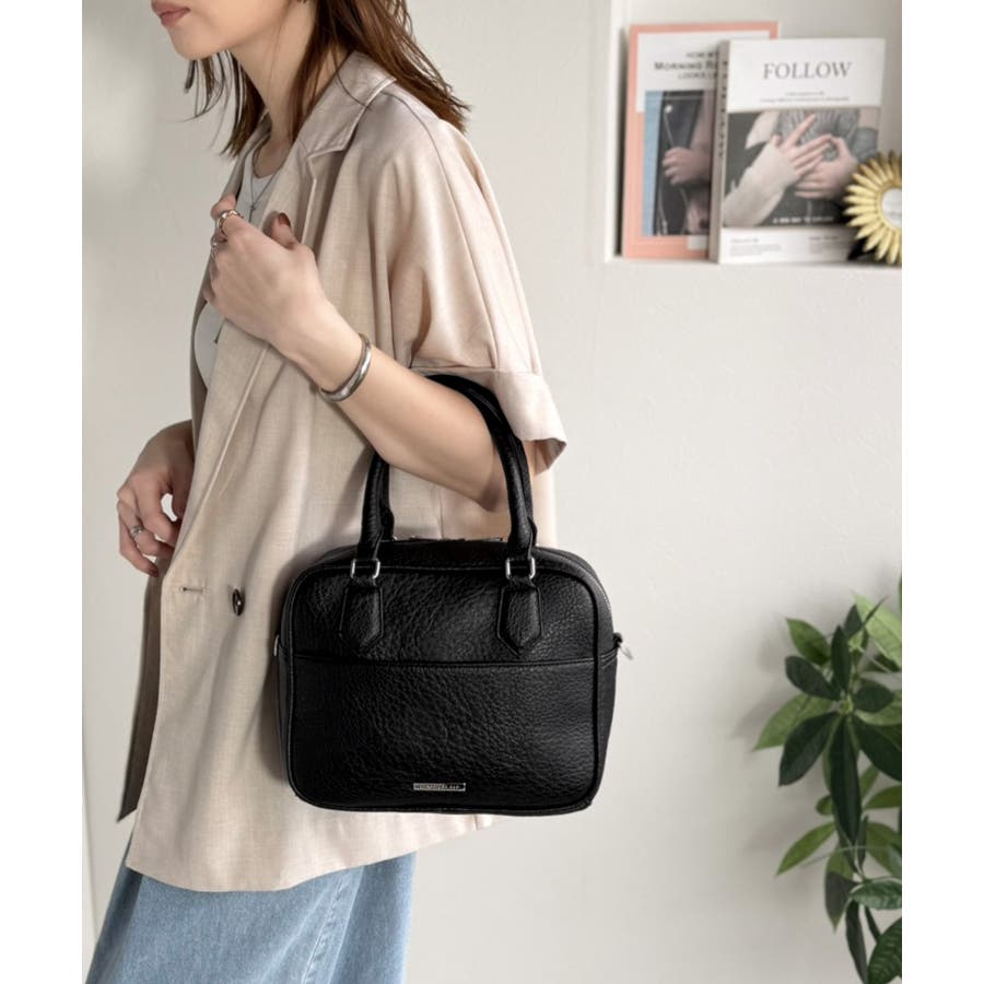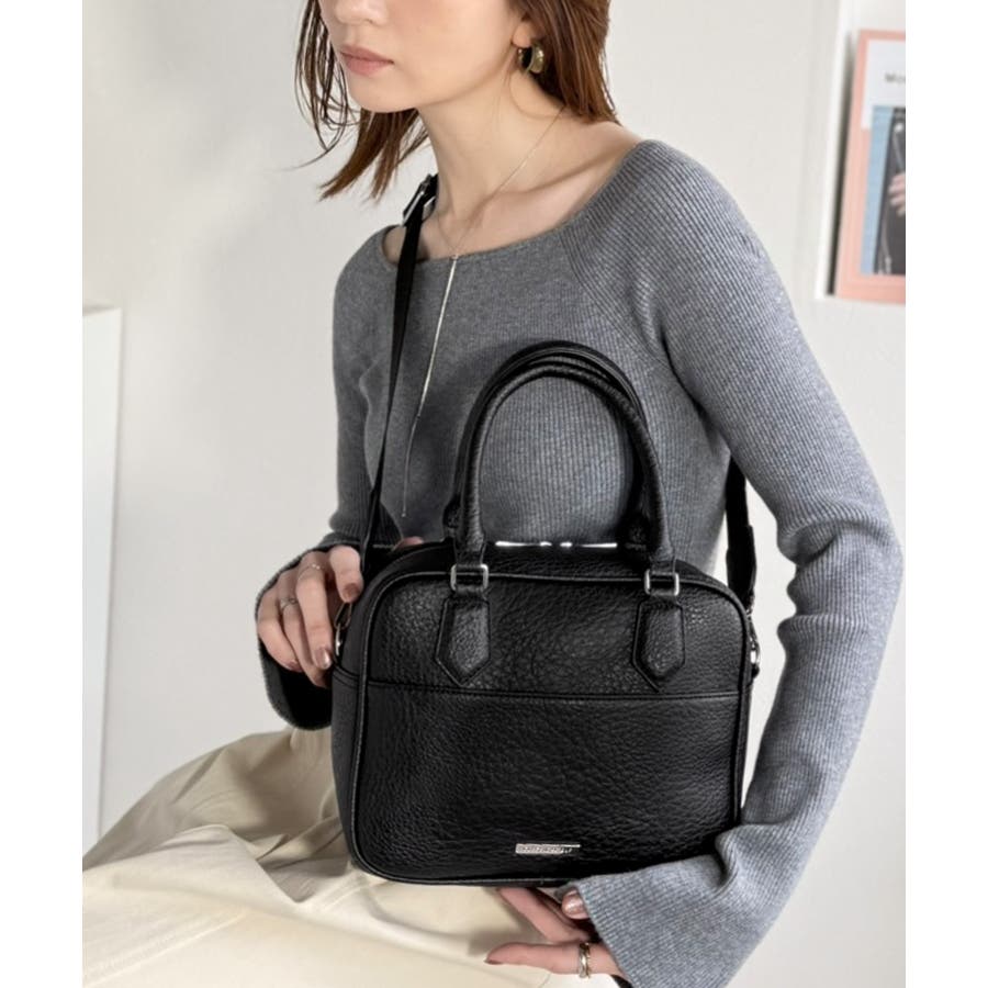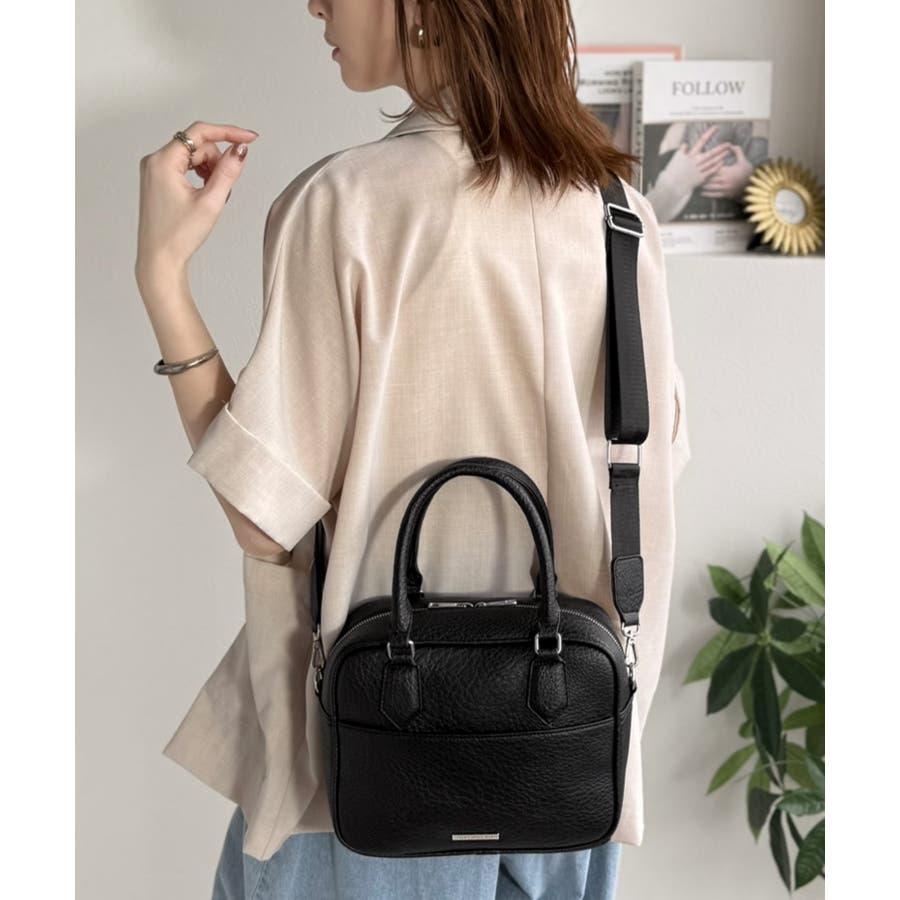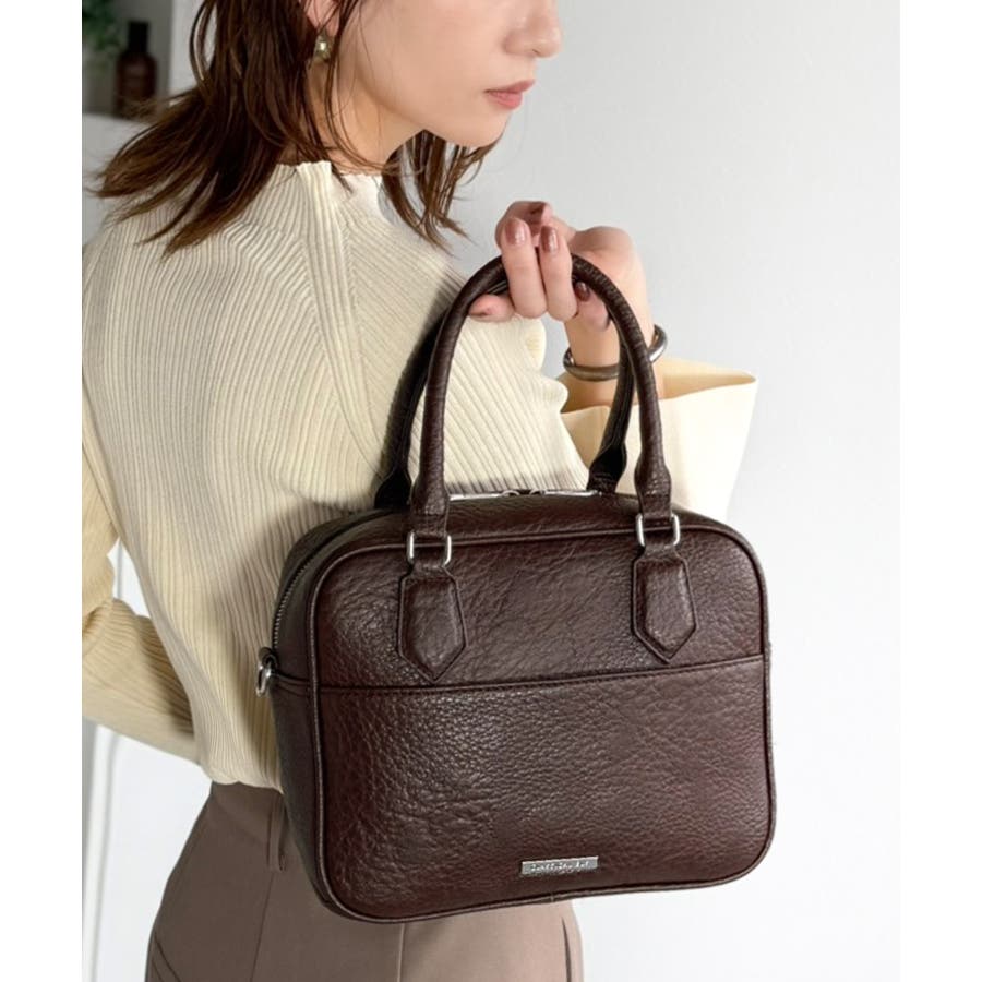 フェイクレザー素材でベーシックなデザインだから、どんなコーデにも合わせやすくて使いやすい万能ミニボストン♪