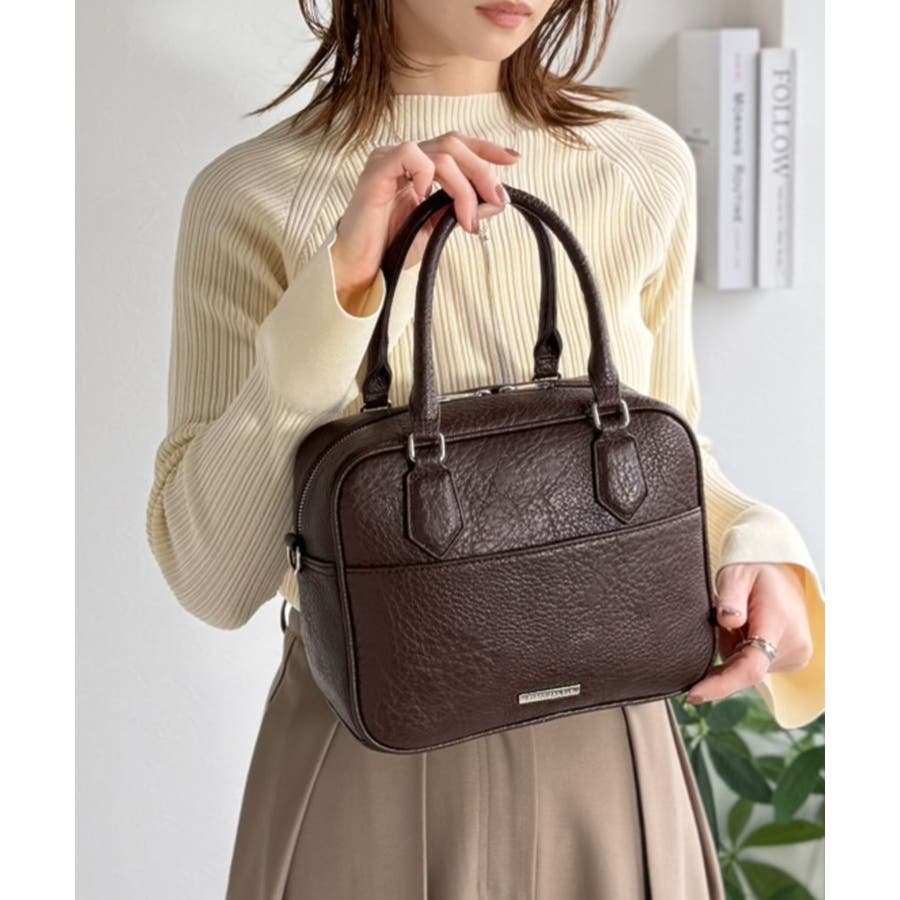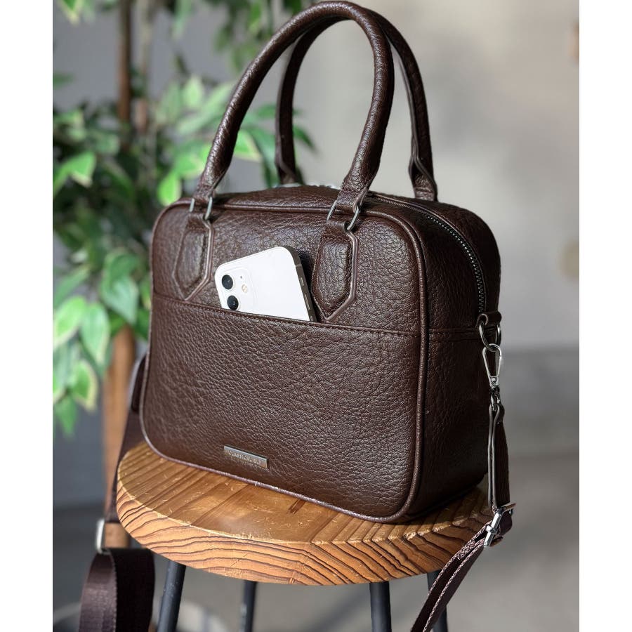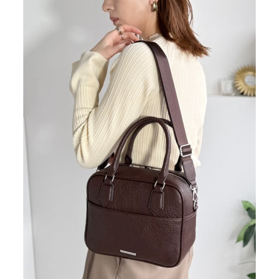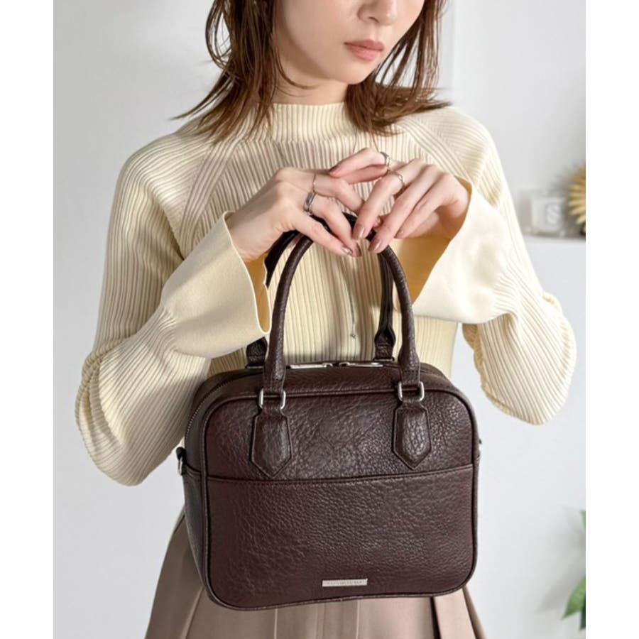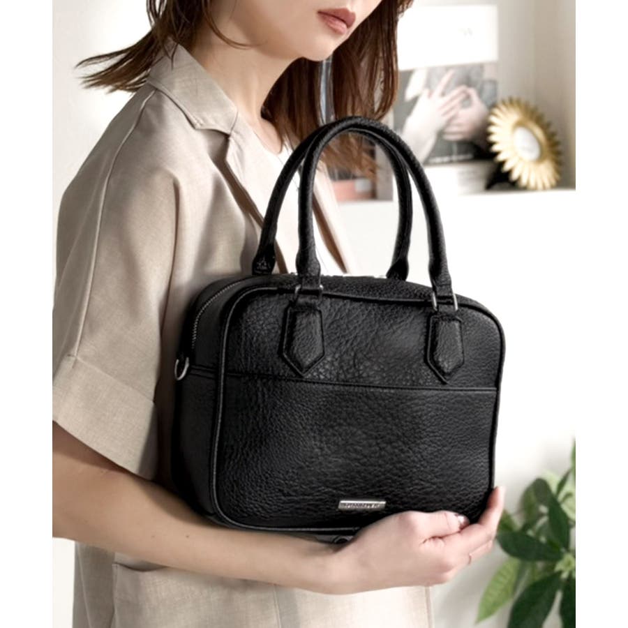 大人上品にキマる!フェイクレザー2wayスクエアボストンショルダーバッグ