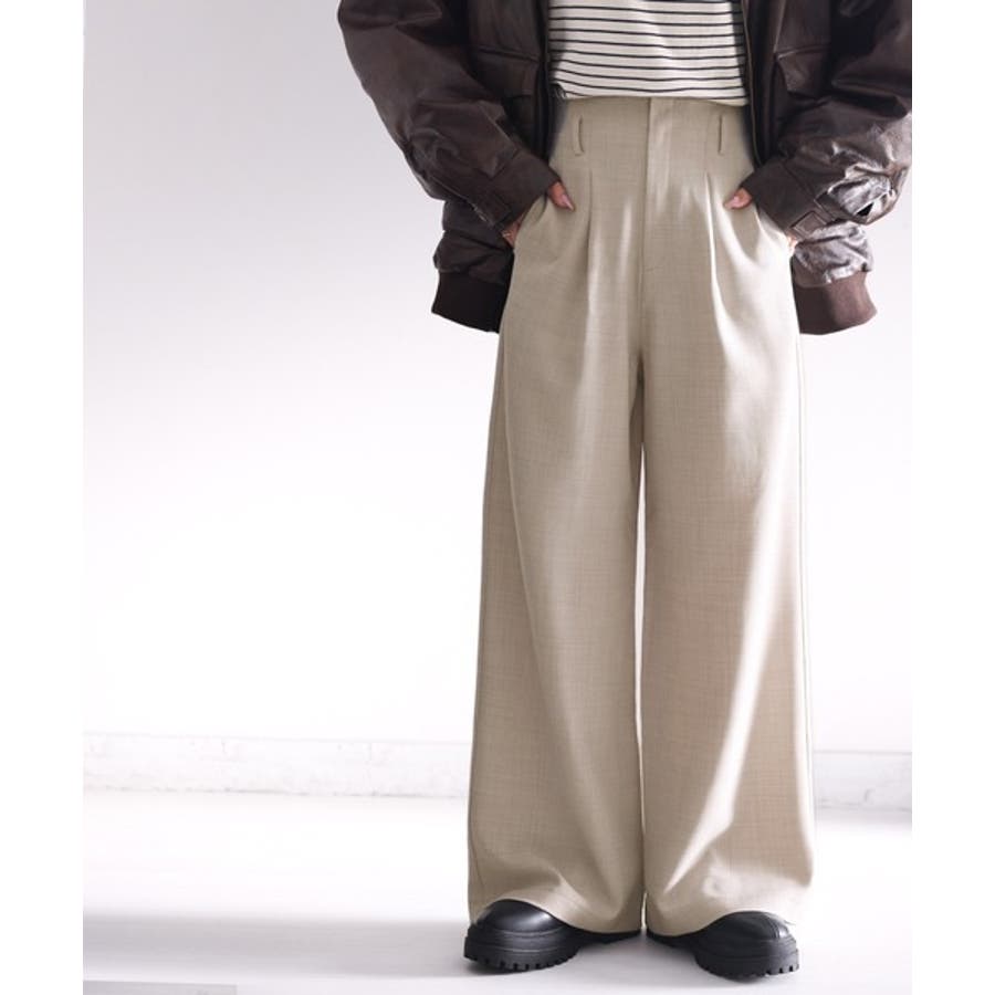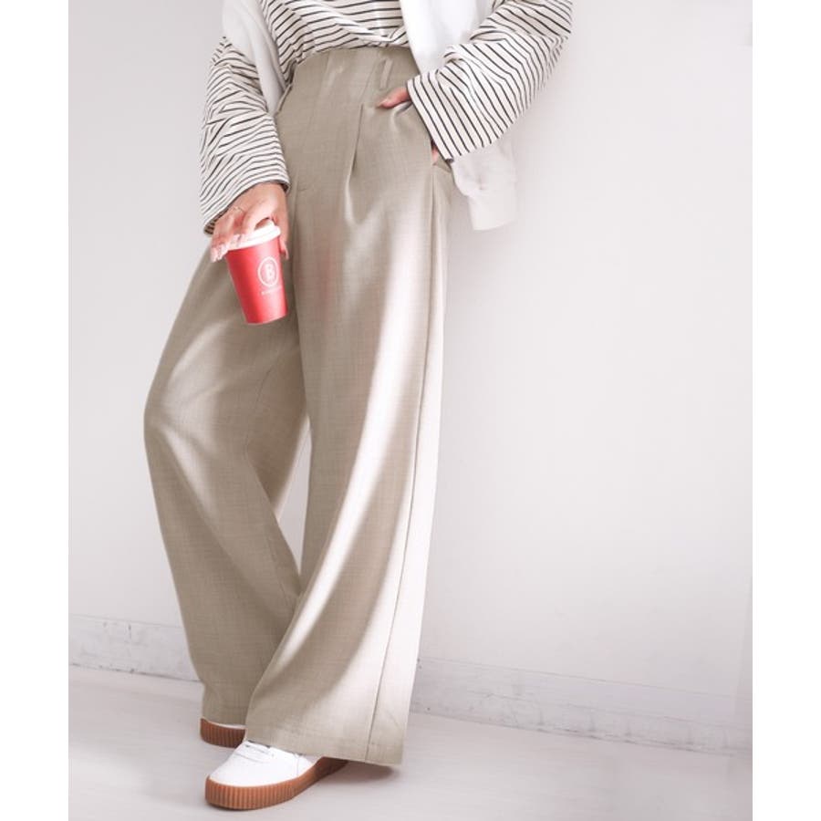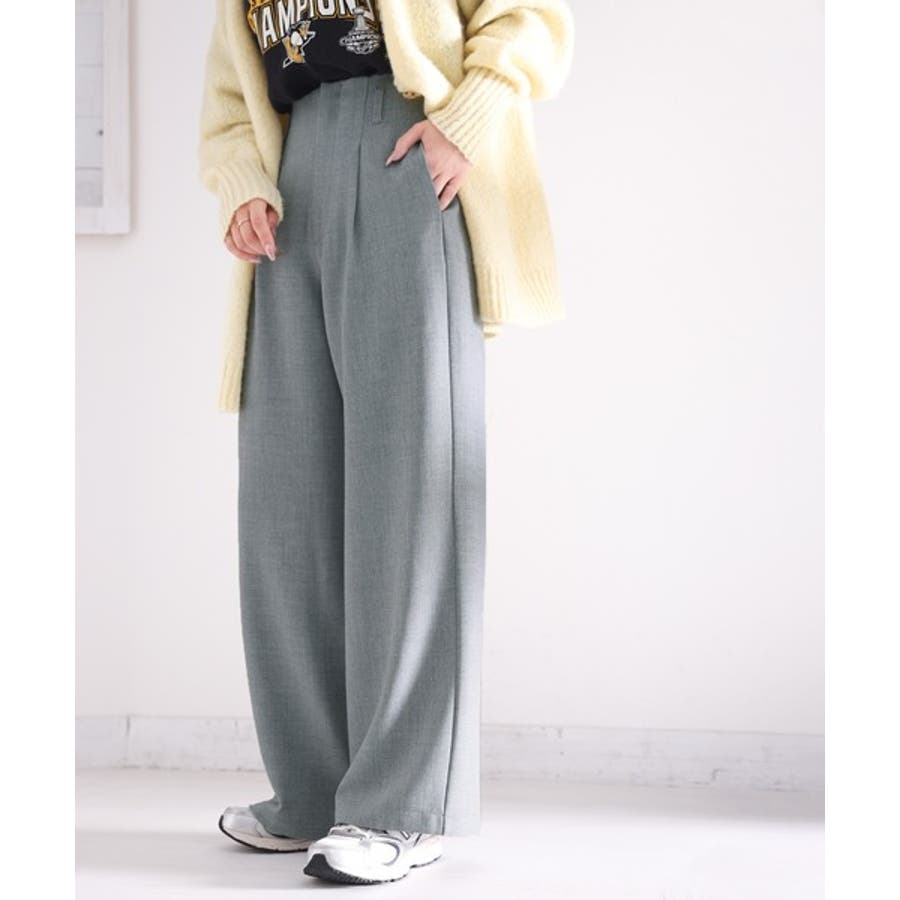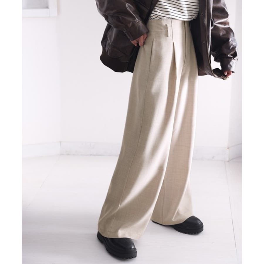 さらっと美脚見せ。メランジ タックワイドパンツ
