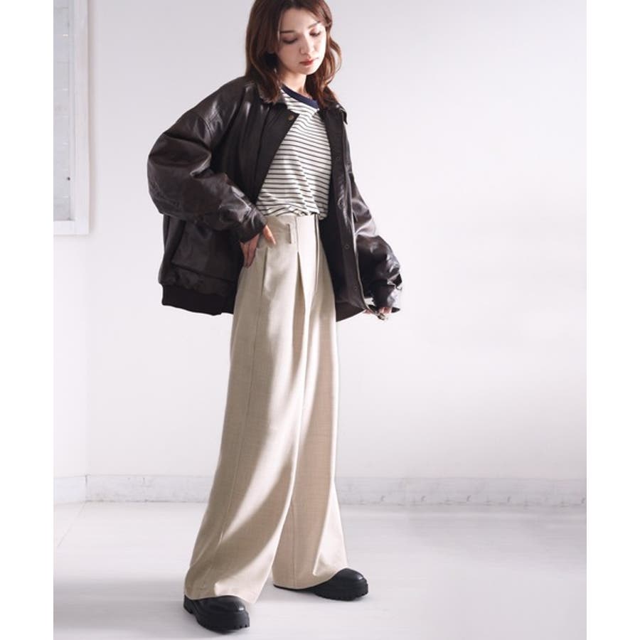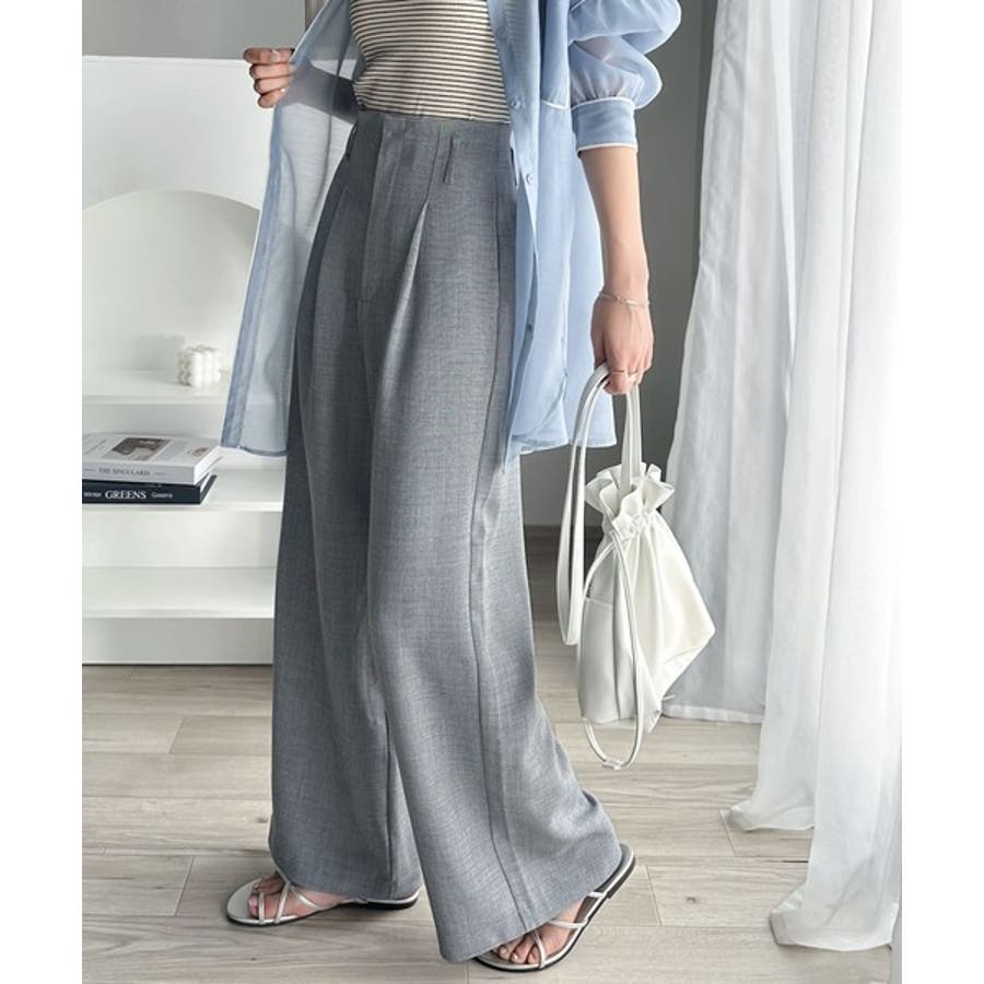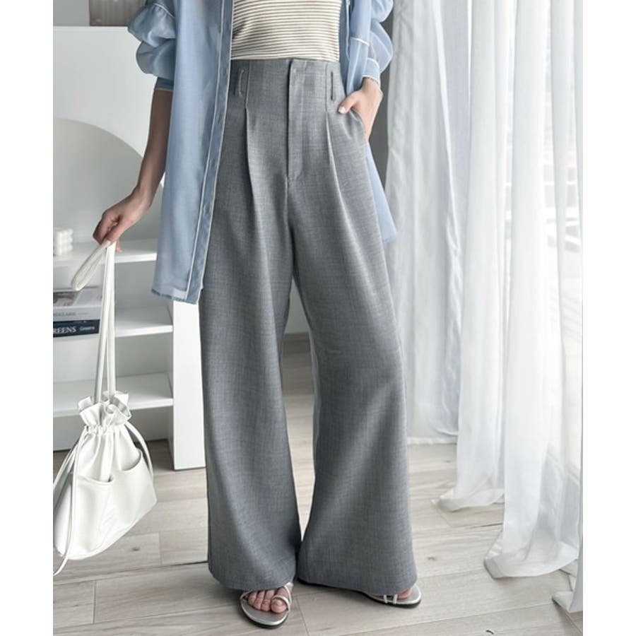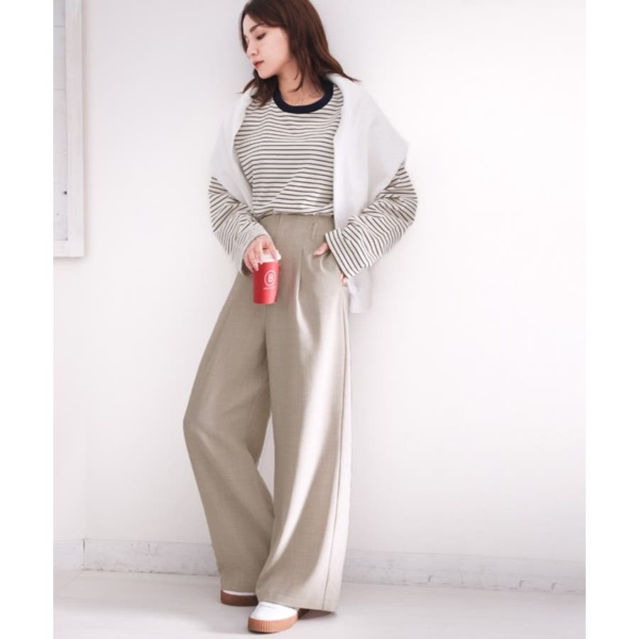 さらっと美脚見せ。メランジ タックワイドパンツ