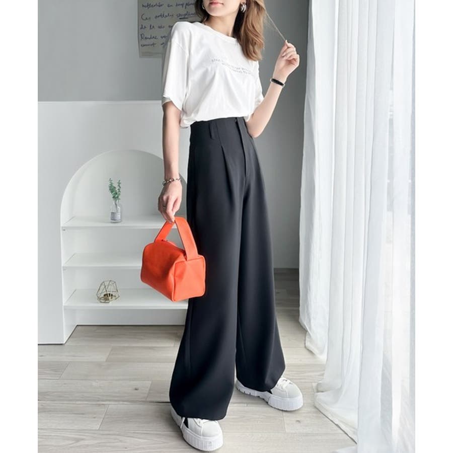 ハイウエストデザインでスタイルアップが叶うワイドシルエットのパンツ。