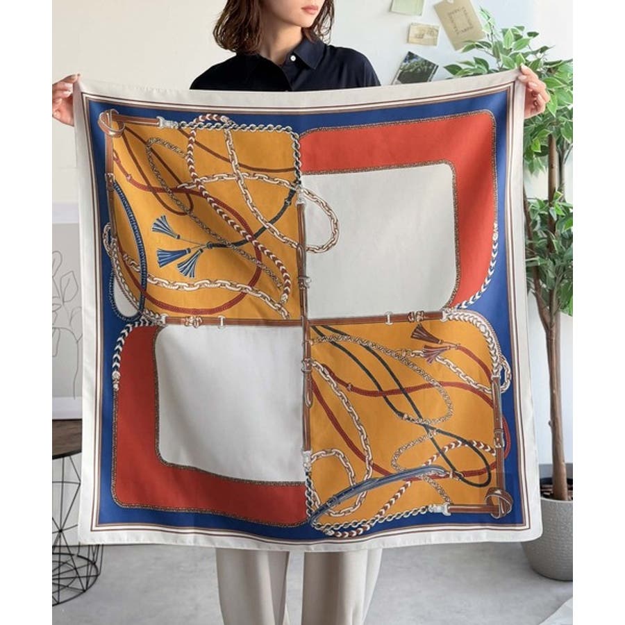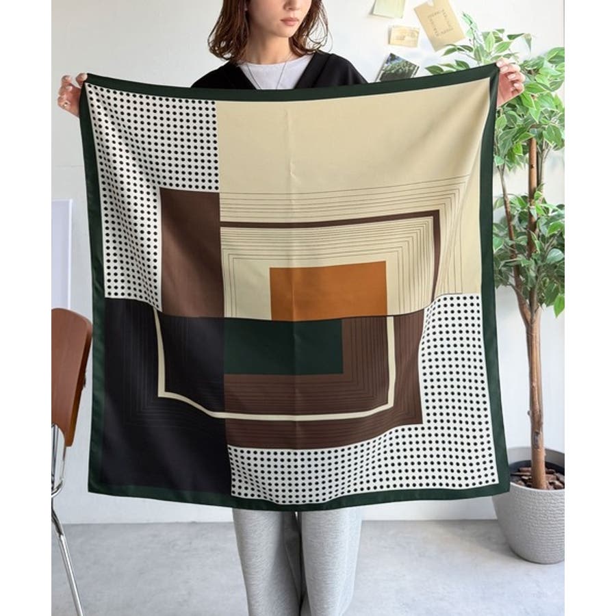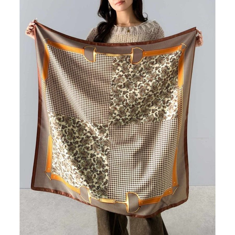 上品カワイイ♪90cm×90cmパネル柄シルクライク大判スカーフ