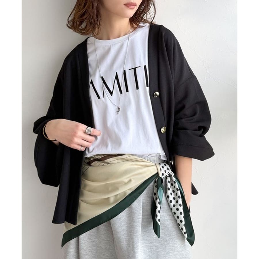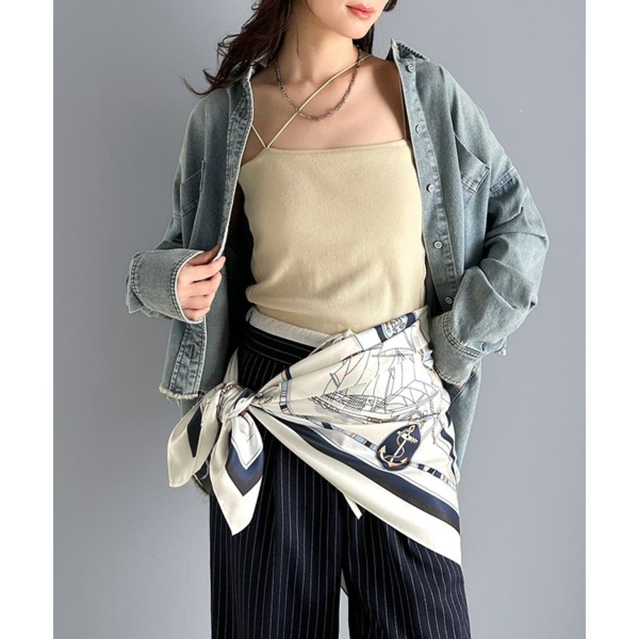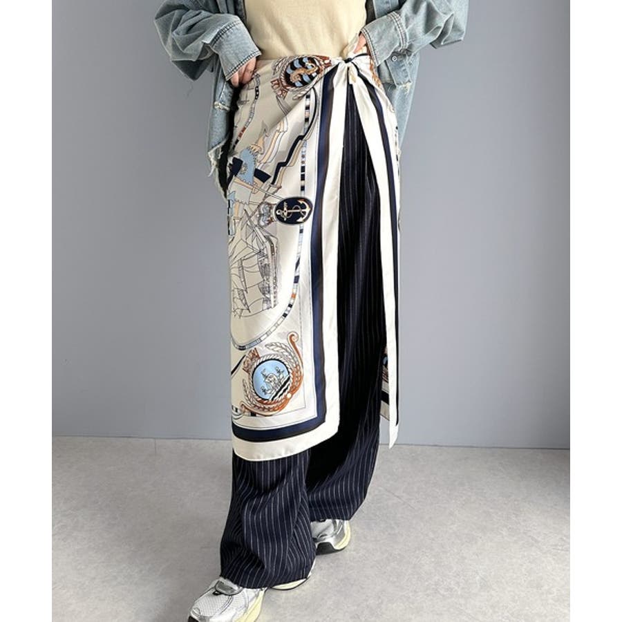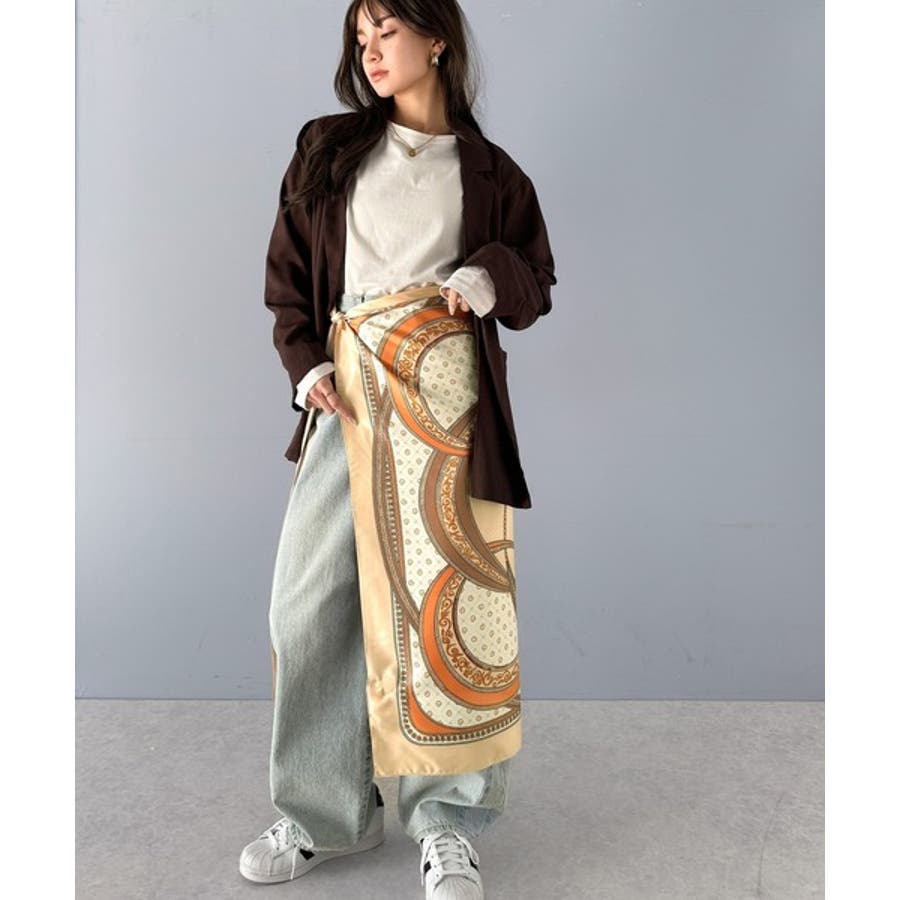 ラップスカート風にボトムスの上からレイヤードして、トレンドを意識したスタイルにも◎。