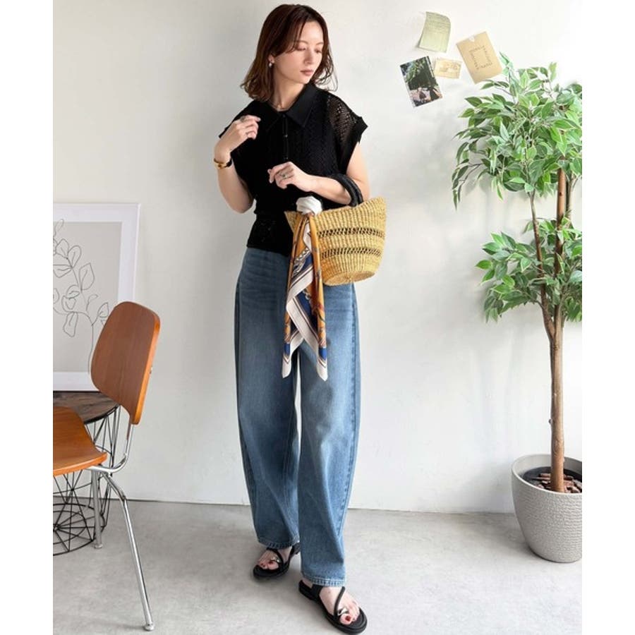 デニムとの相性も抜群。ハーフジップのトップスに合わせて、スカーフをレイヤードすれば、上品な大人カジュアルを演出します。