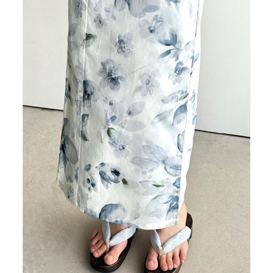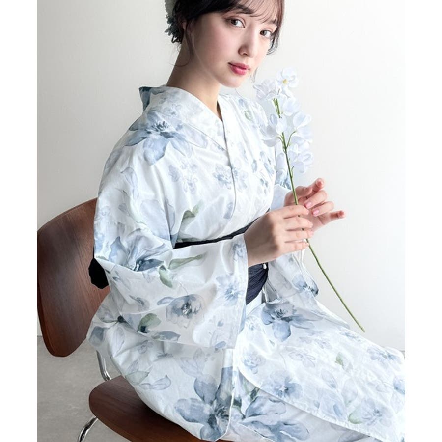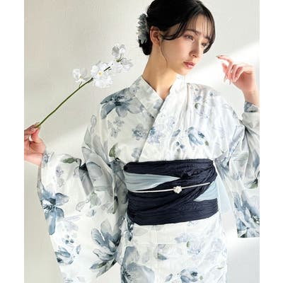 白地に大人の女性らしい花柄が施された浴衣2点セット。