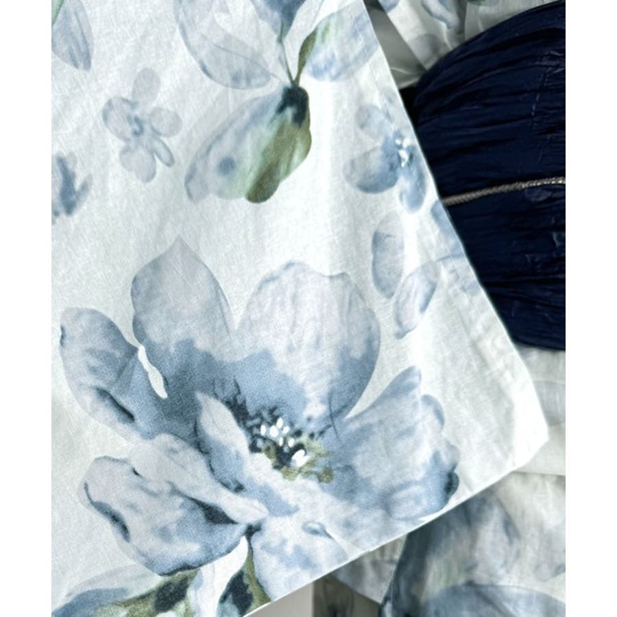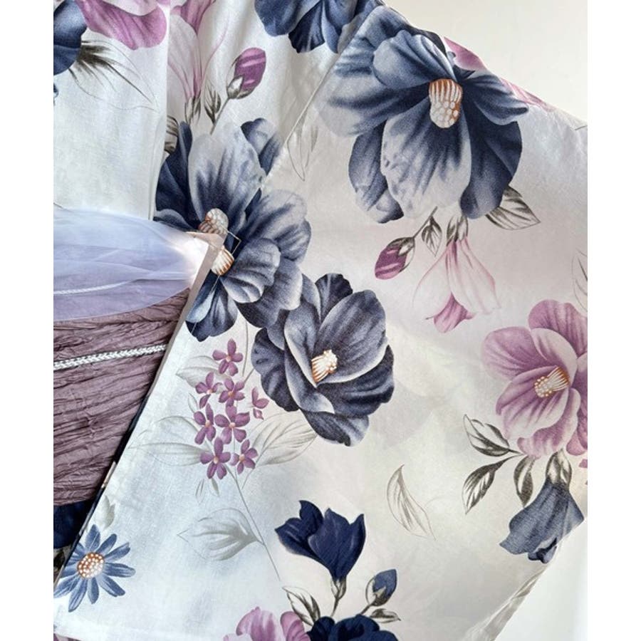 アイボリーベース×薄紫と濃紺の花柄(帯は薄紫色)
