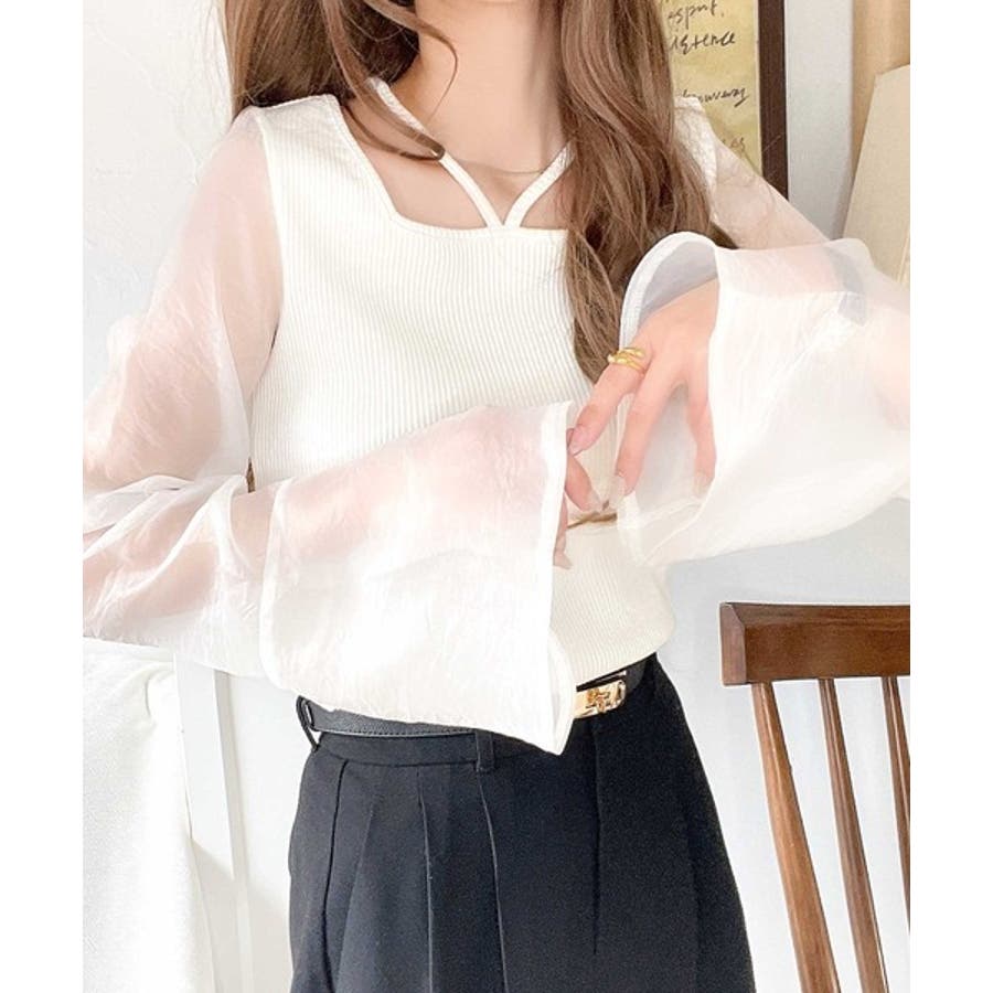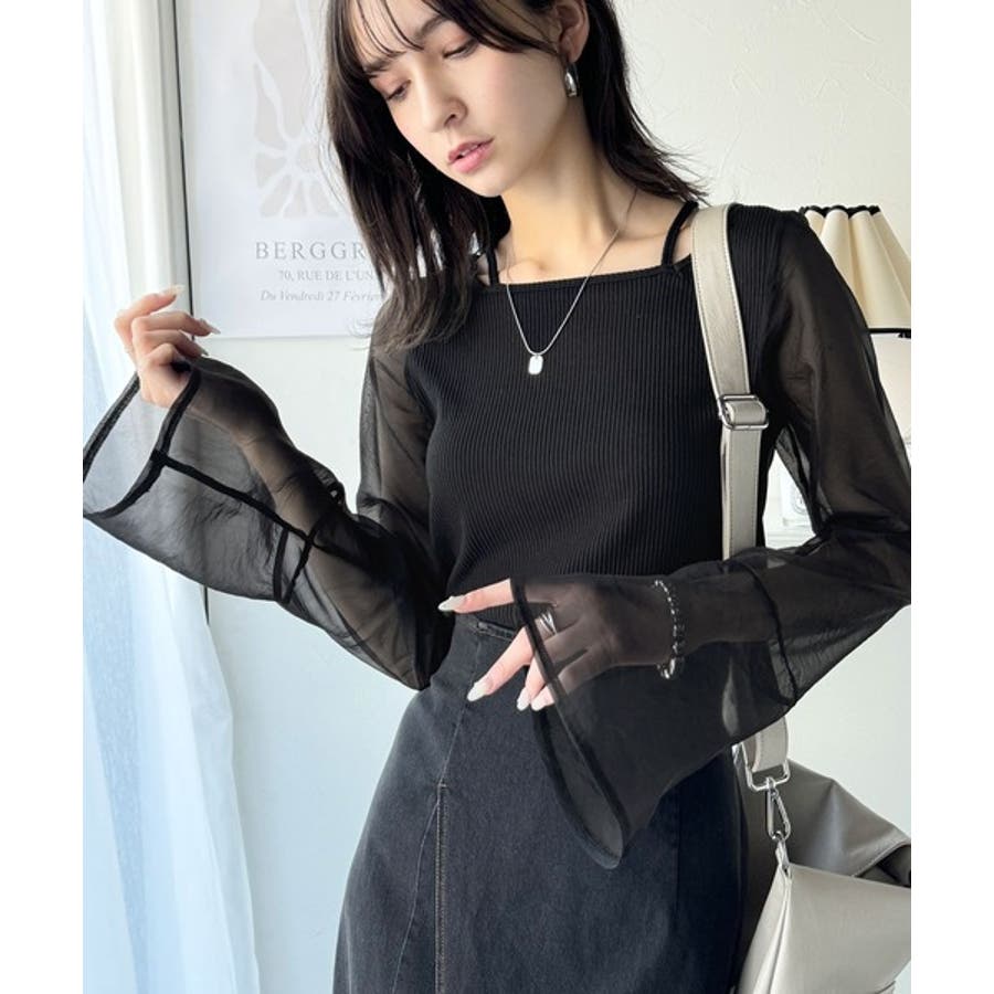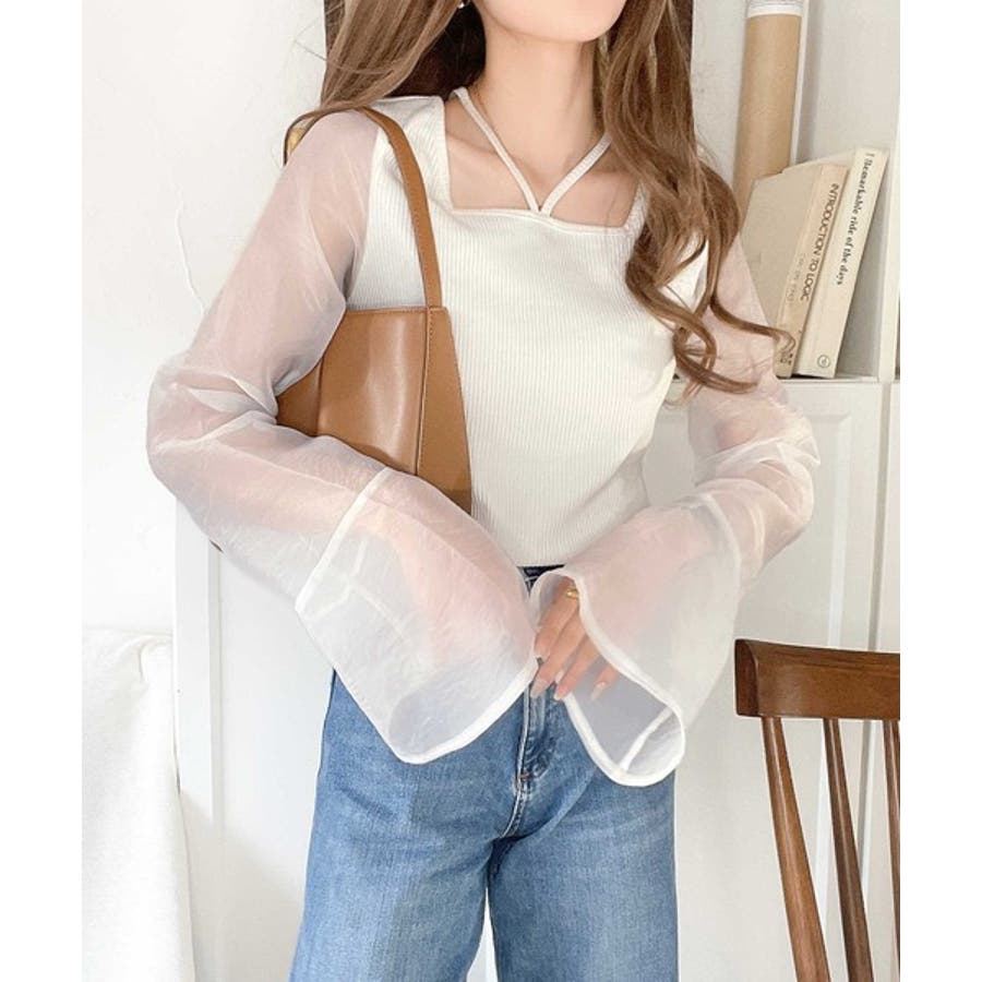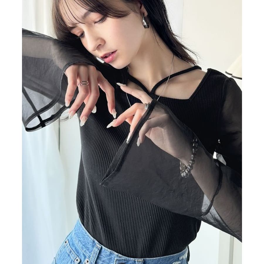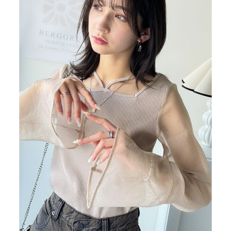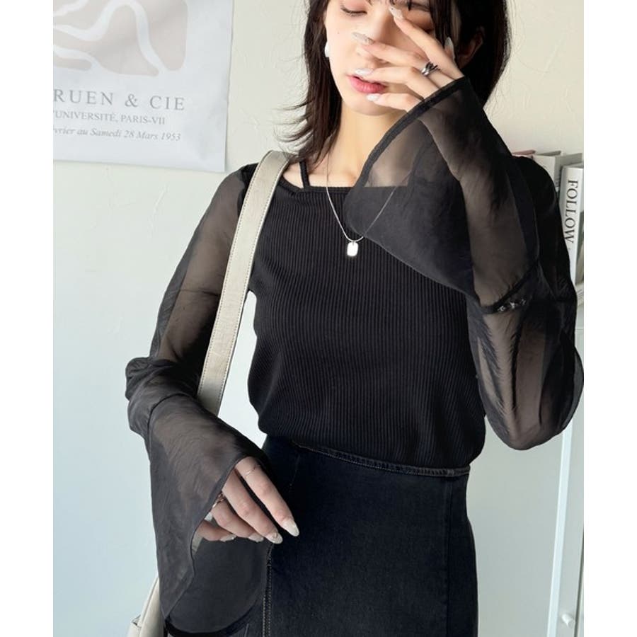 繊細な美しさを纏う。前後2wayオーガンジースリーブリブトップス