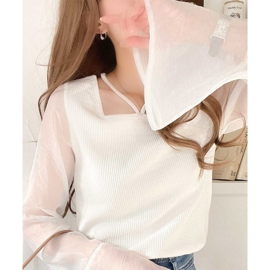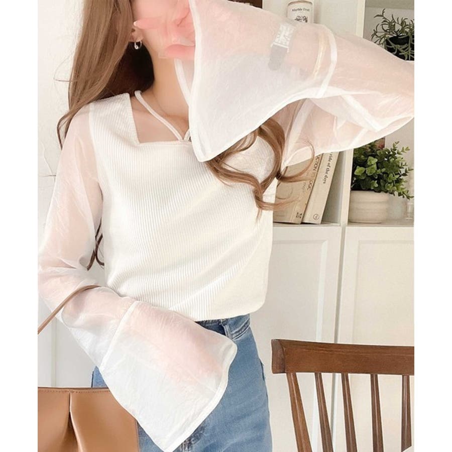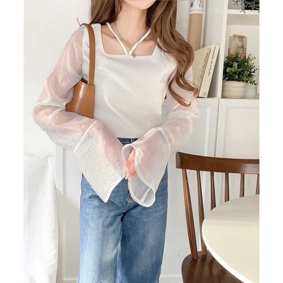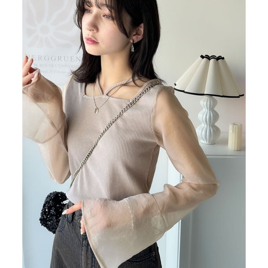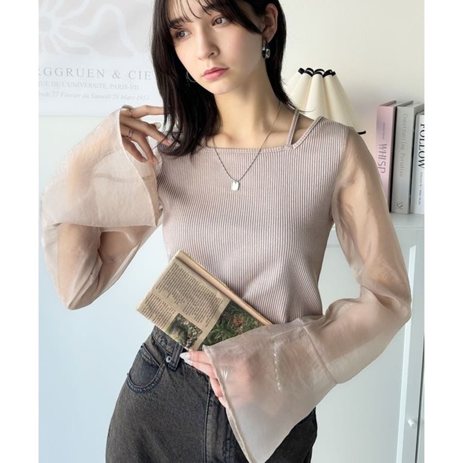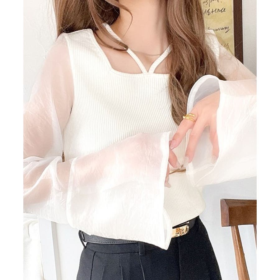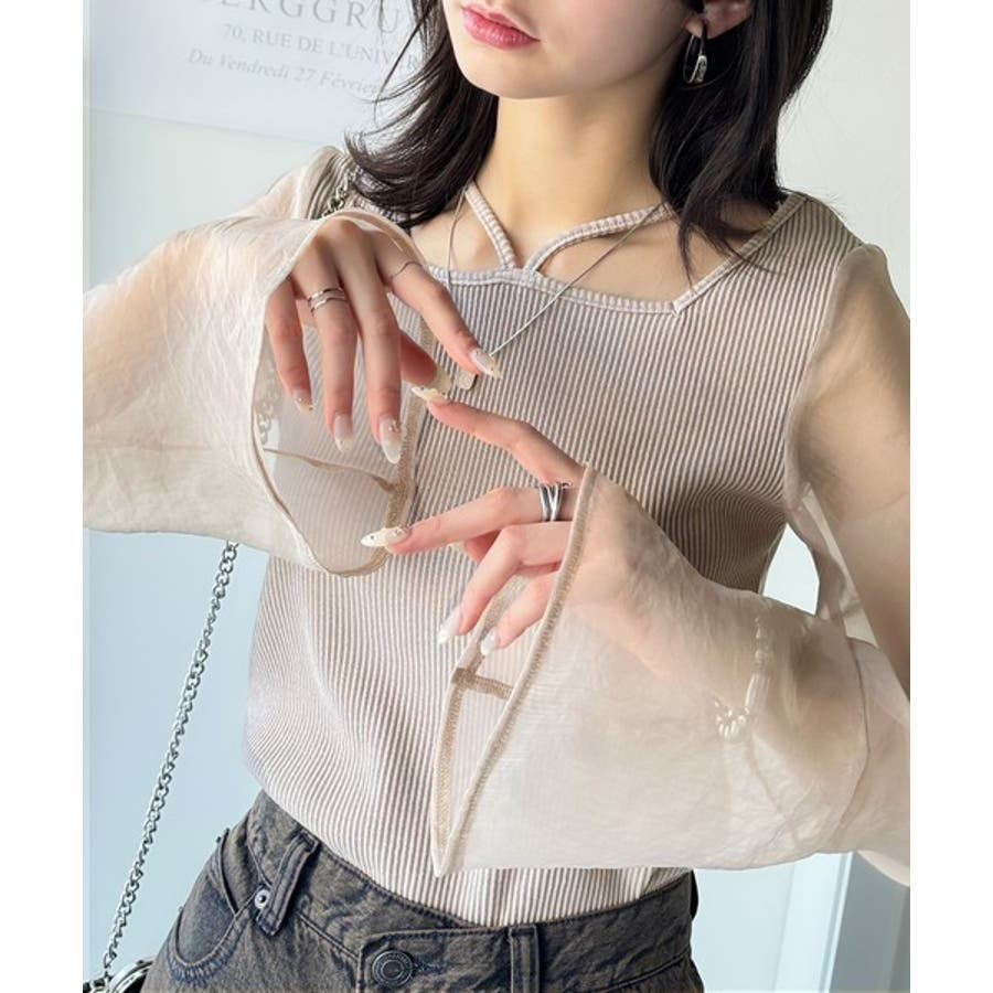 繊細な美しさを纏う。前後2wayオーガンジースリーブリブトップス