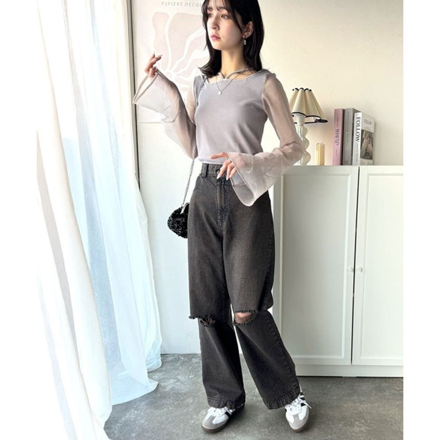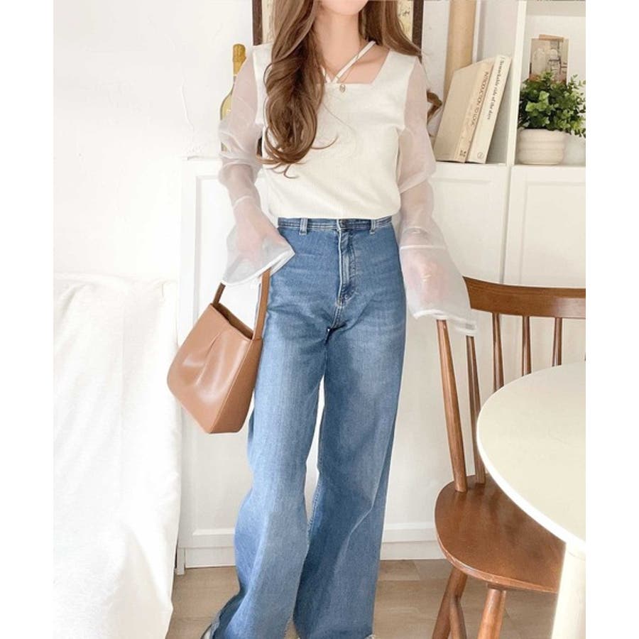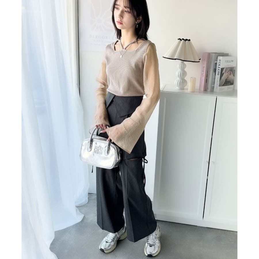 繊細なオーガンジ素材のお袖がポイントになってくれるので、一枚で大人上品な印象に。