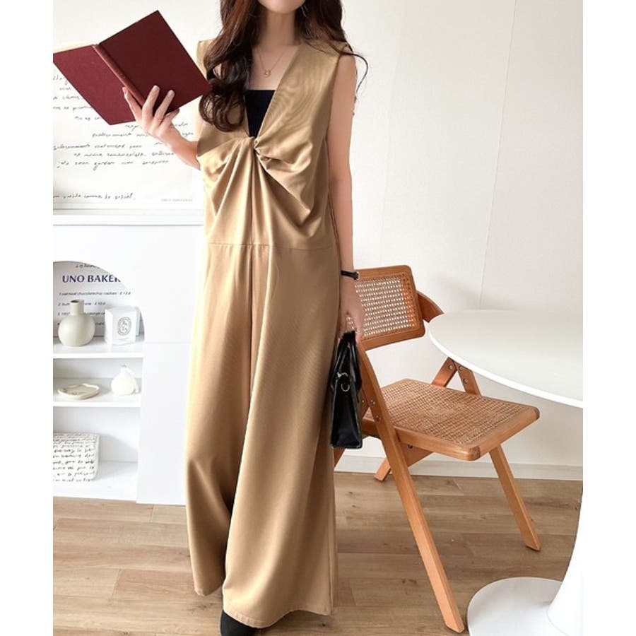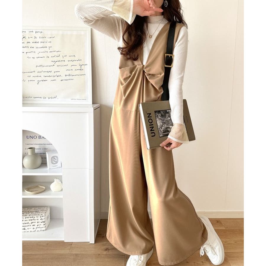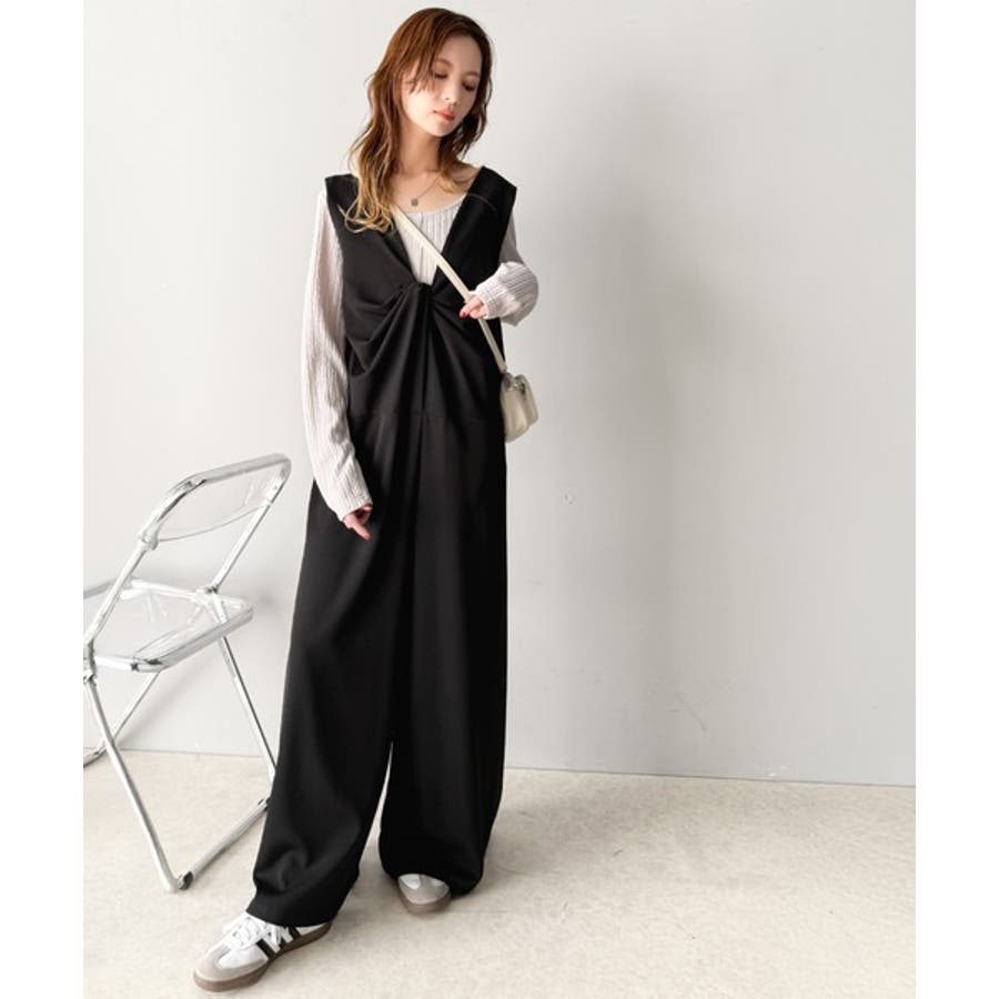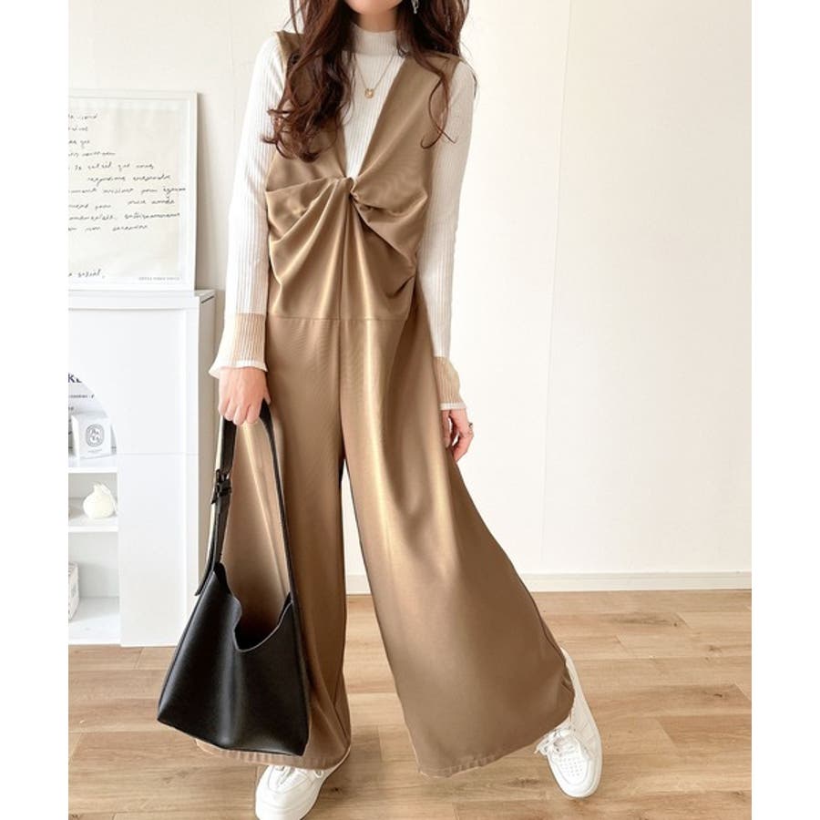 1枚で女性らしさのあるコーディネートが完成するオールインワンサロペットは