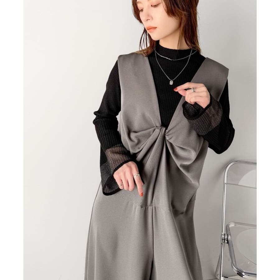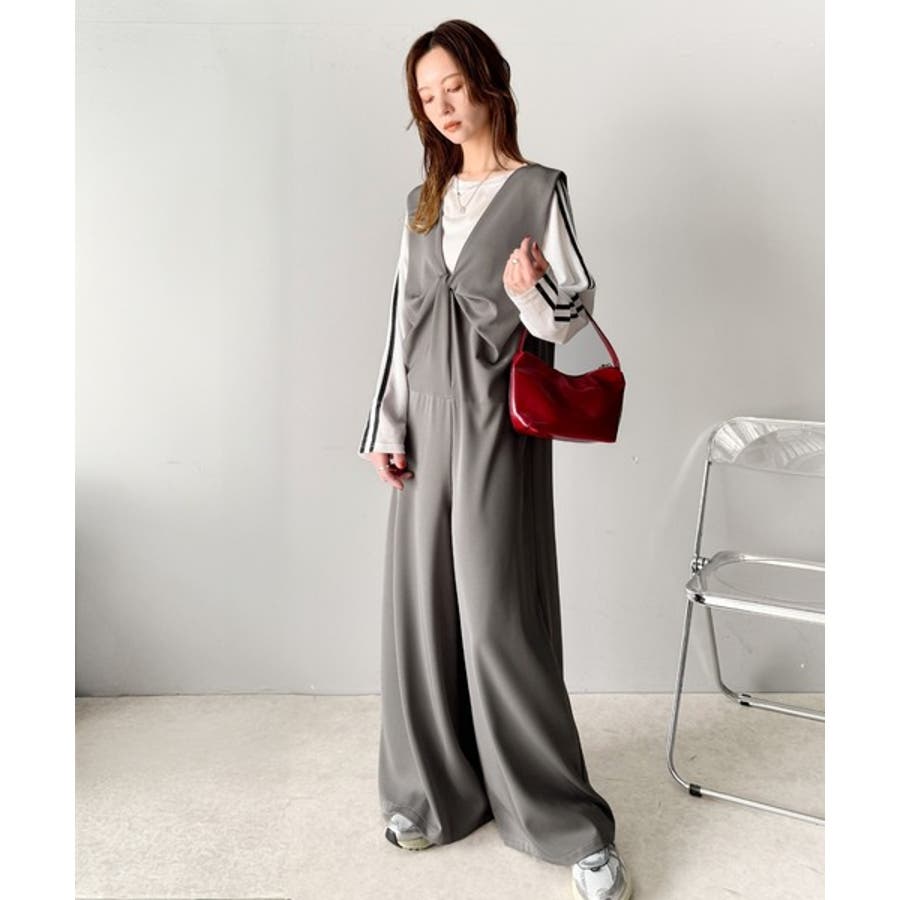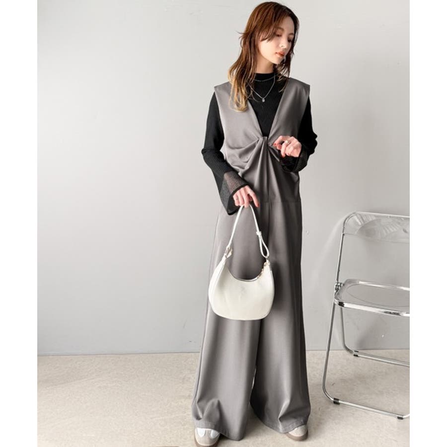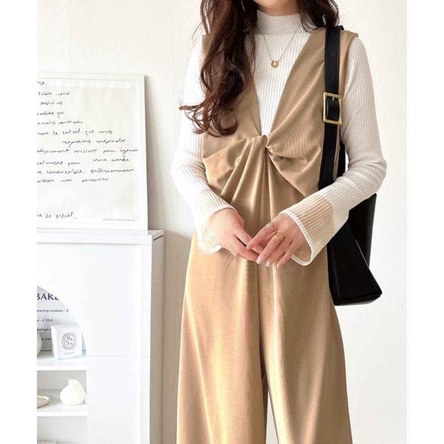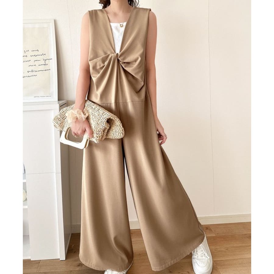 1枚で女性らしさのあるコーディネートが完成するオールインワンサロペットは