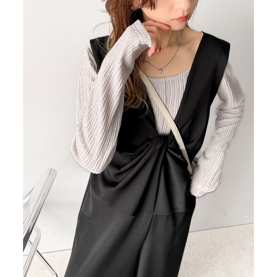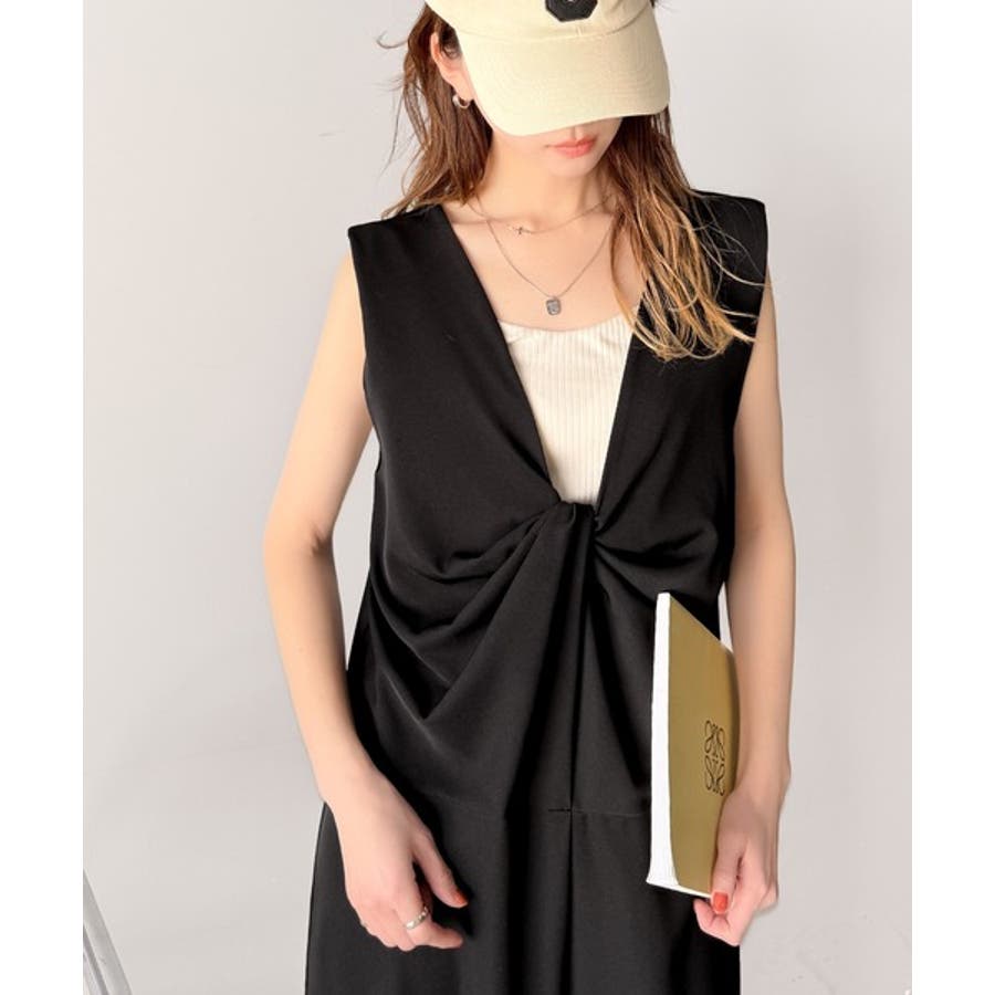 肩の部分は幅広デザインなので、ノースリーブスタイルで着用できます。