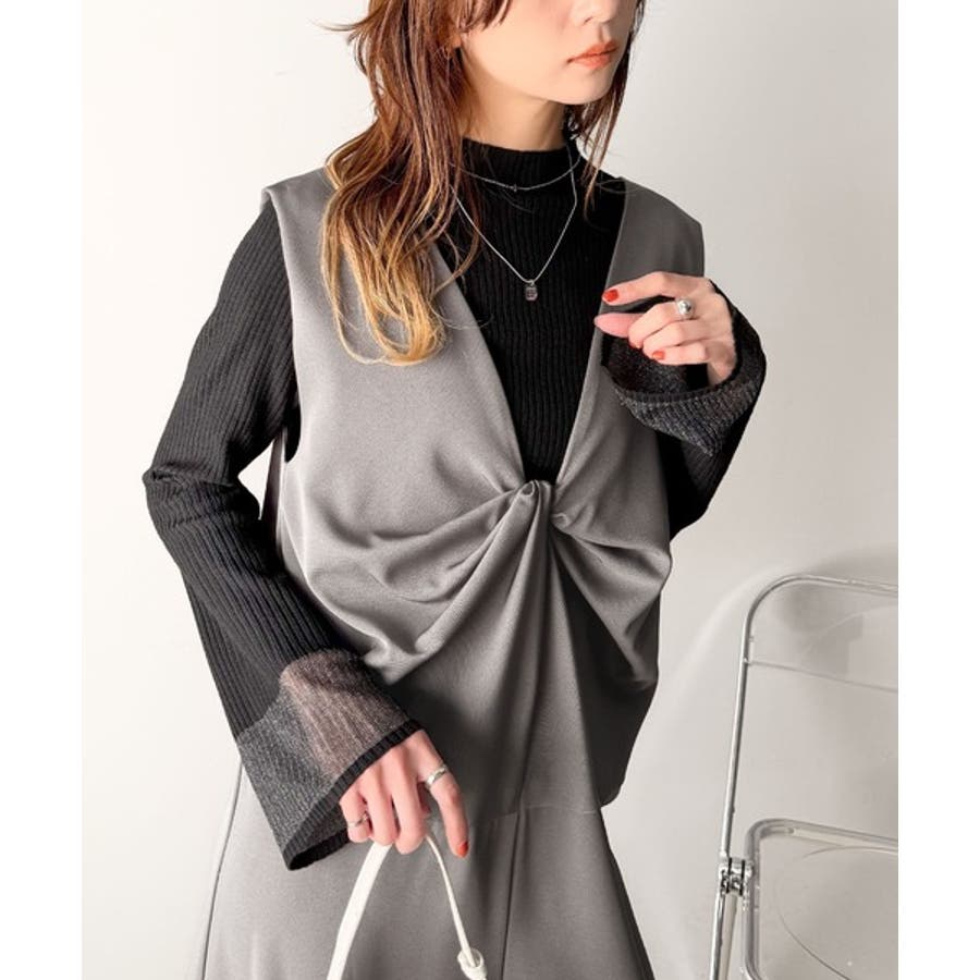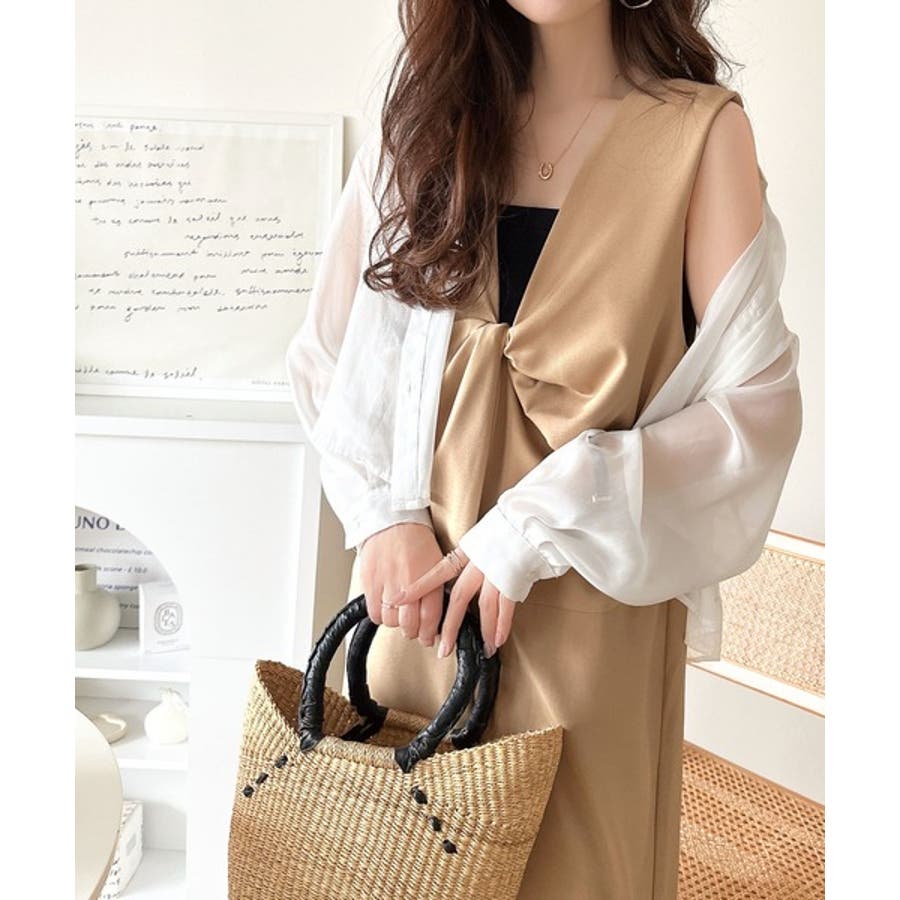 きれいめスタイルを楽しみたいときは、シアーブラウスやジレを重ねるのがおすすめ♪