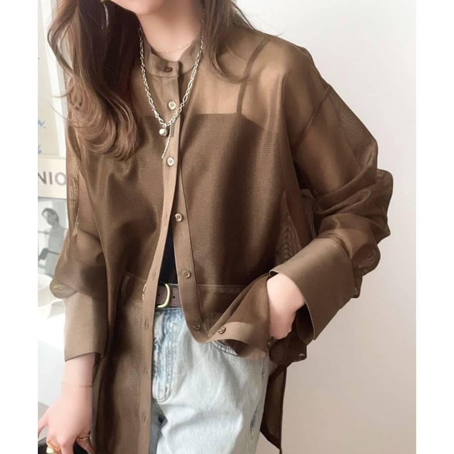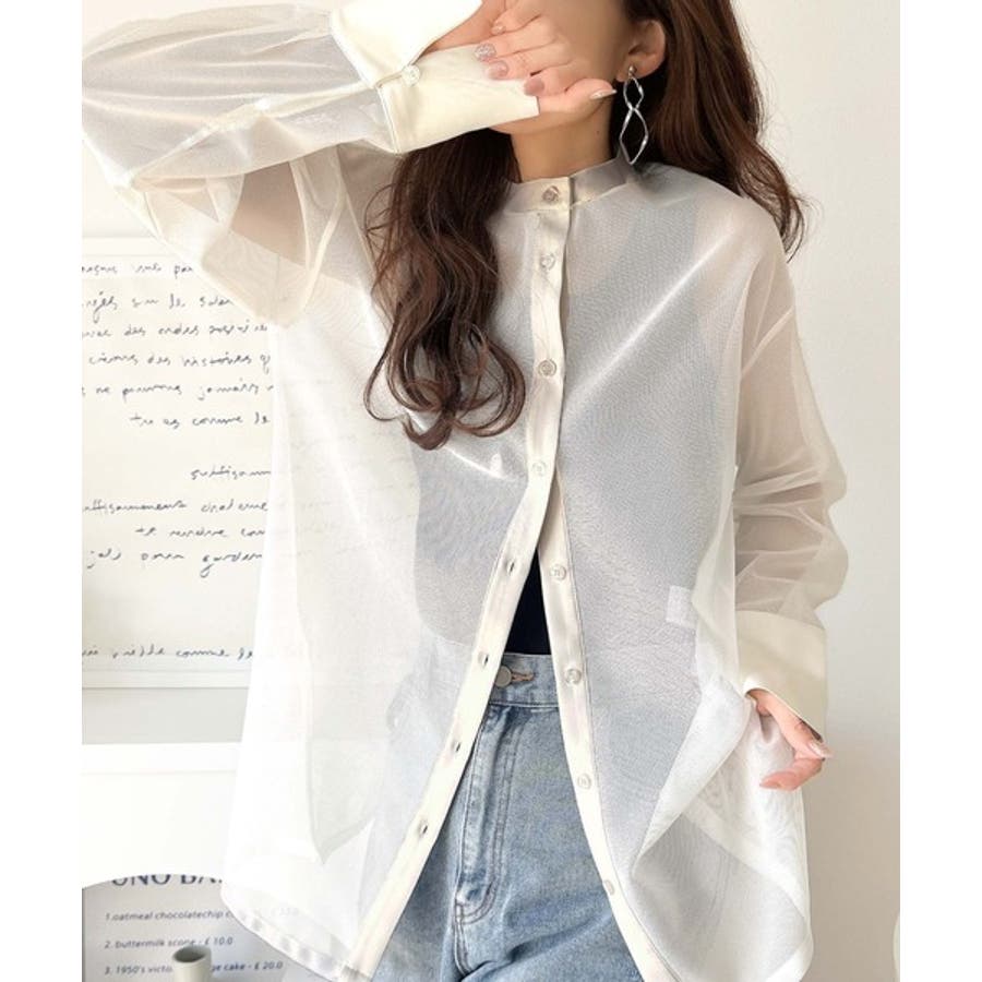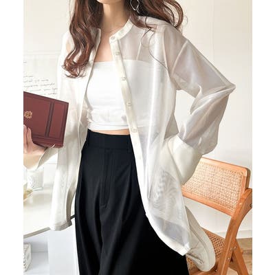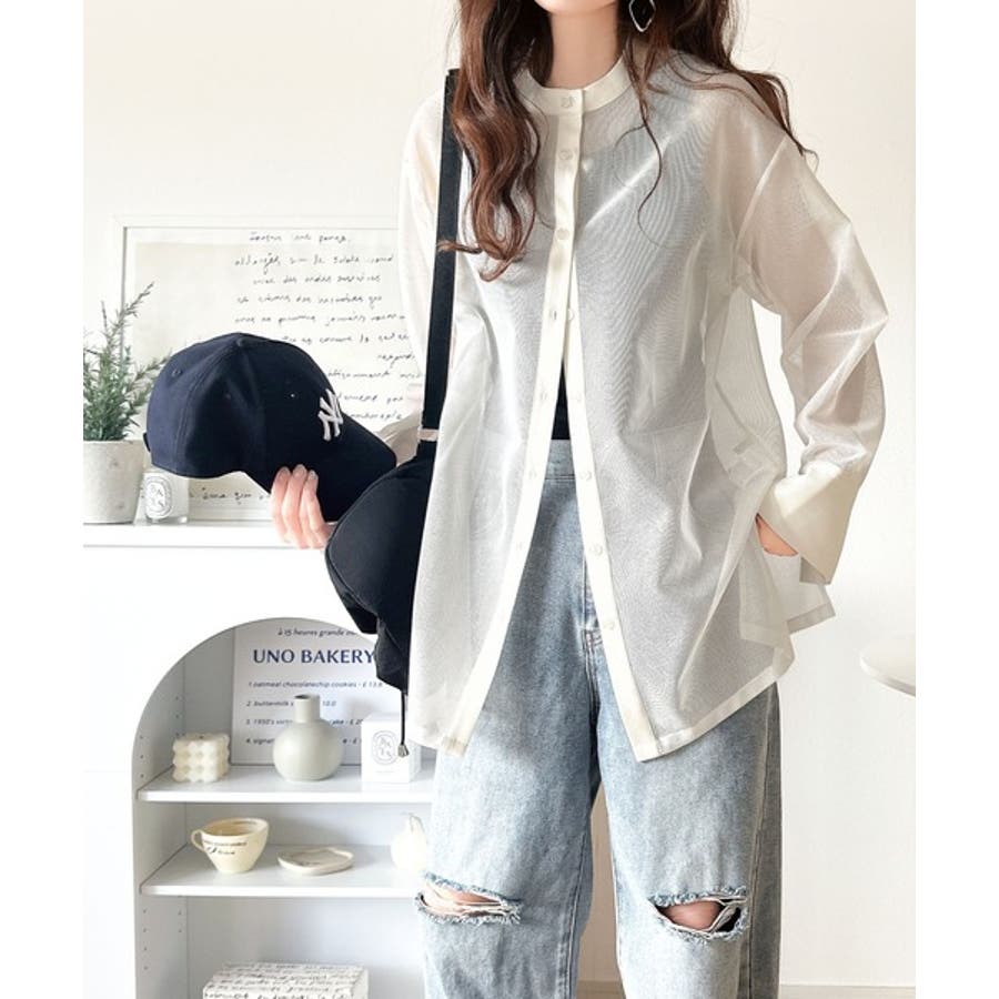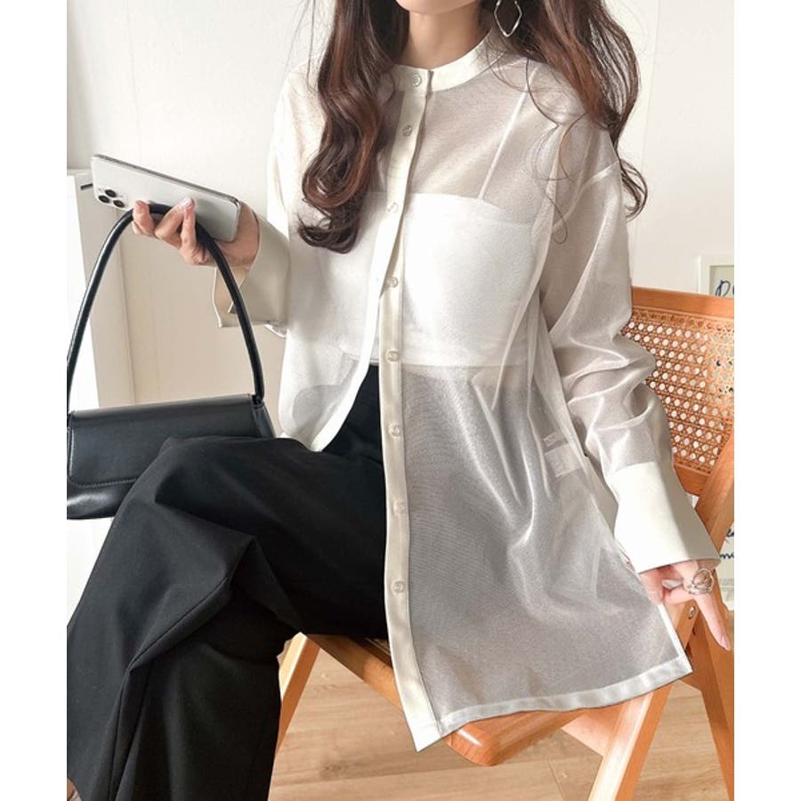 大人の抜け感。メッシュバンドカラーオーバーサイズシャツ(長袖)