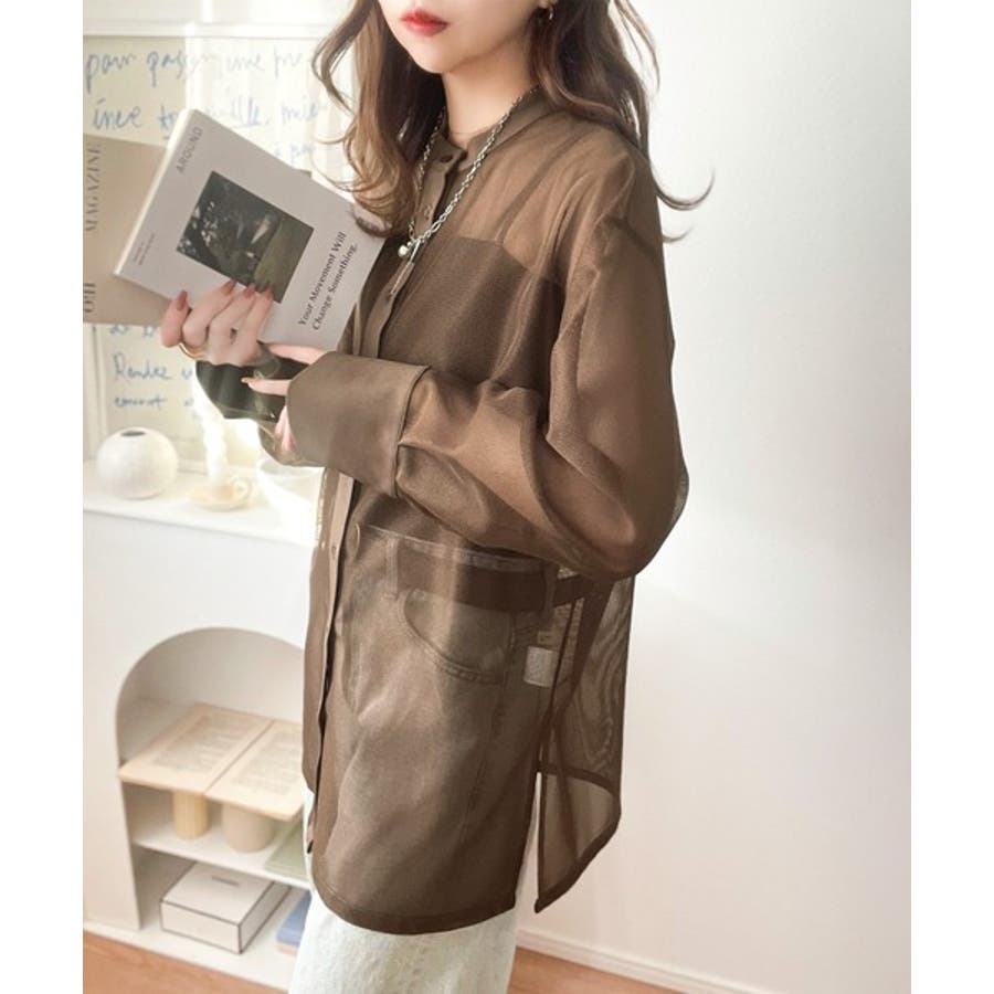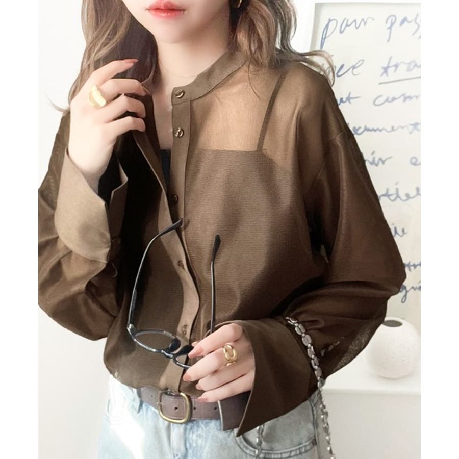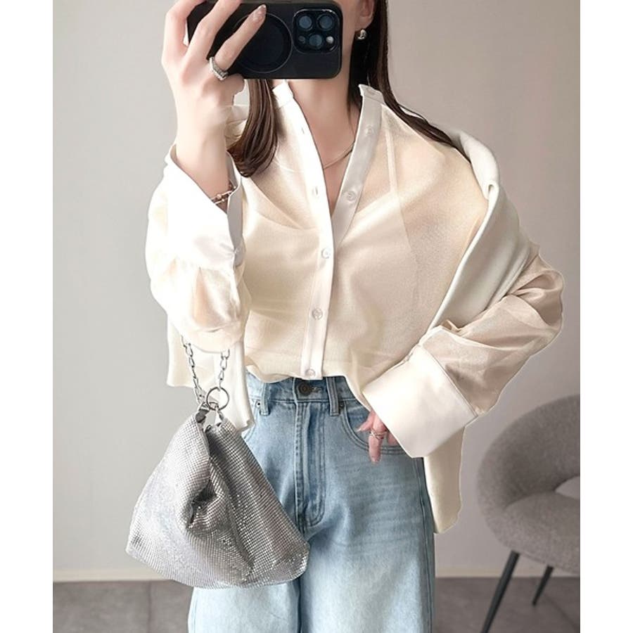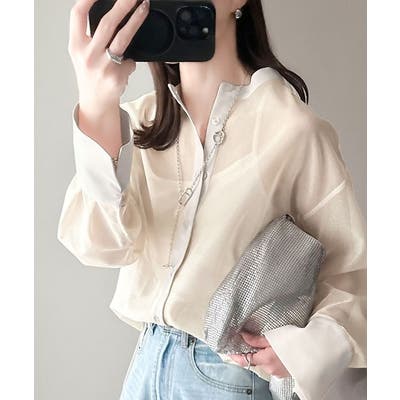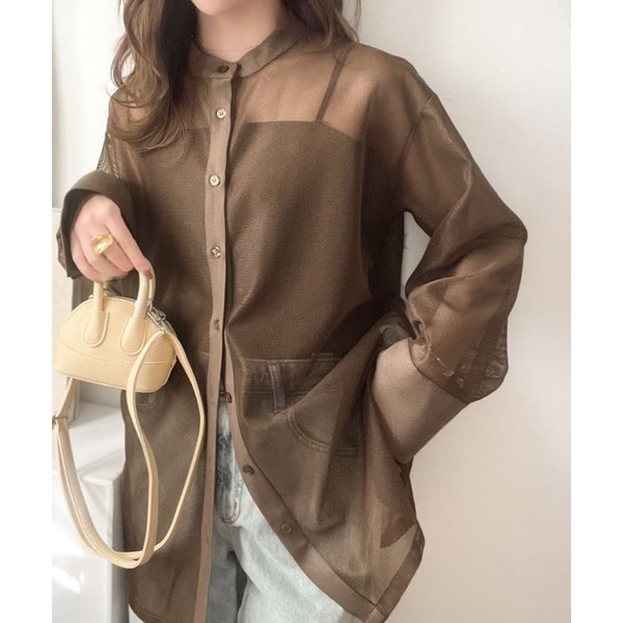 大人の抜け感。メッシュバンドカラーオーバーサイズシャツ(長袖)