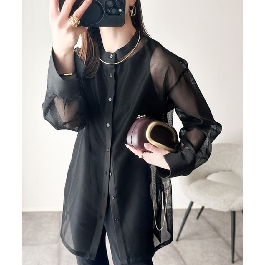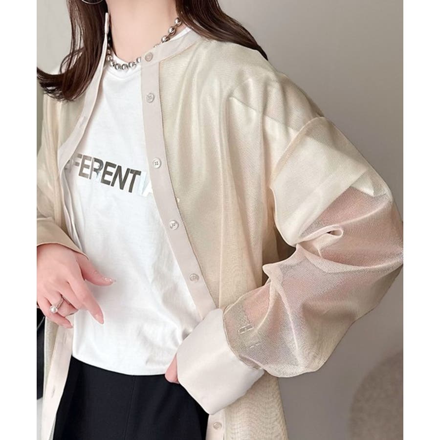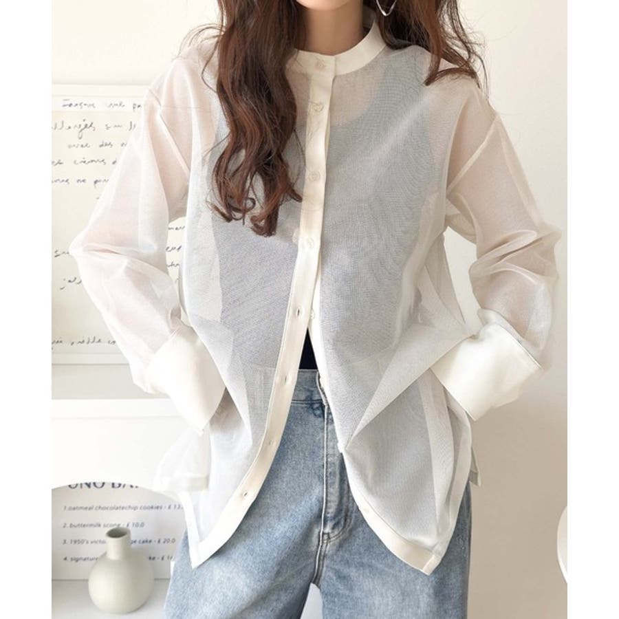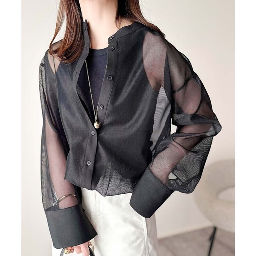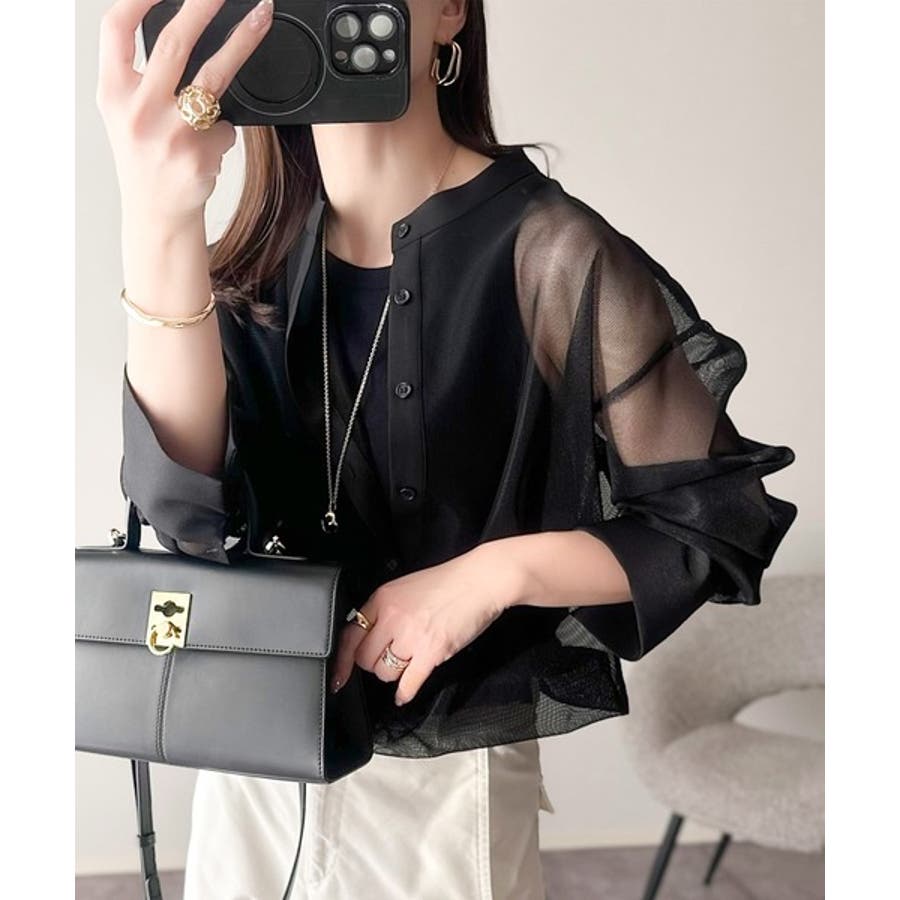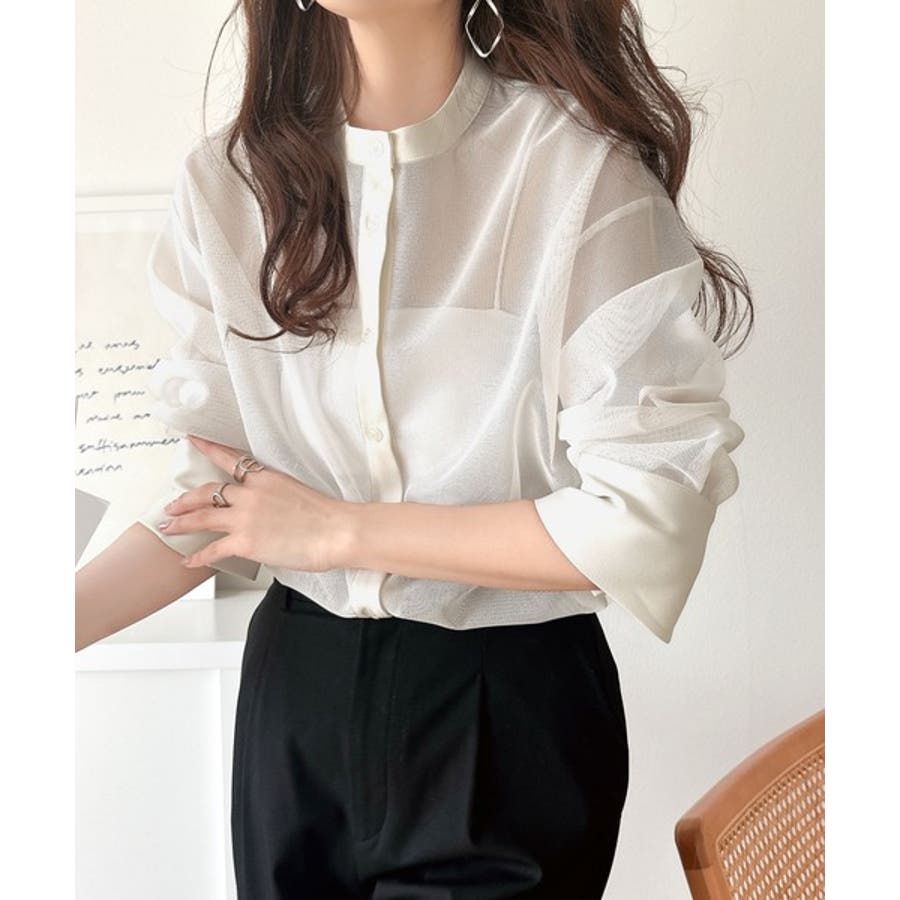 上品なバンドカラー×メッシュ素材で抜け感たっぷり。