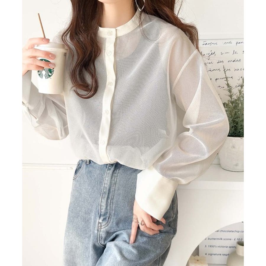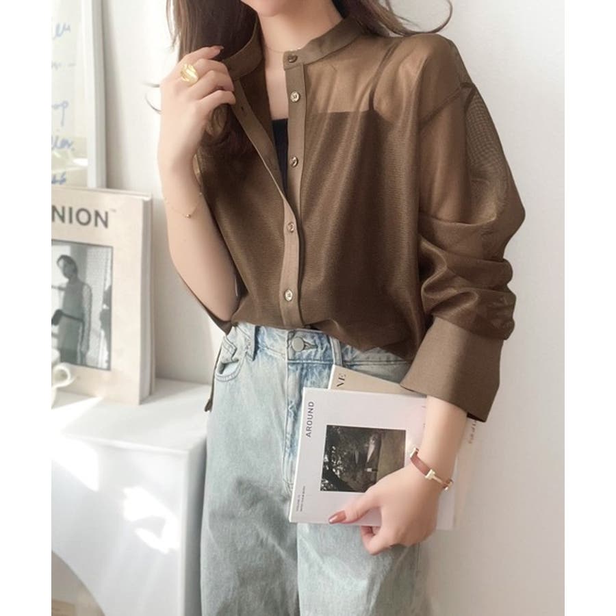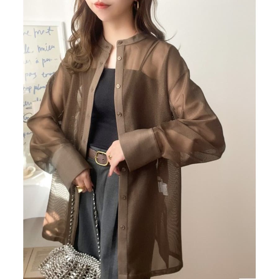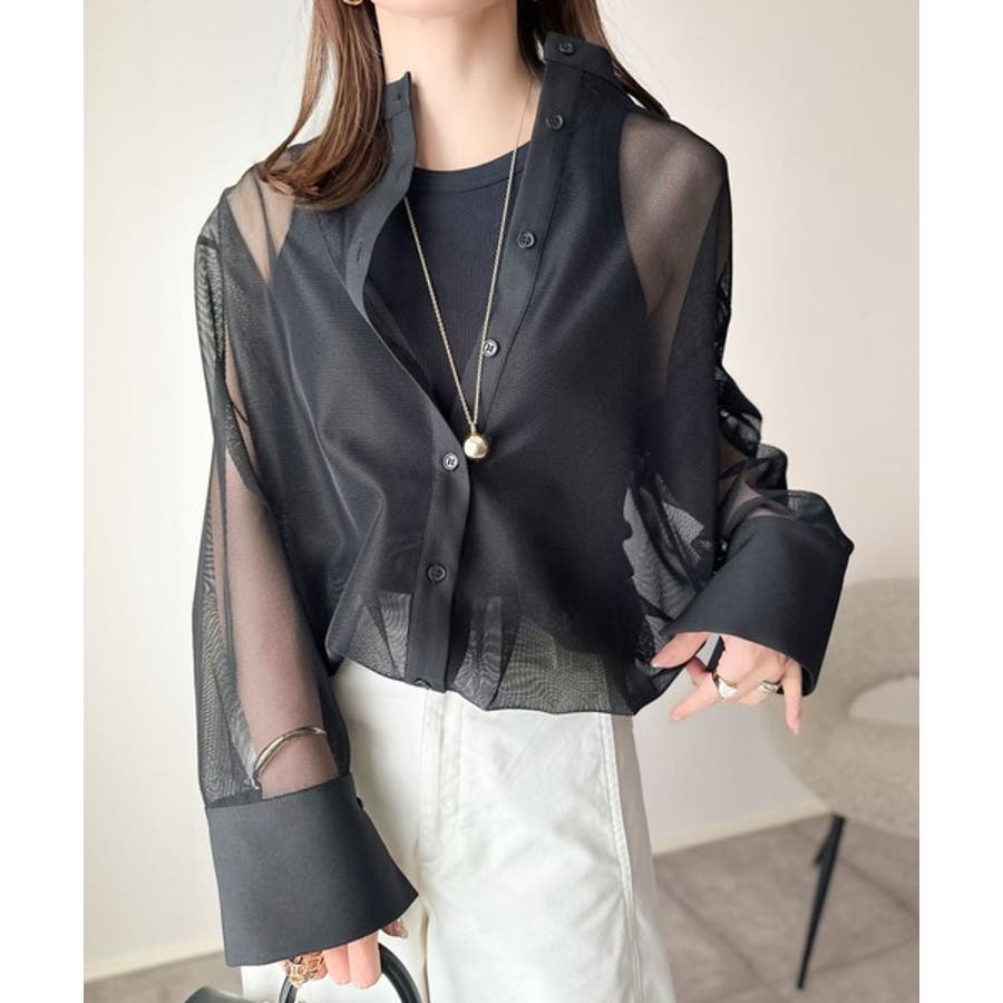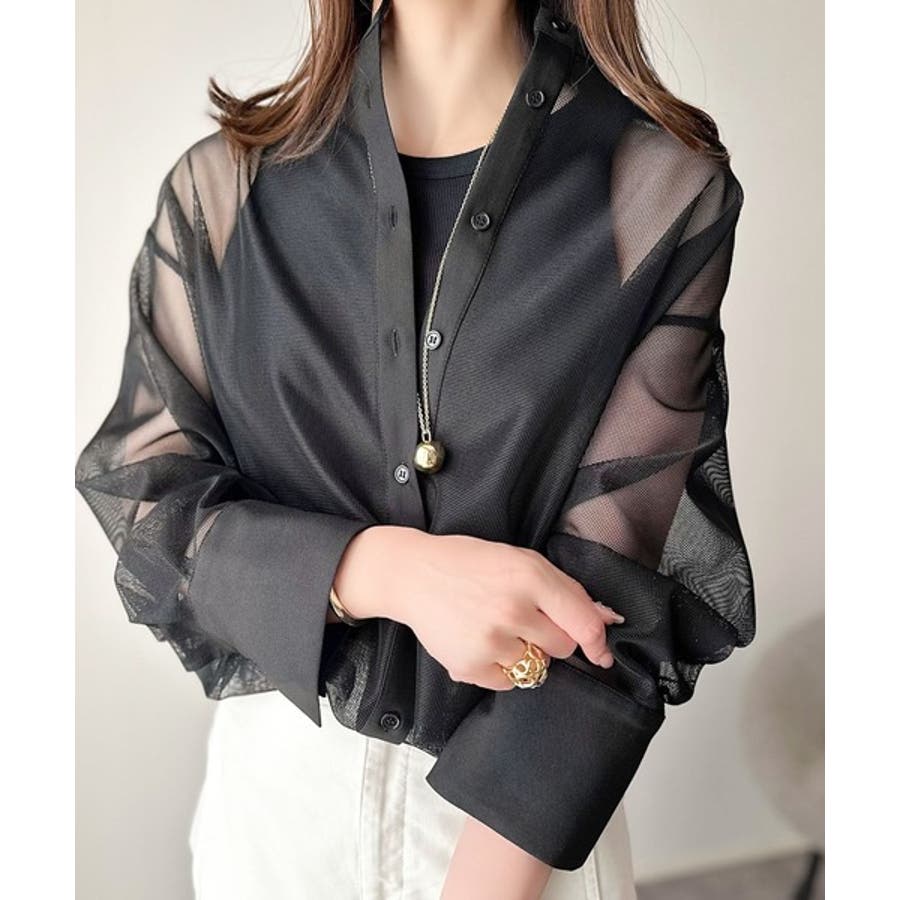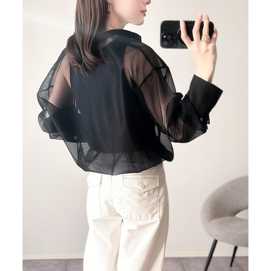 上品なバンドカラー×メッシュ素材で抜け感たっぷり。