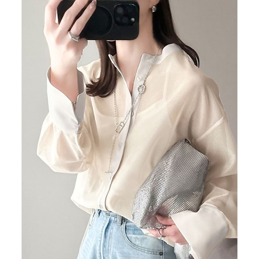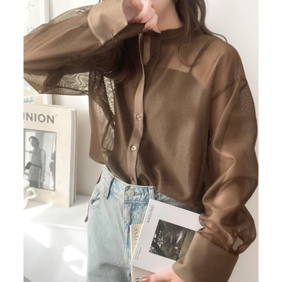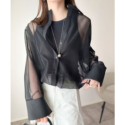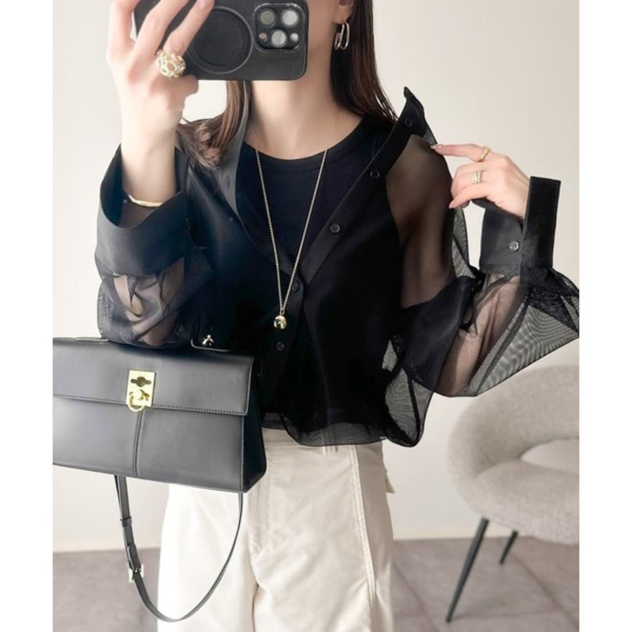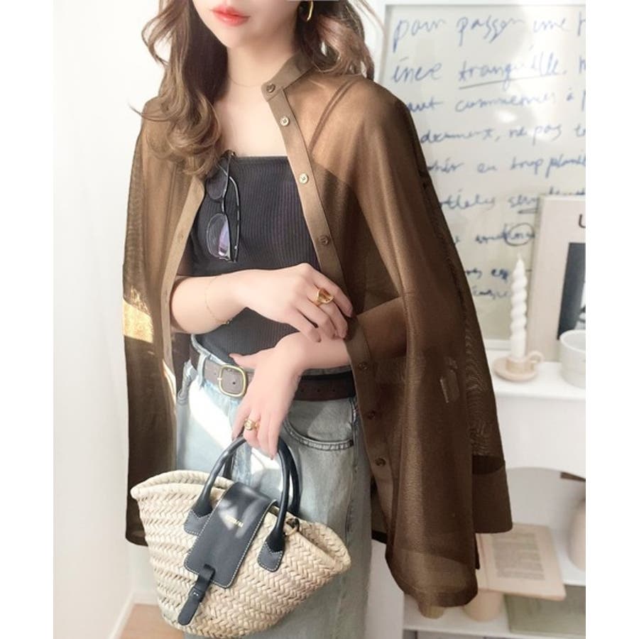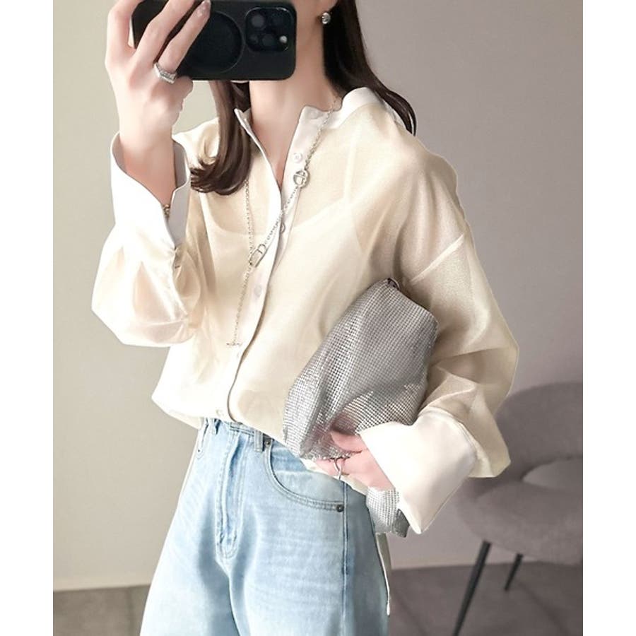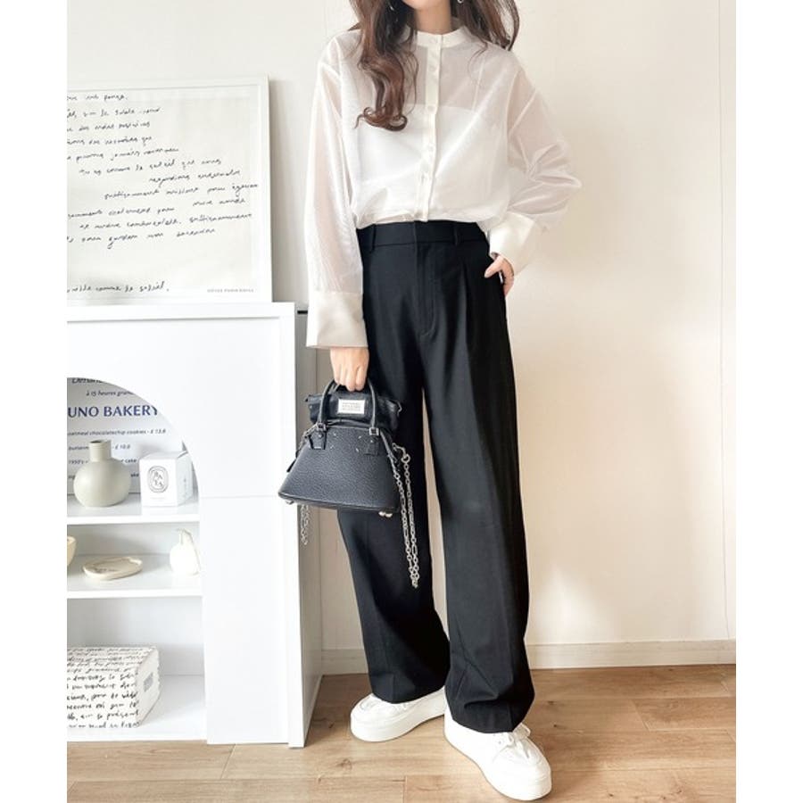上品なバンドカラー×メッシュ素材で抜け感たっぷり。