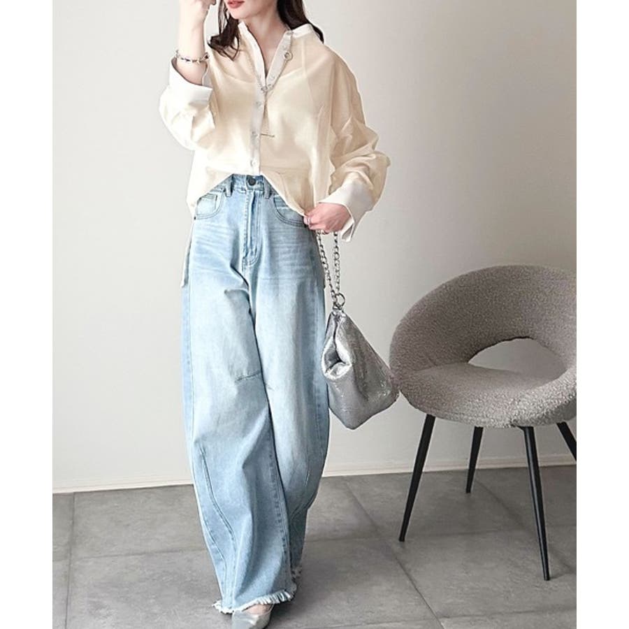 その日の気分に合わせてデニムやフレアパンツを合わせてもOK◎