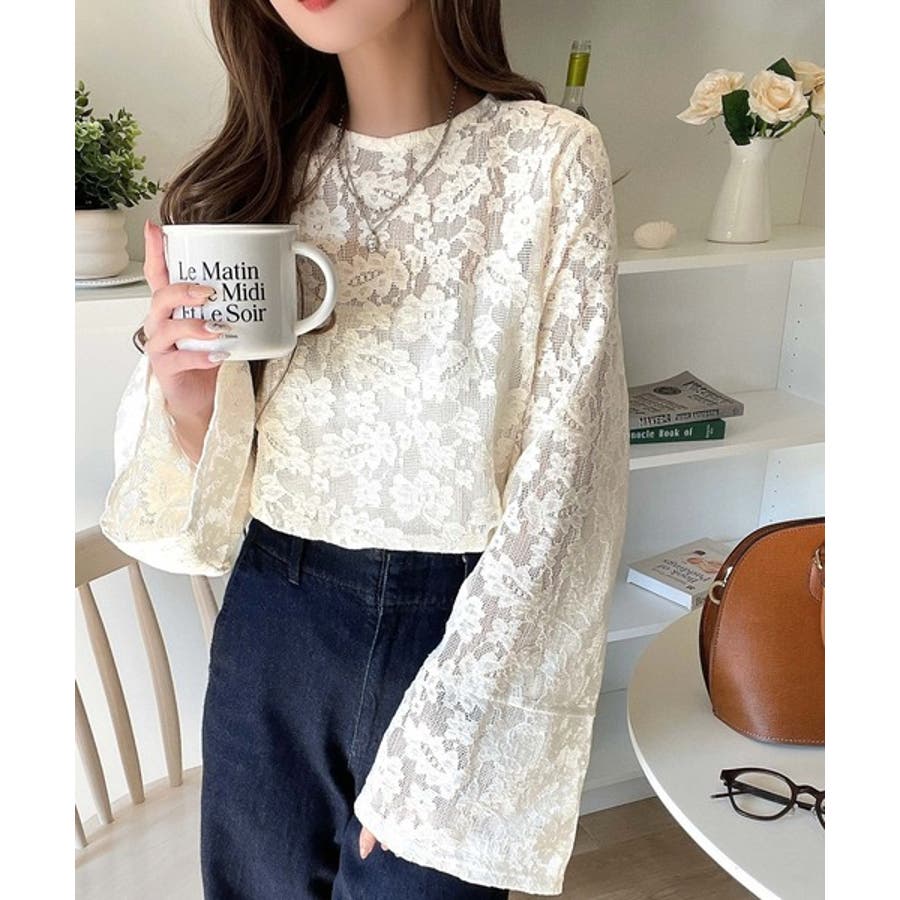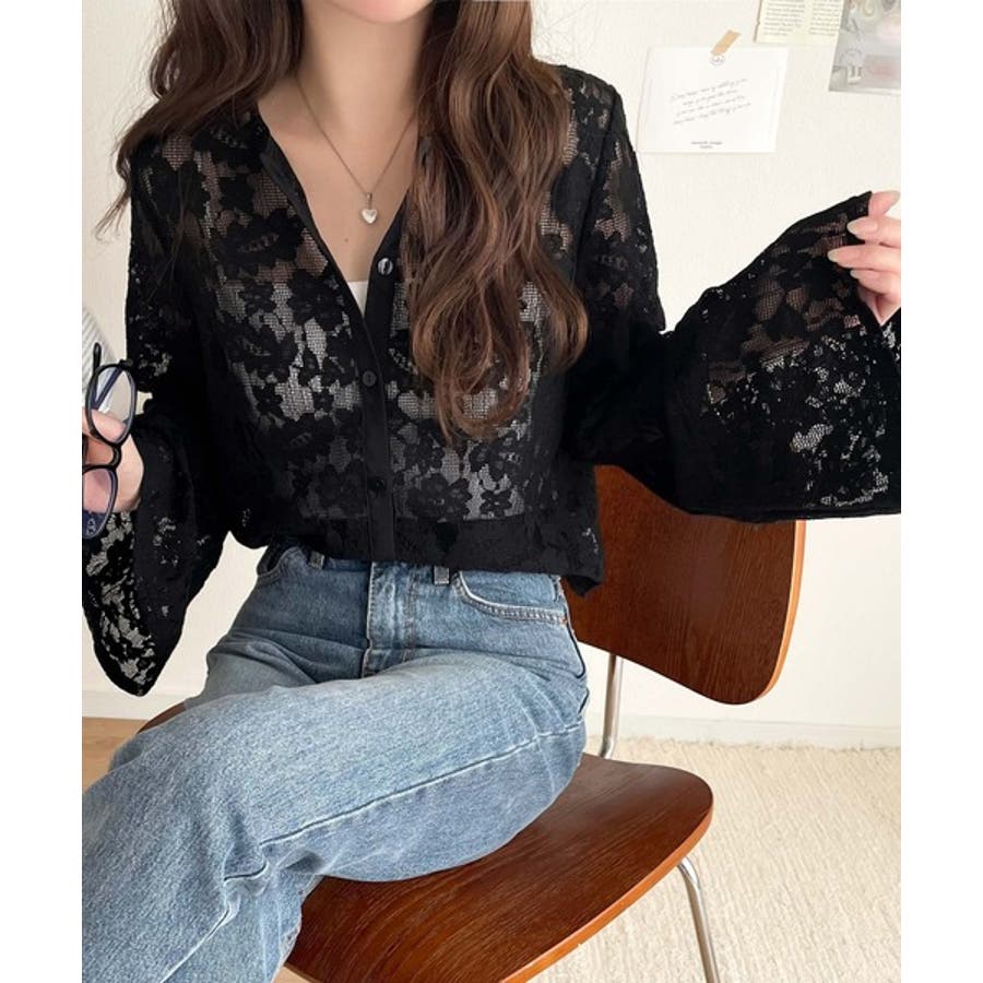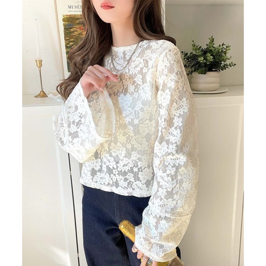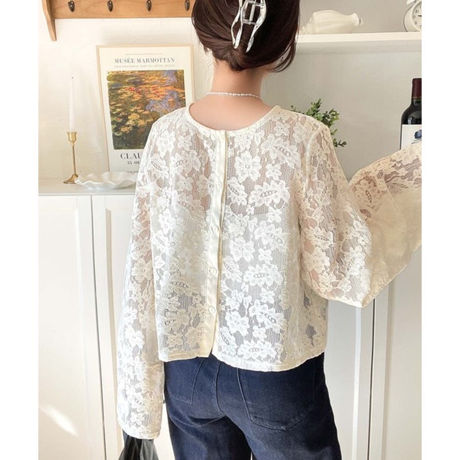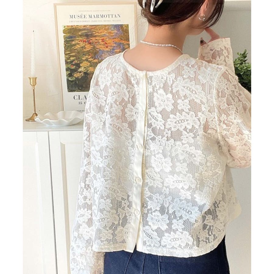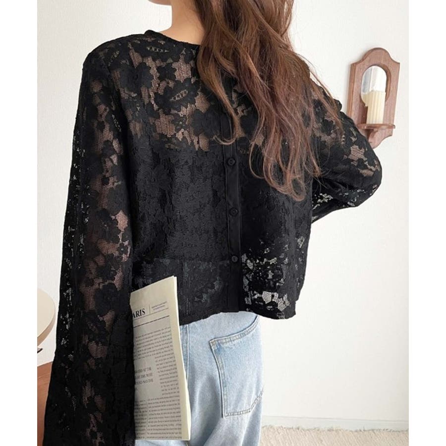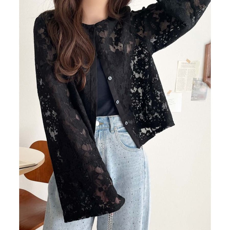 透け感のあるレースが目を惹く。前後2wayメッシュレースショートカーデ(長袖)