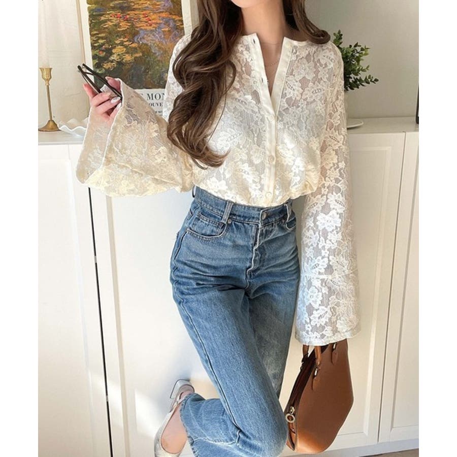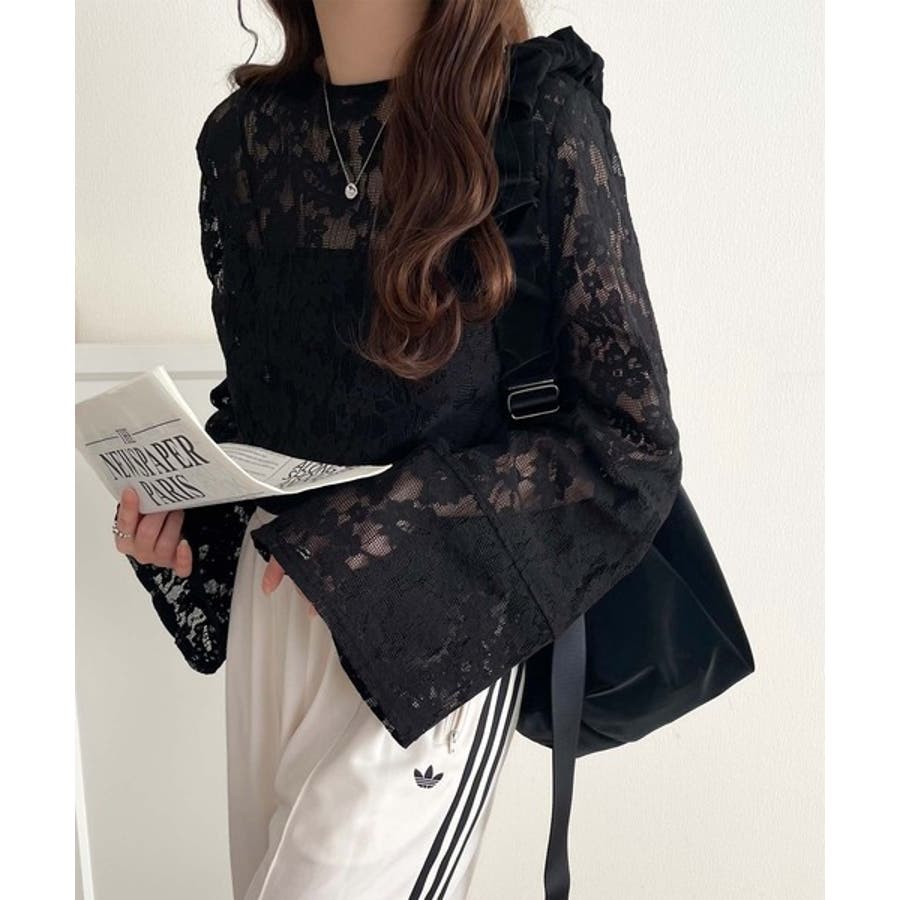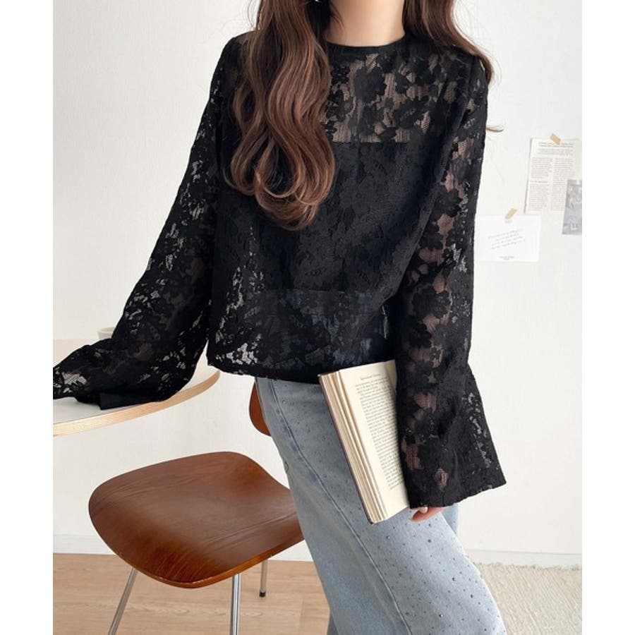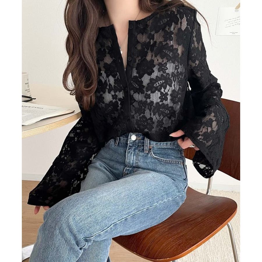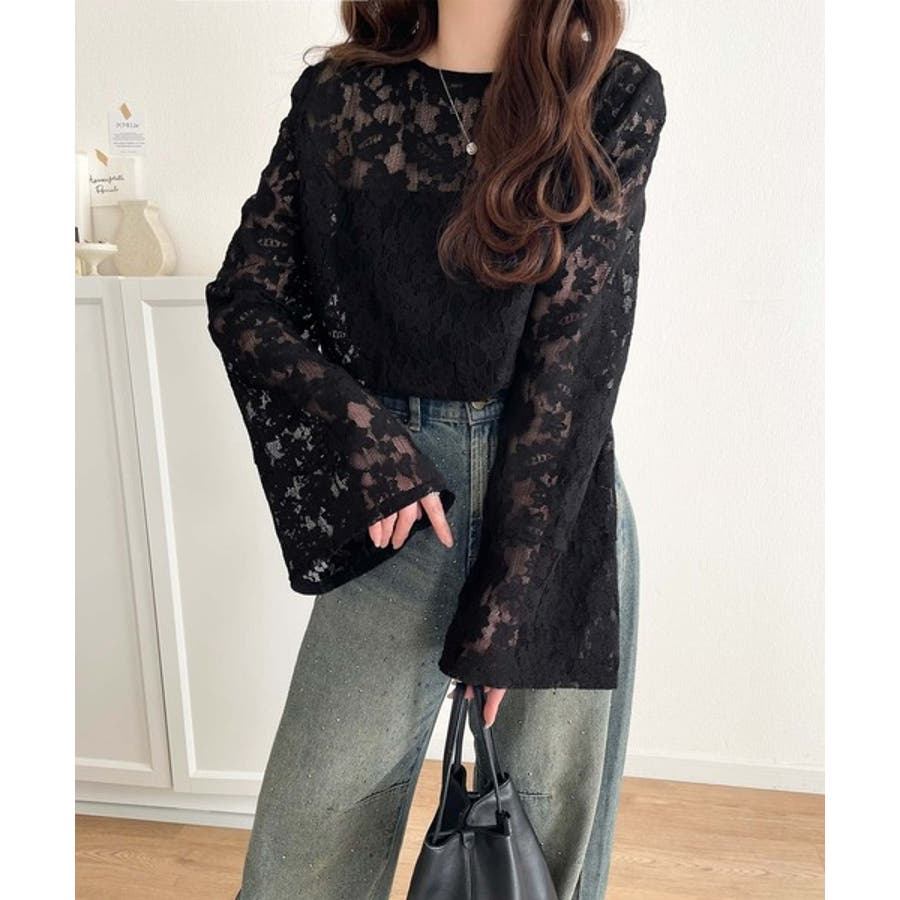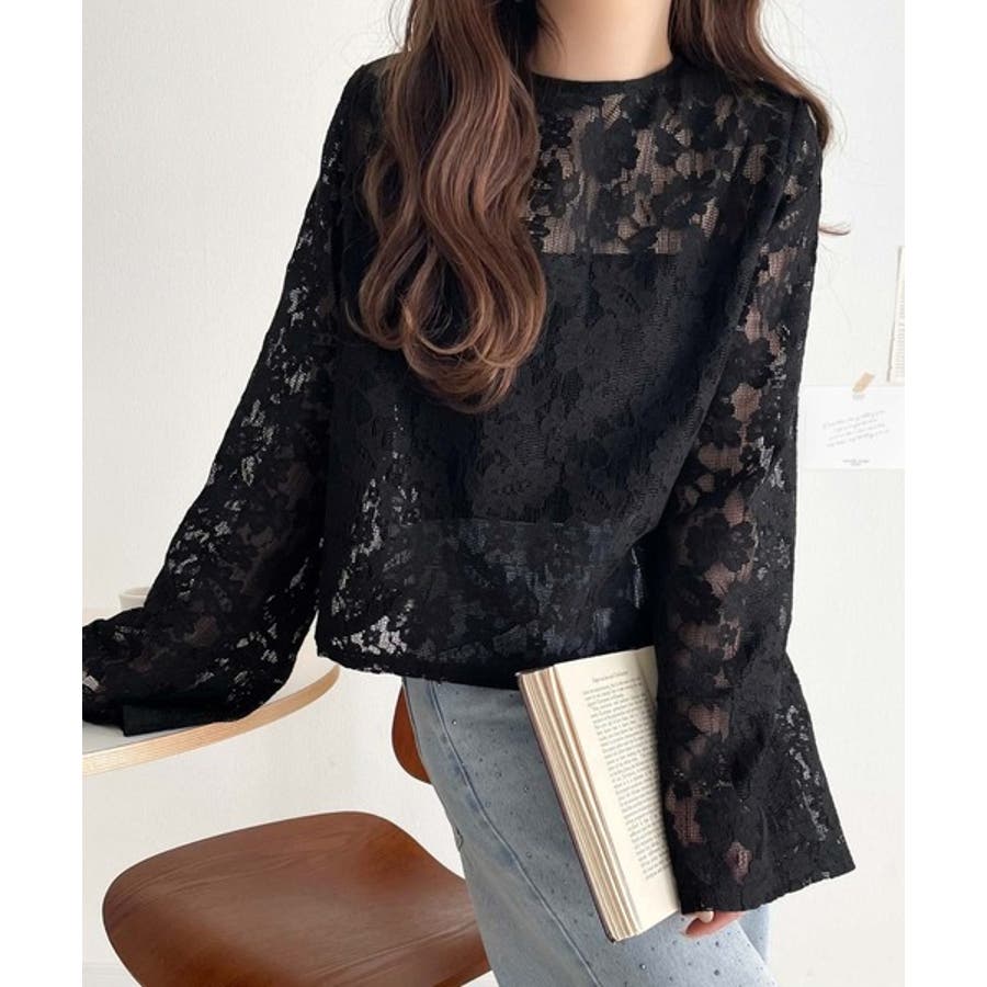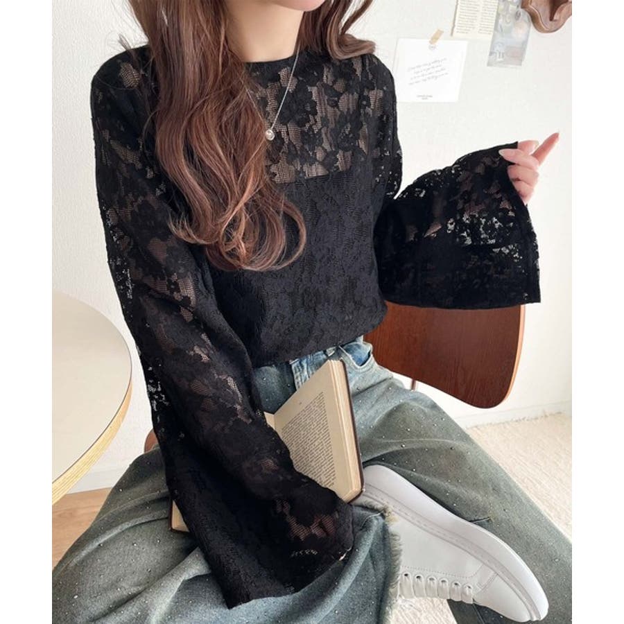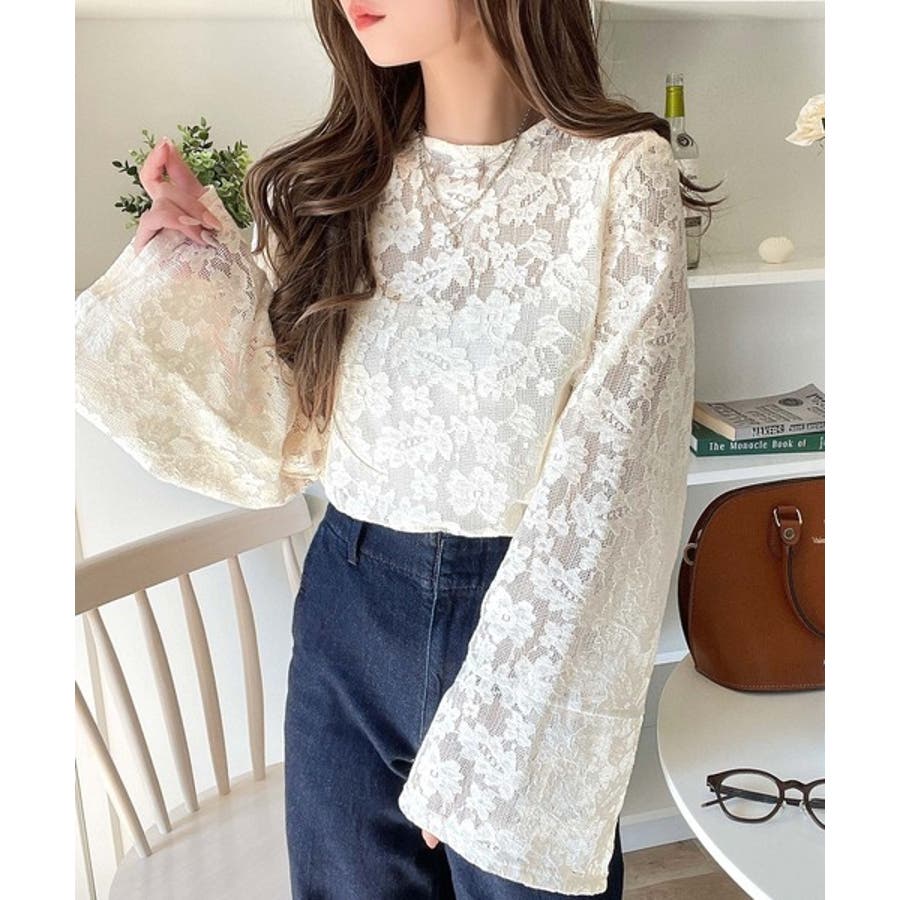 透け感のあるレースが目を惹く。前後2wayメッシュレースショートカーデ(長袖)