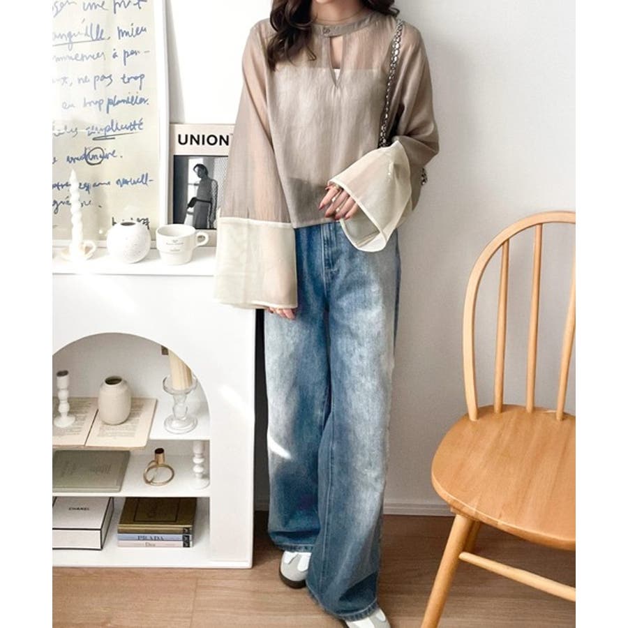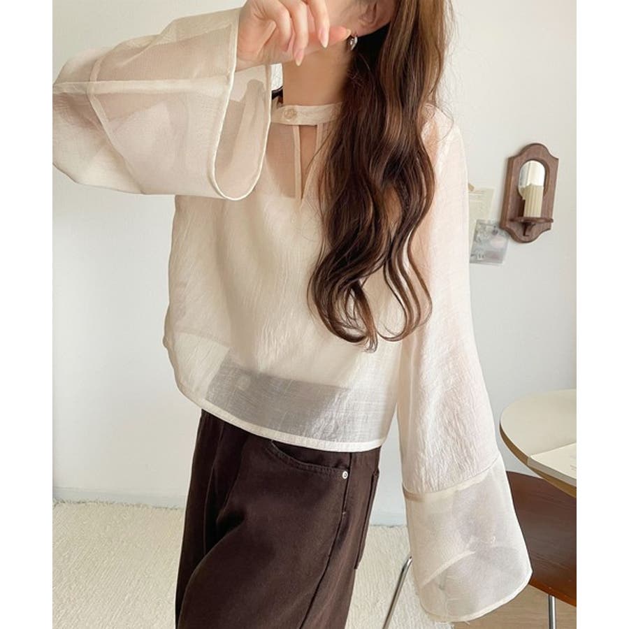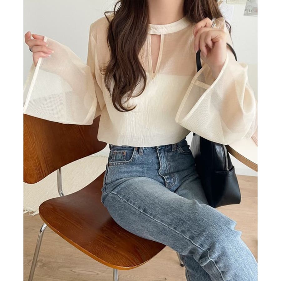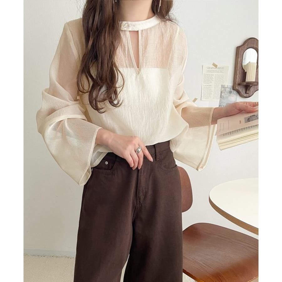 上品な透け感と抜け感を兼ね備えた、シアーブラウス。