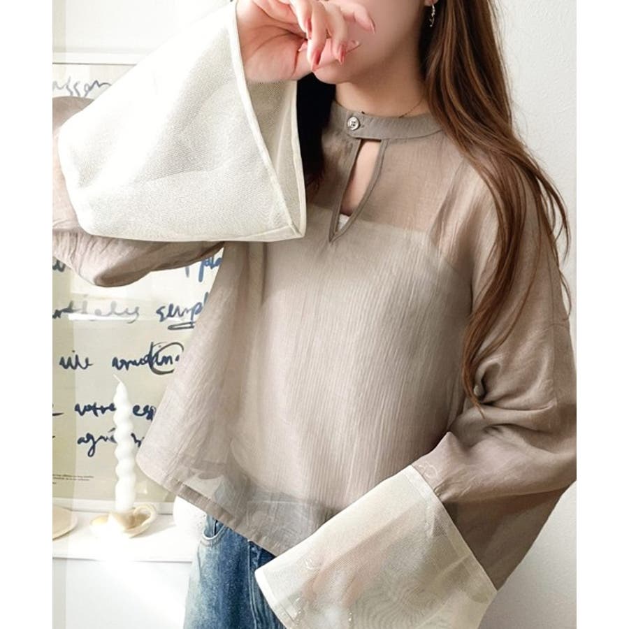 袖口メッシュが抜け感◎前後2WAY袖口メッシュ切替シアーオーバートップス