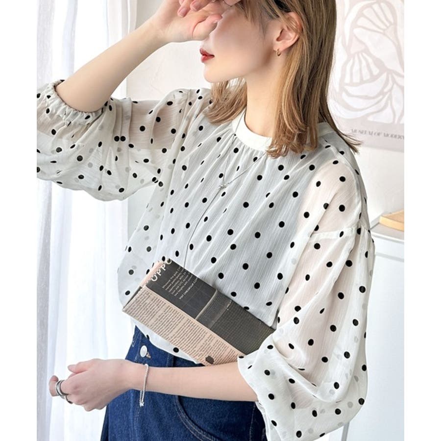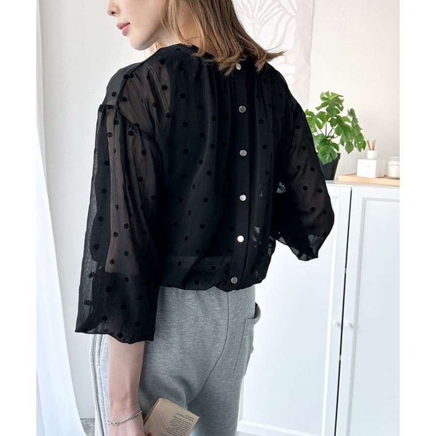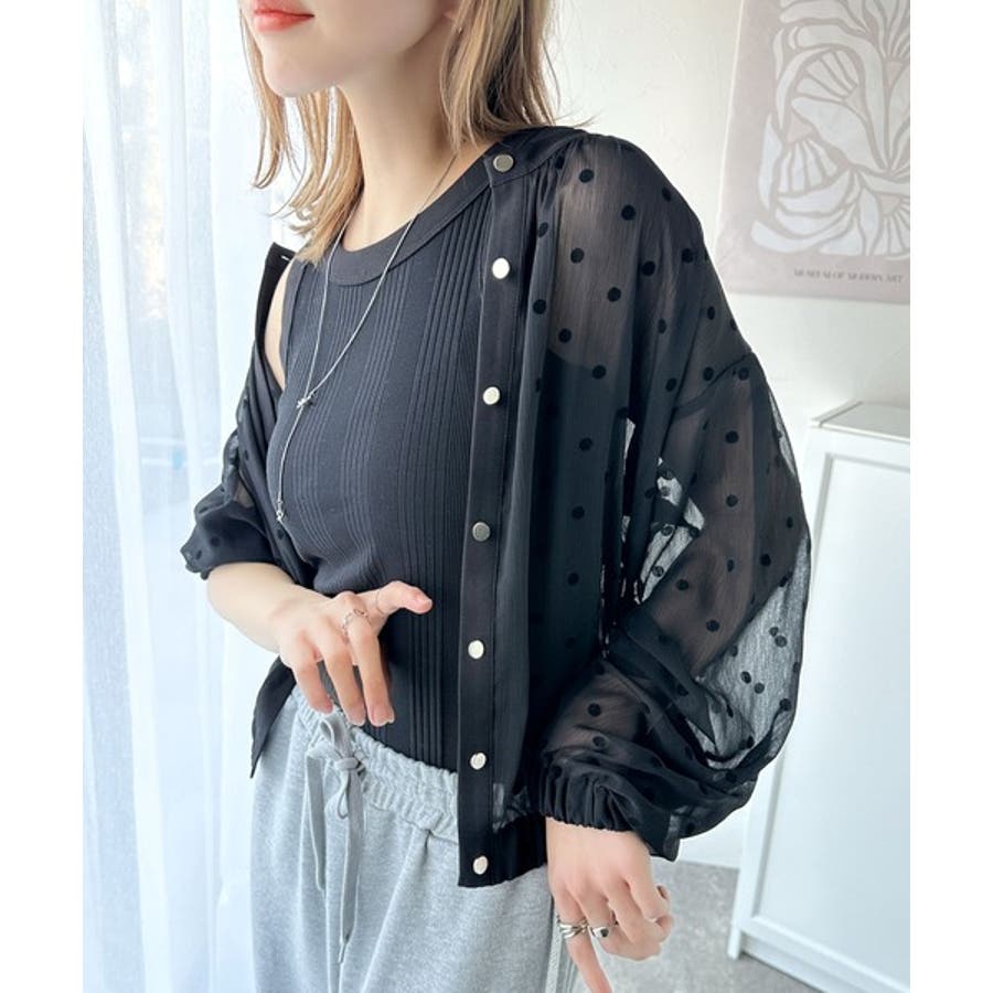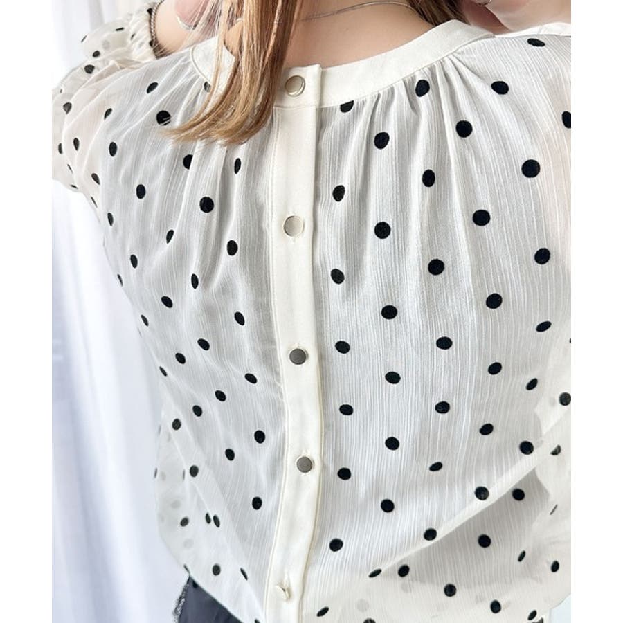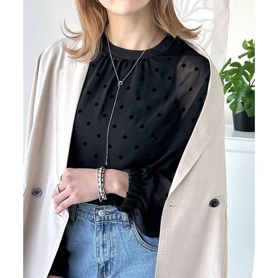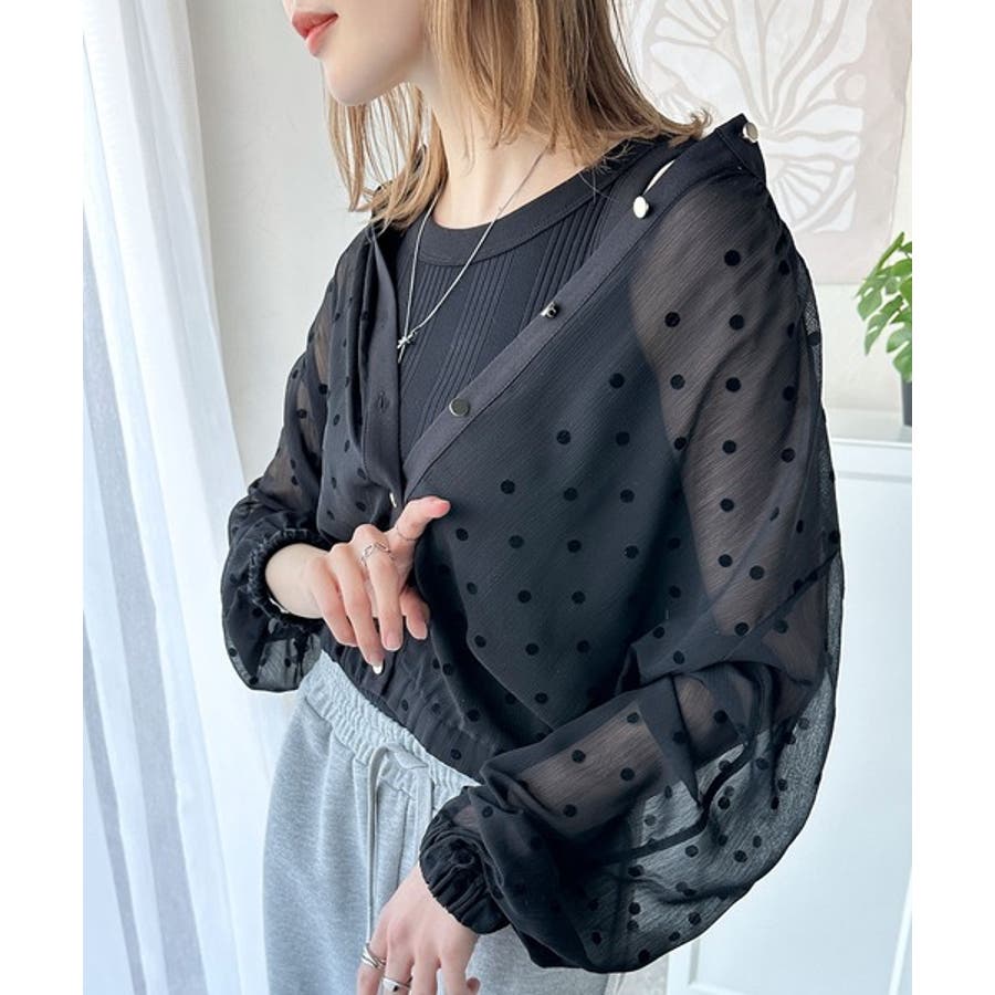 【ブラック】ふんわり可愛いが魅力!前後2wayフロッキードットプリント楊柳シアー素材ブラウス…