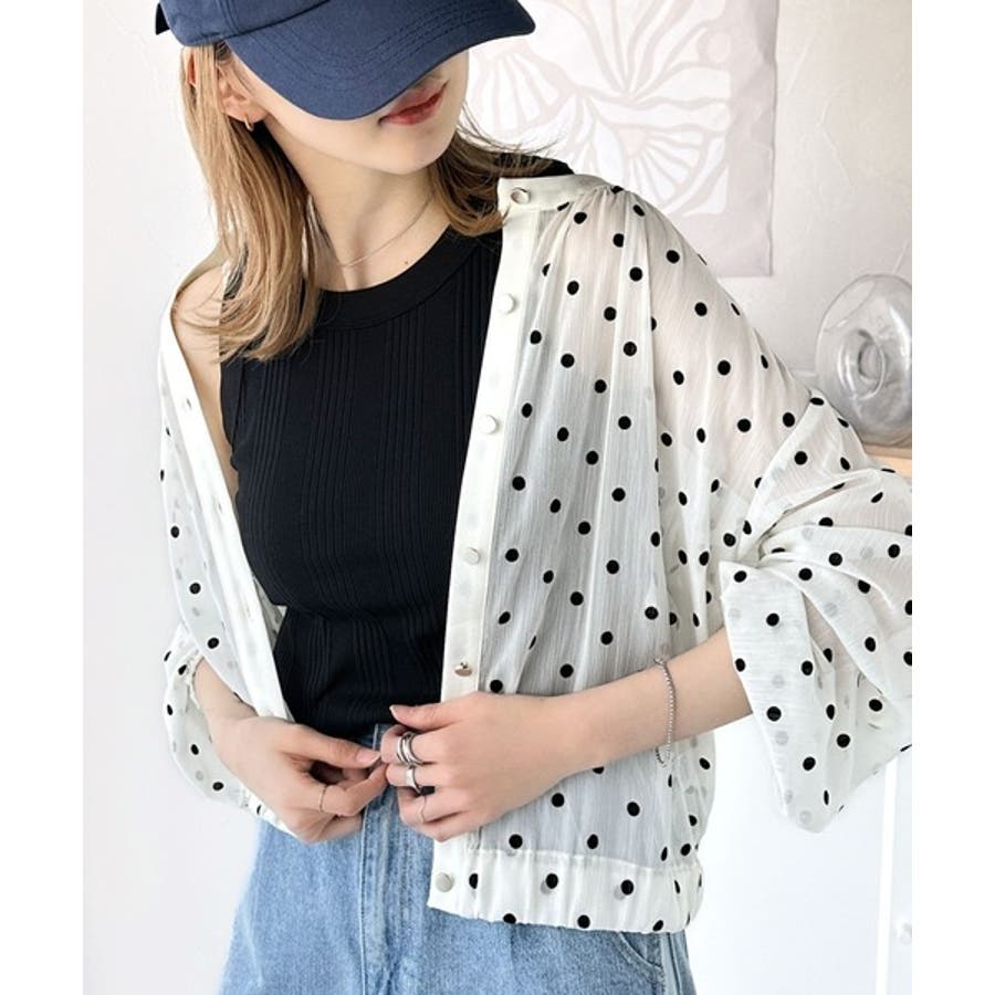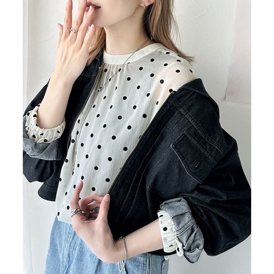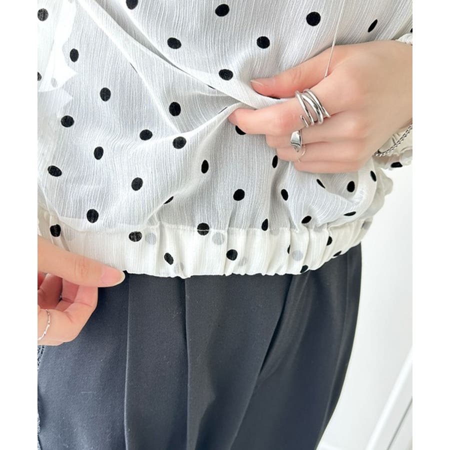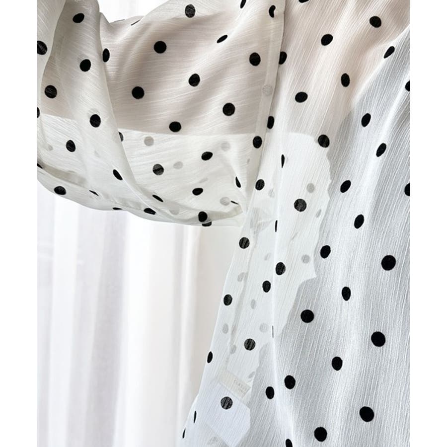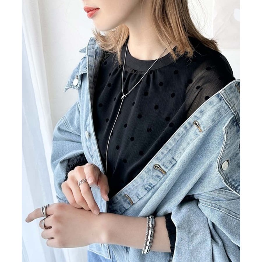 【ブラック】ふんわり可愛いが魅力!前後2wayフロッキードットプリント楊柳シアー素材ブラウス…