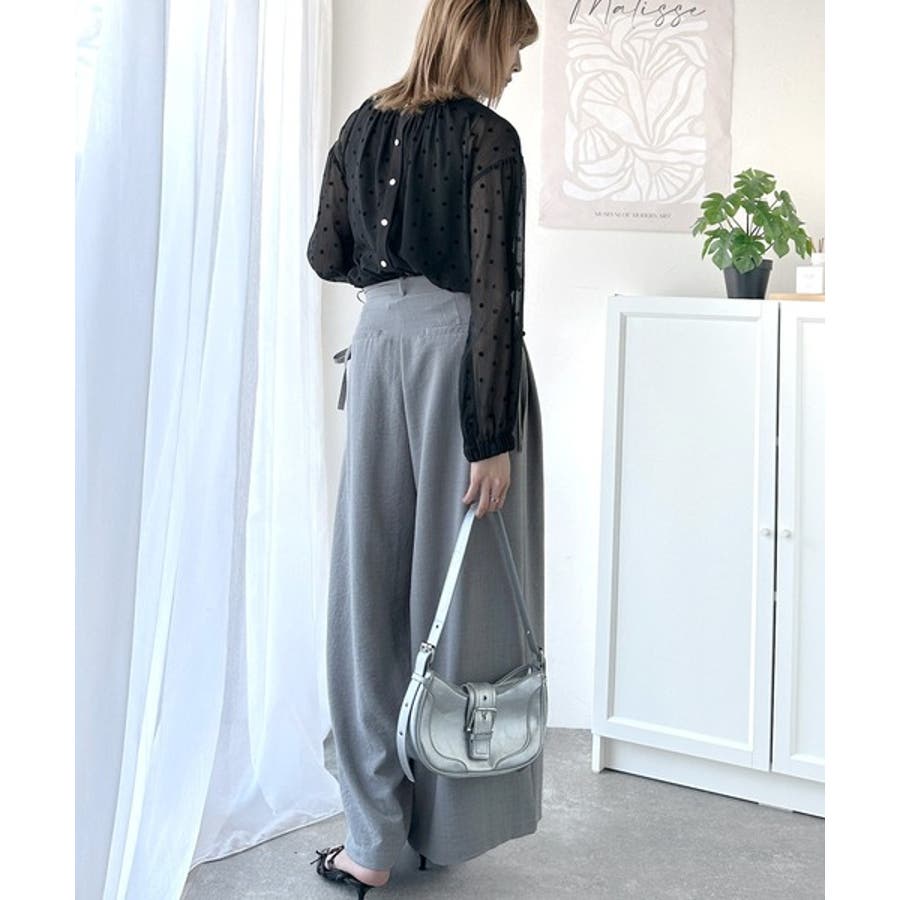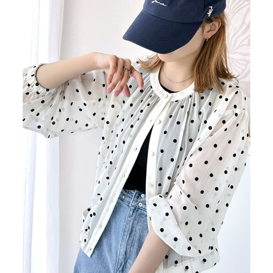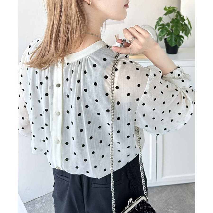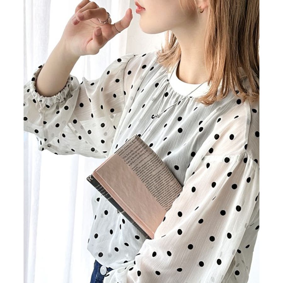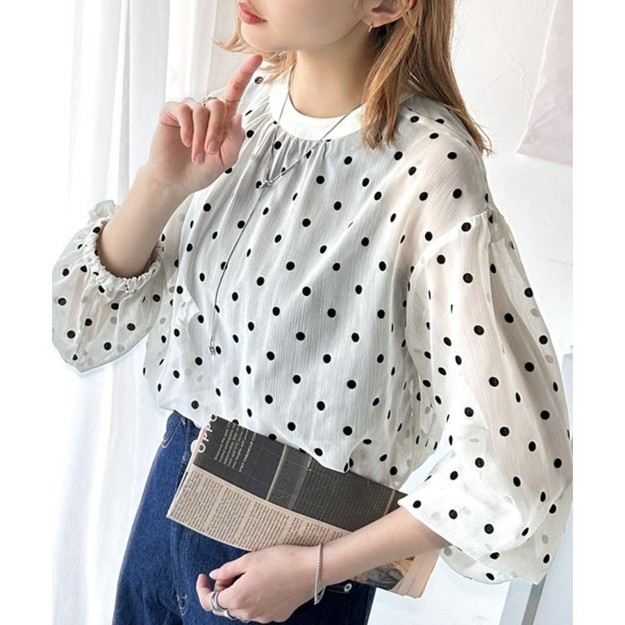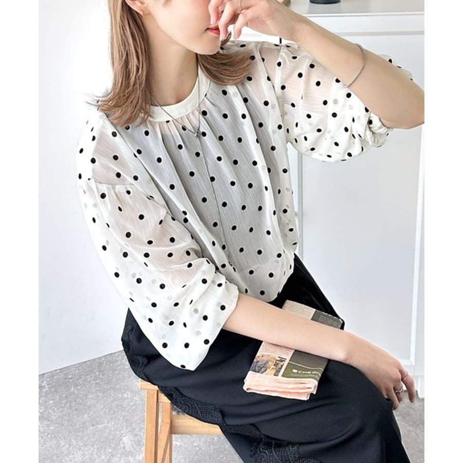 軽やかなシアードット素材を使用したクルーネックブラウス。