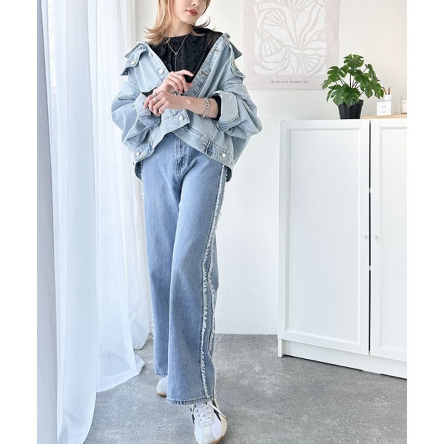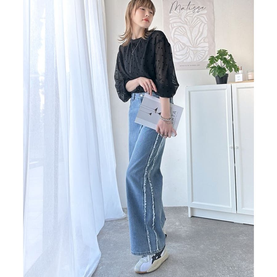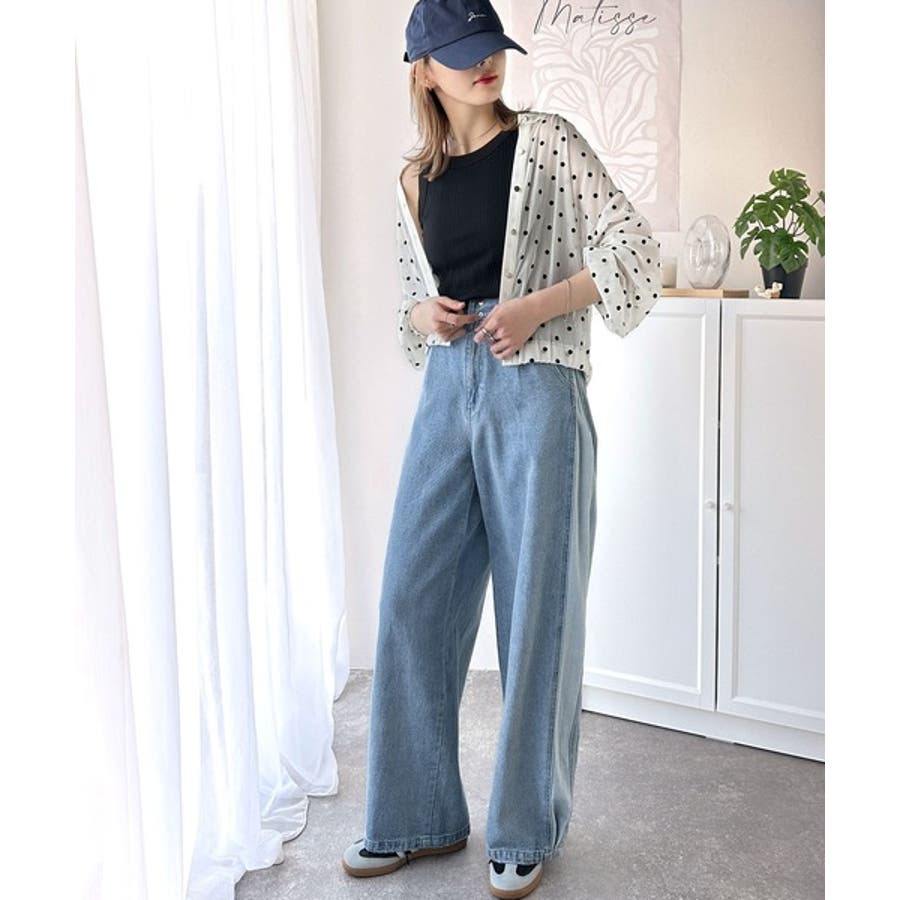 その日の気分に合わせてデニムやフレアパンツを合わせてもOK◎