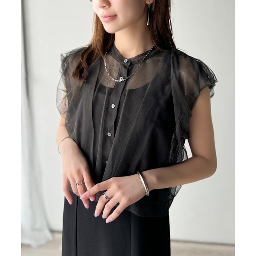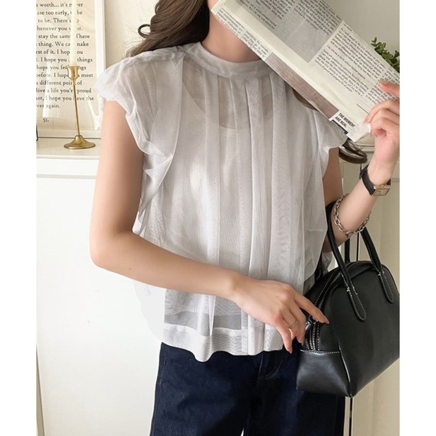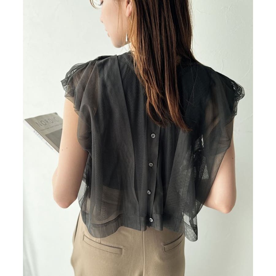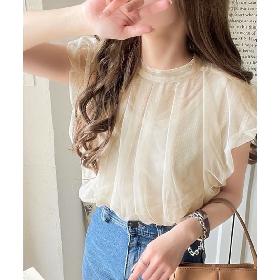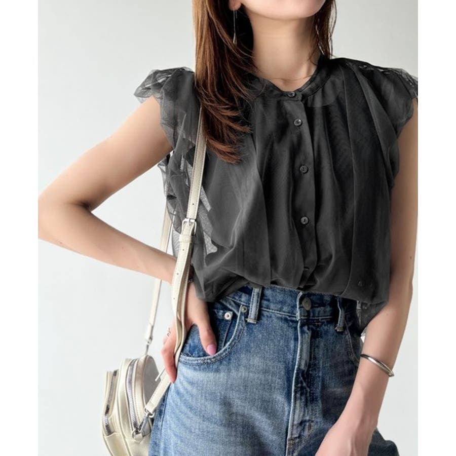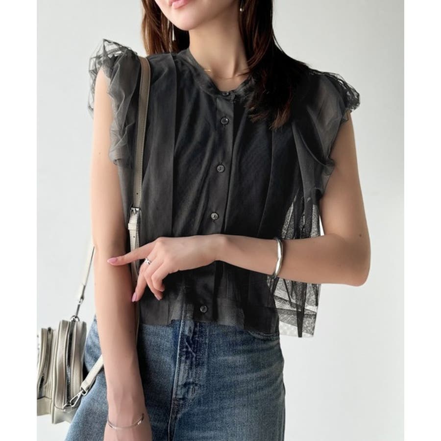 チュールの華やかさで1枚で女性らしさを引き立てるこのブラウスは、春夏コーデに1着は欲しいアイテム!