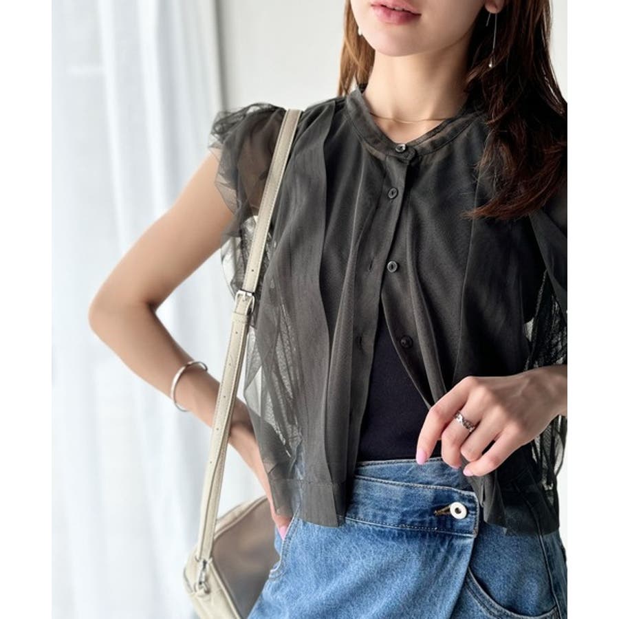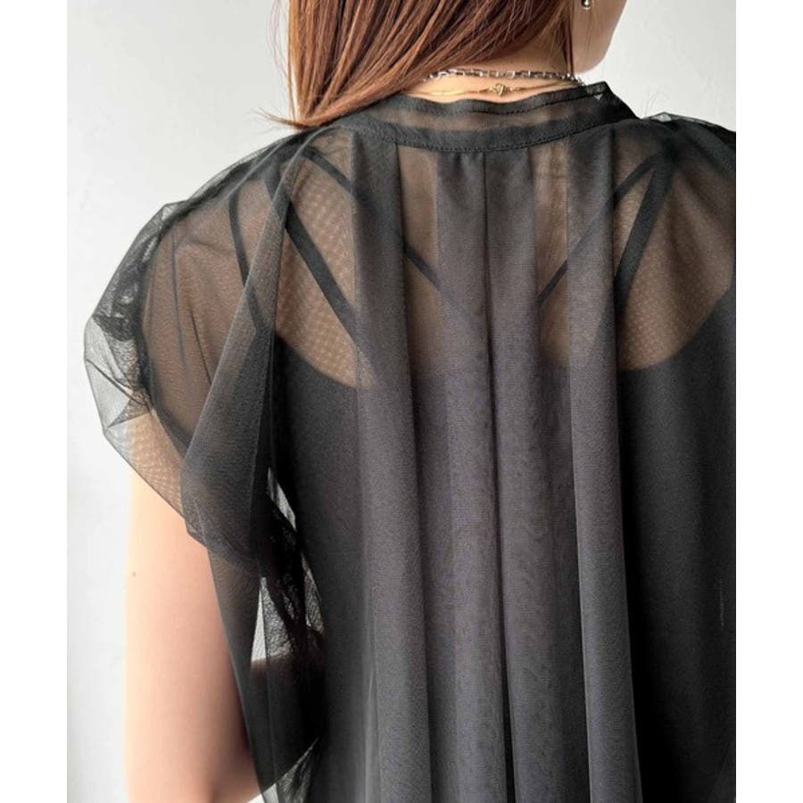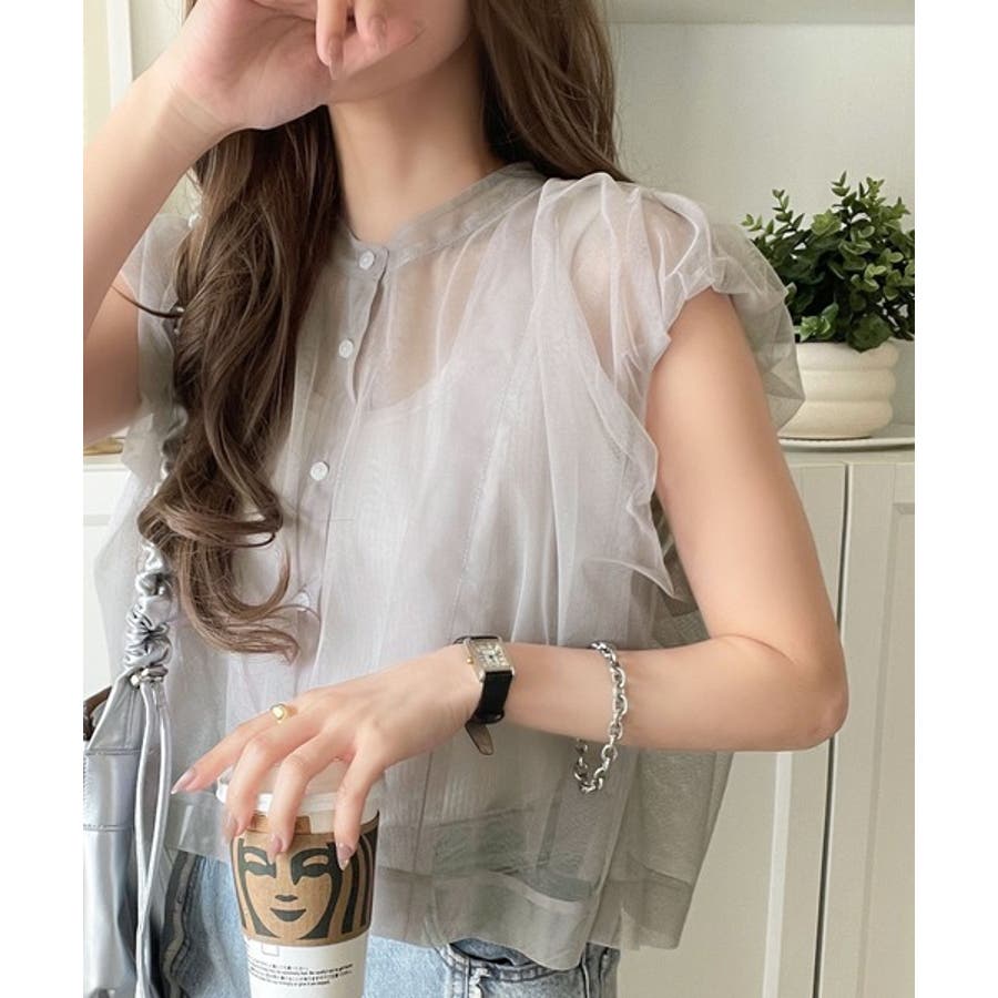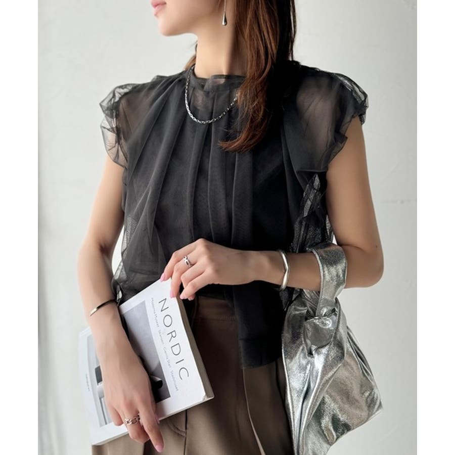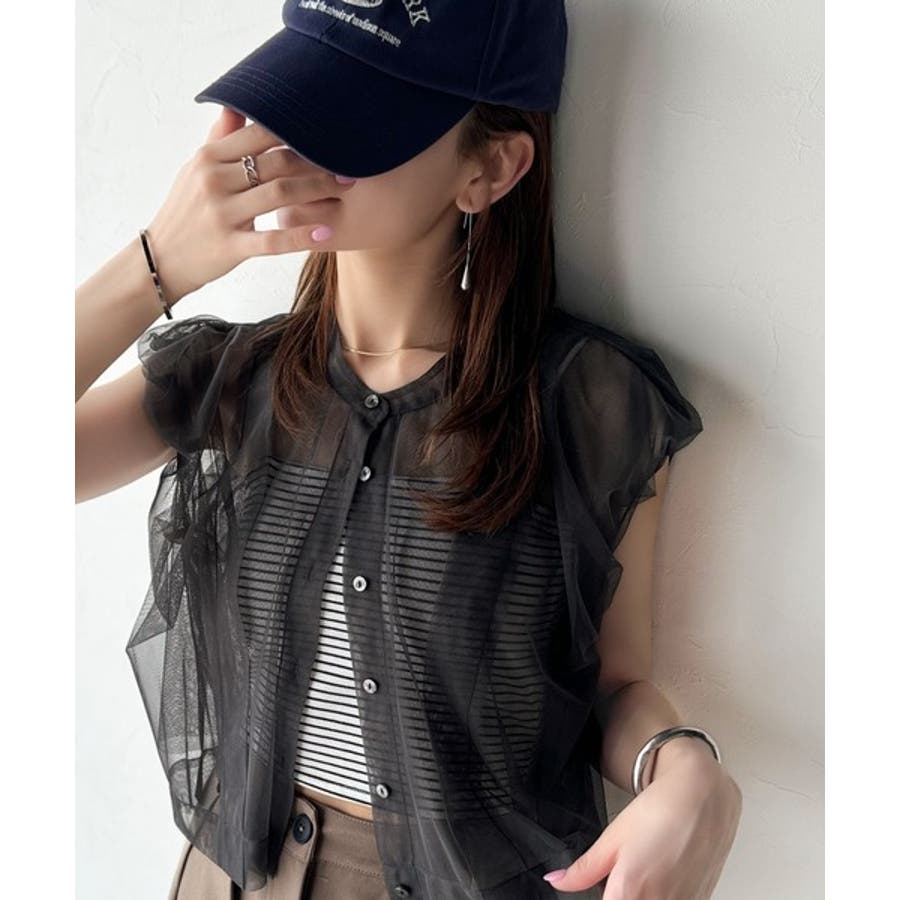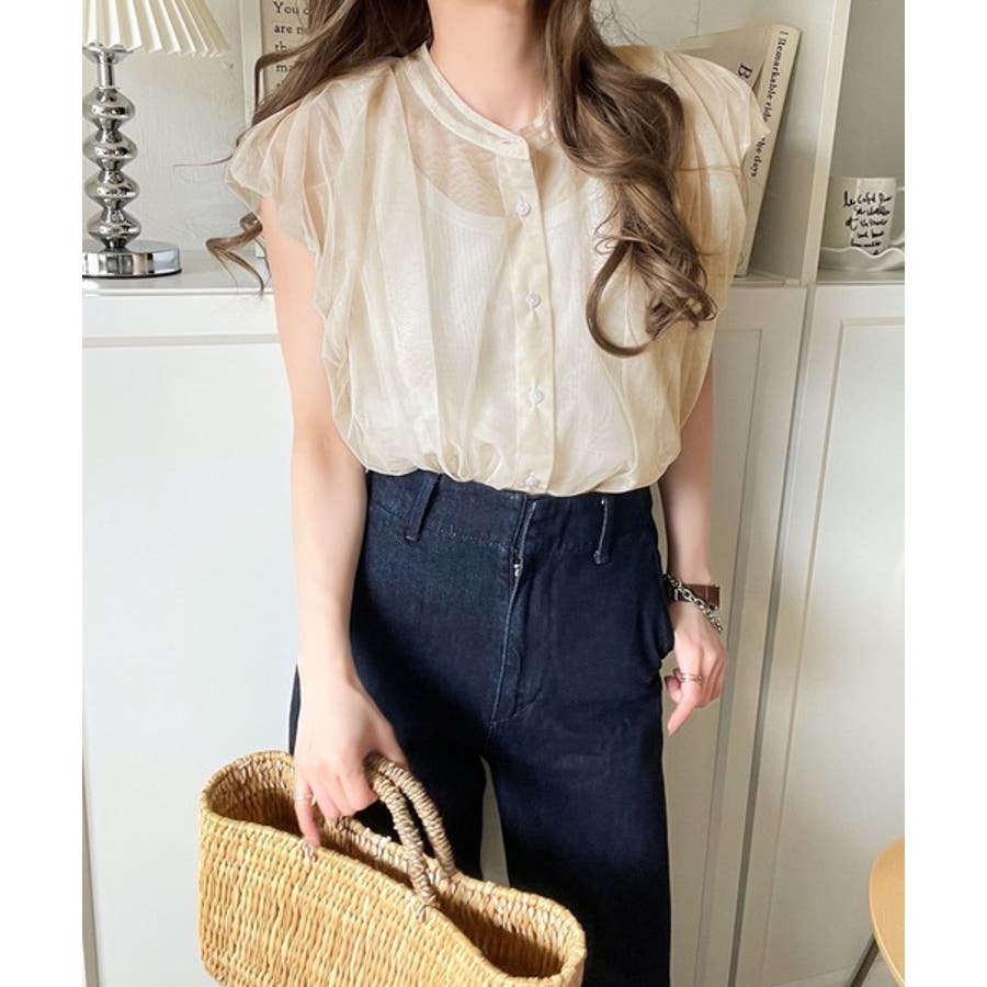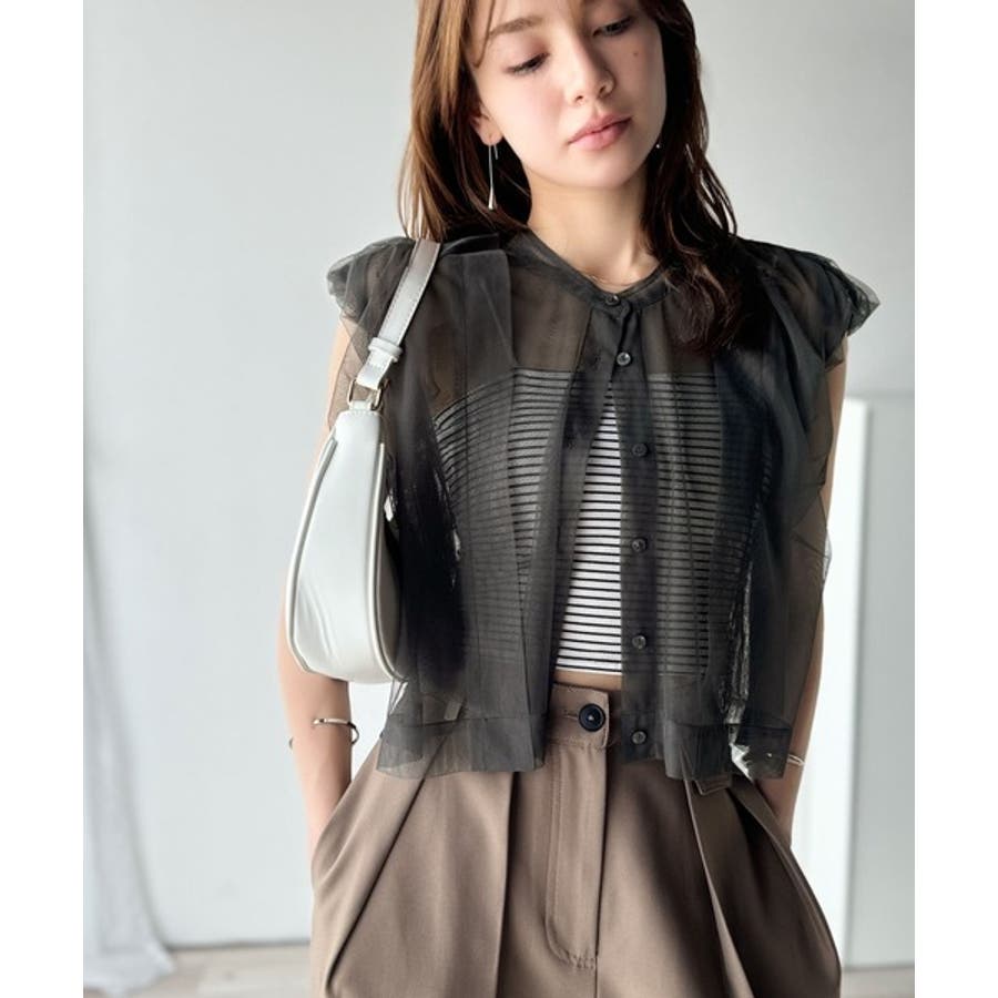 チュールの華やかさで1枚で女性らしさを引き立てるこのブラウスは、春夏コーデに1着は欲しいアイテム!
