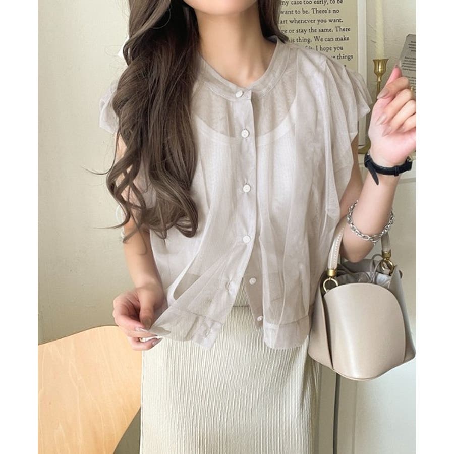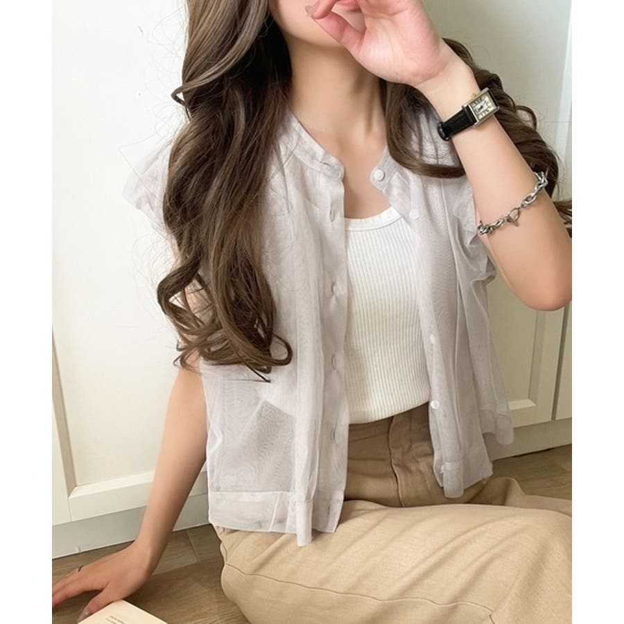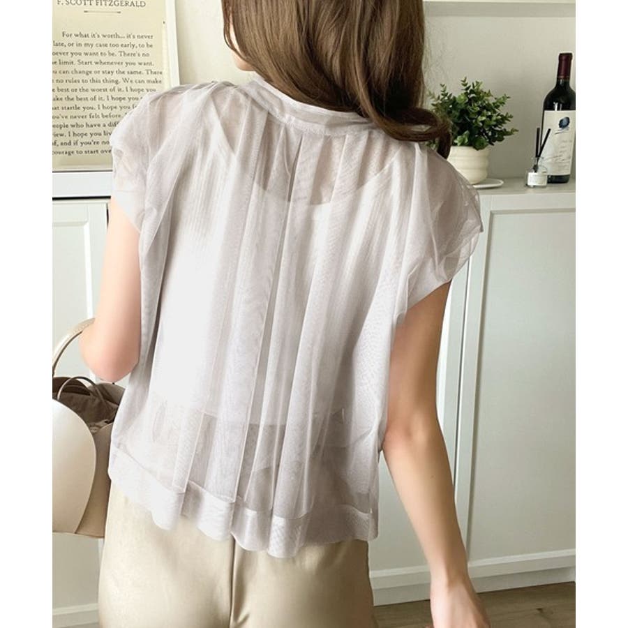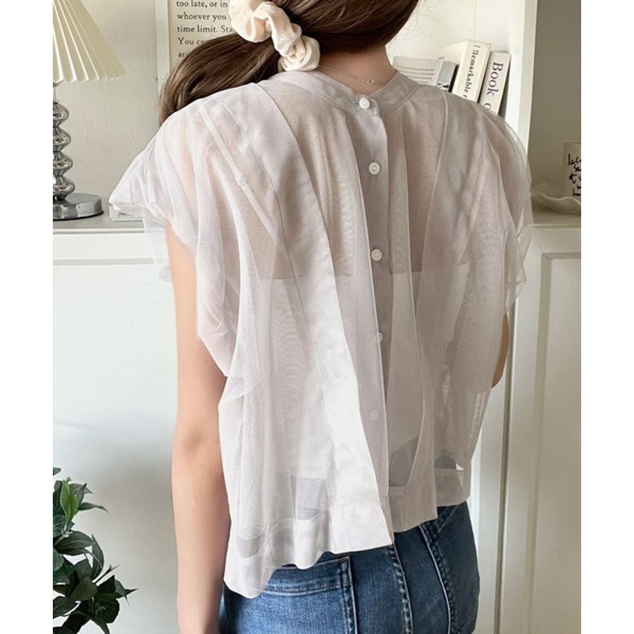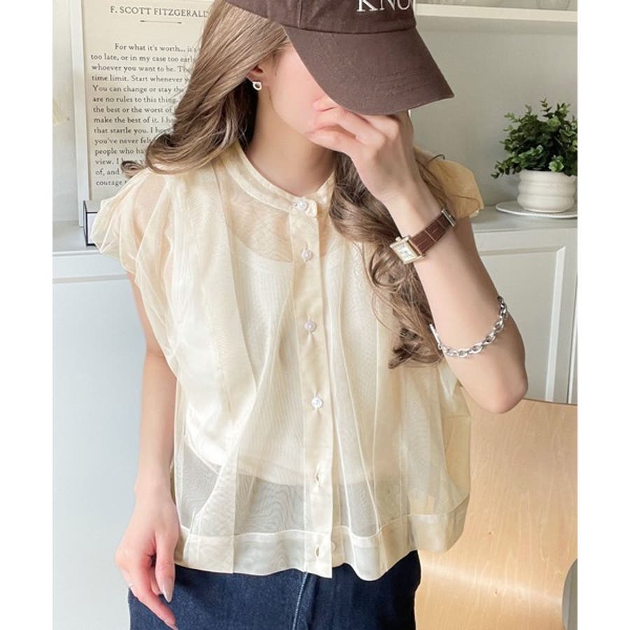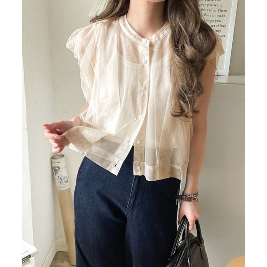チュールの華やかさで1枚で女性らしさを引き立てるこのブラウスは、春夏コーデに1着は欲しいアイテム!