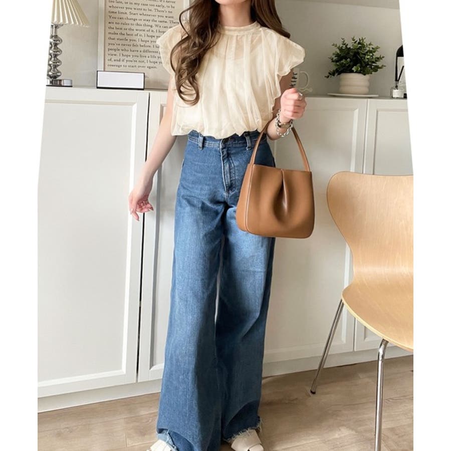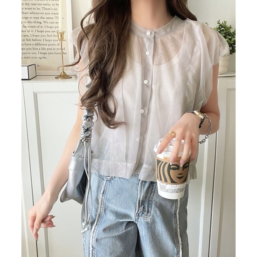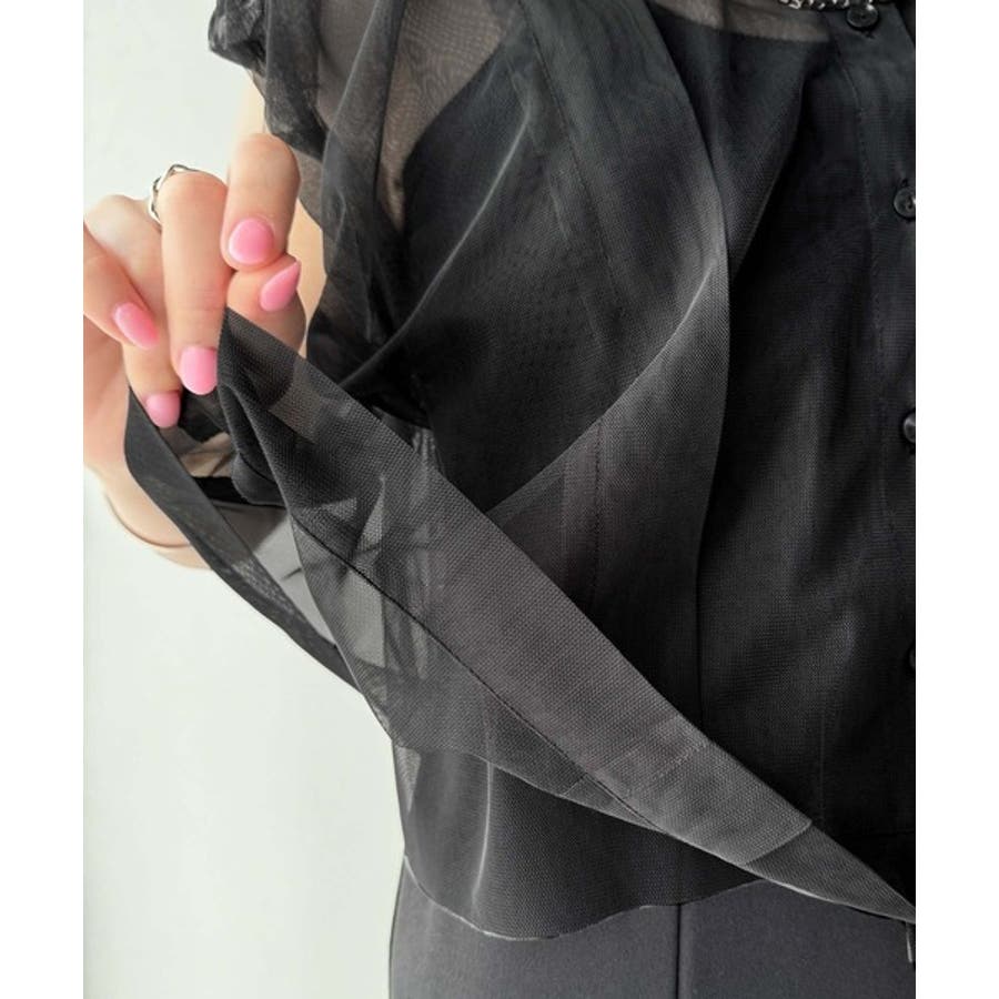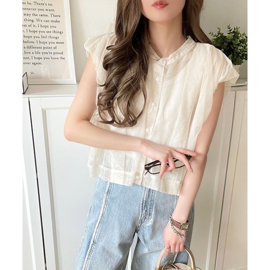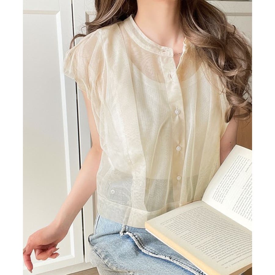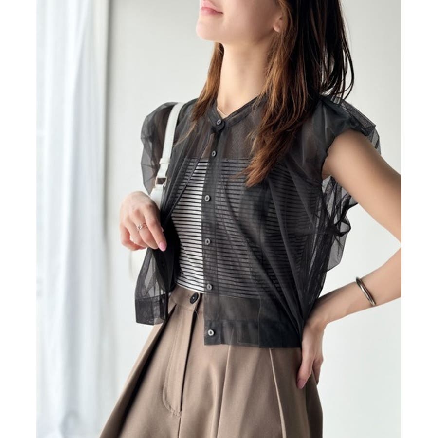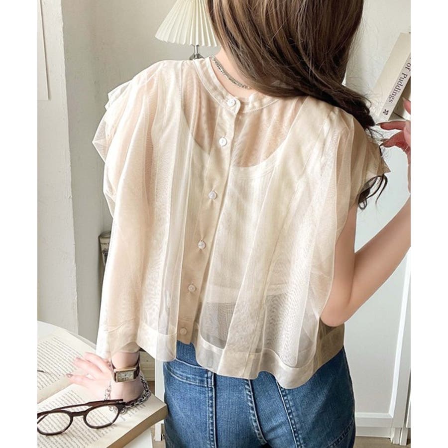 チュールの華やかさで1枚で女性らしさを引き立てるこのブラウスは、春夏コーデに1着は欲しいアイテム!