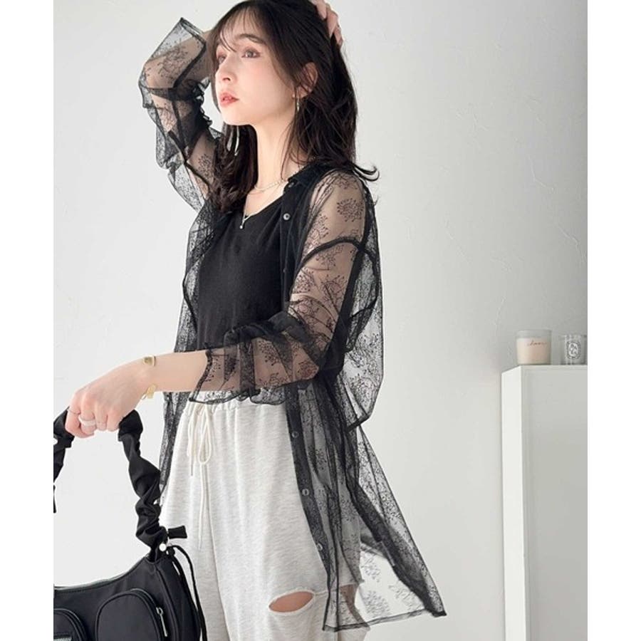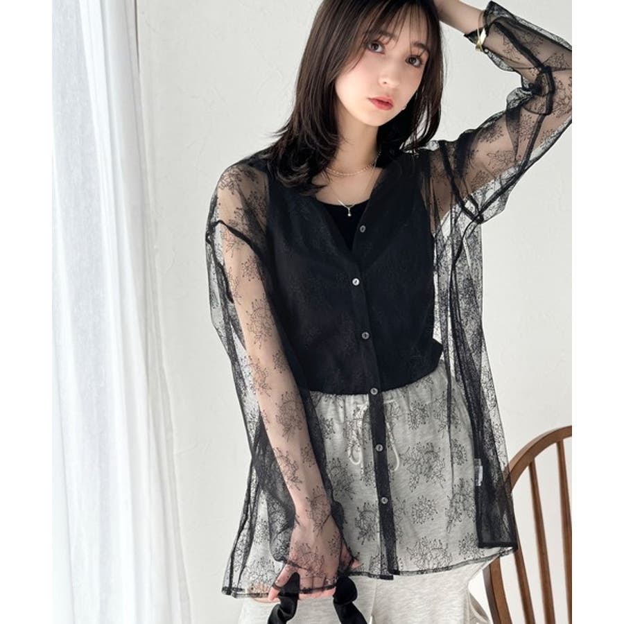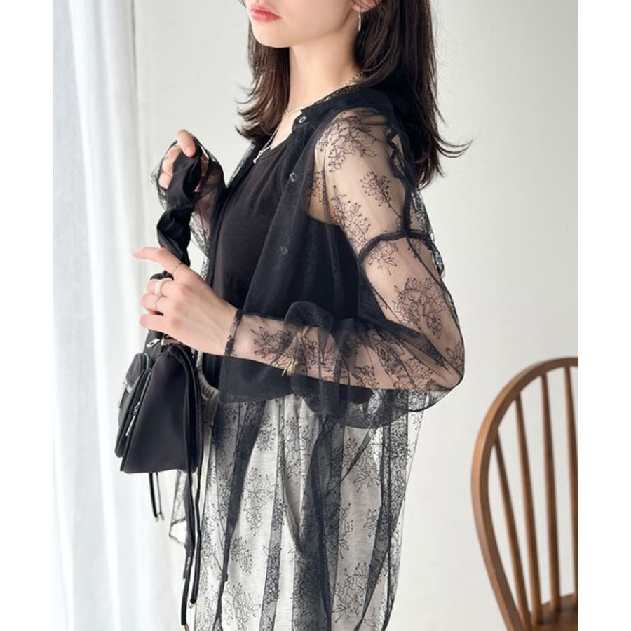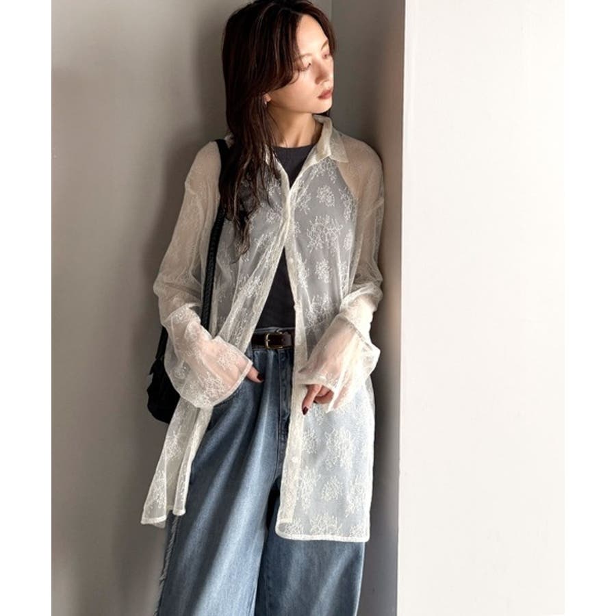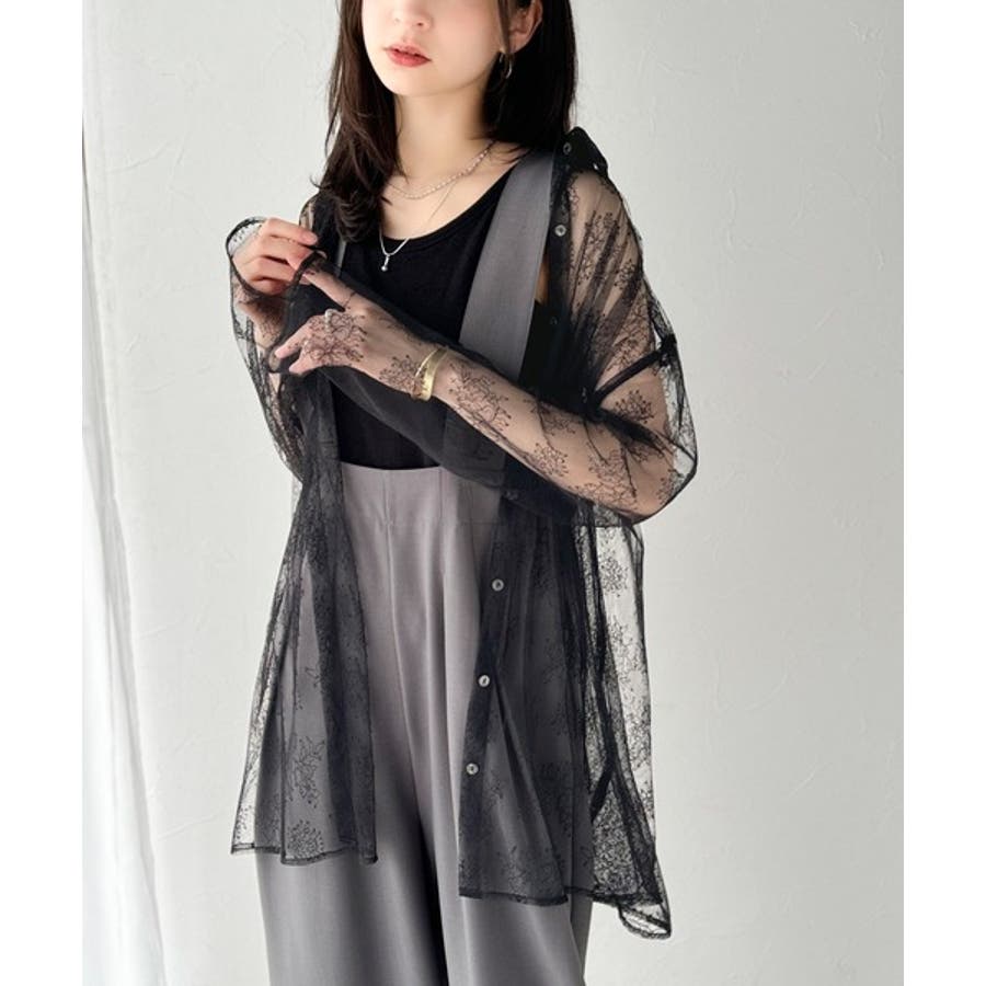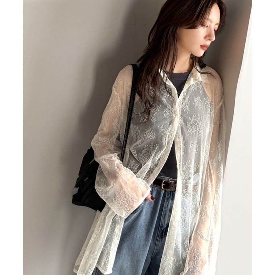 甘さ控えめ、大人の肌魅せ♪チュールレースオーバーシャツ(長袖)