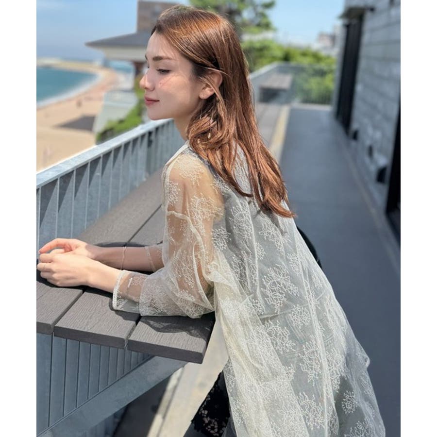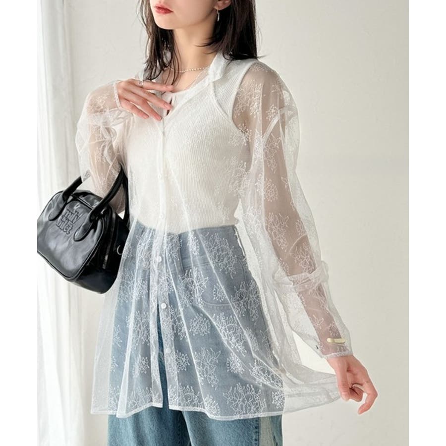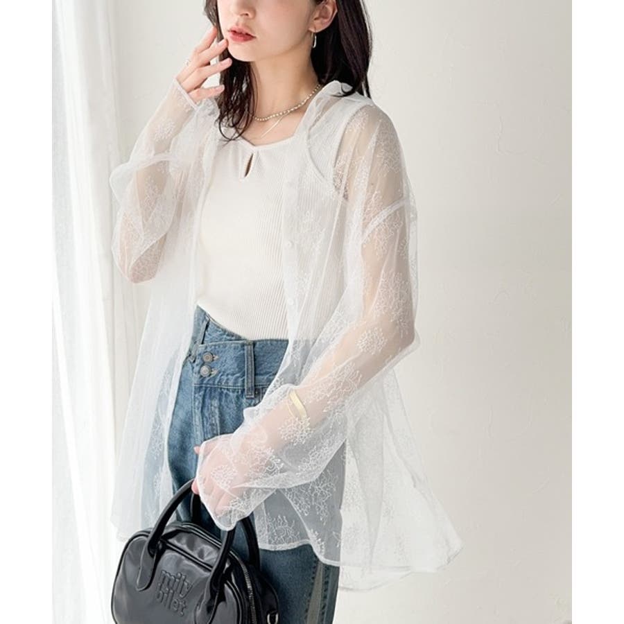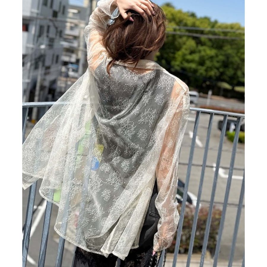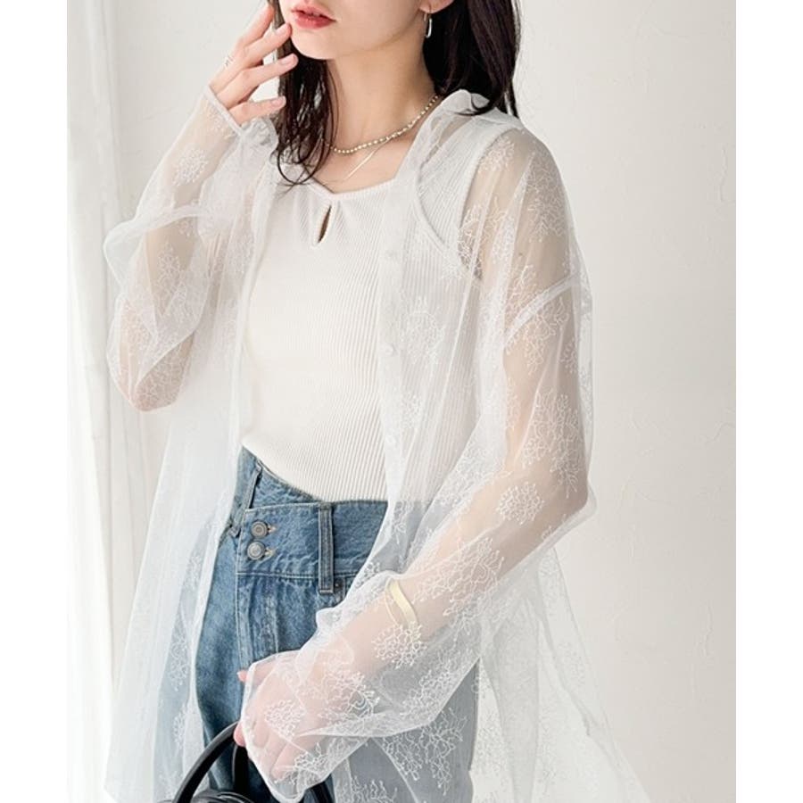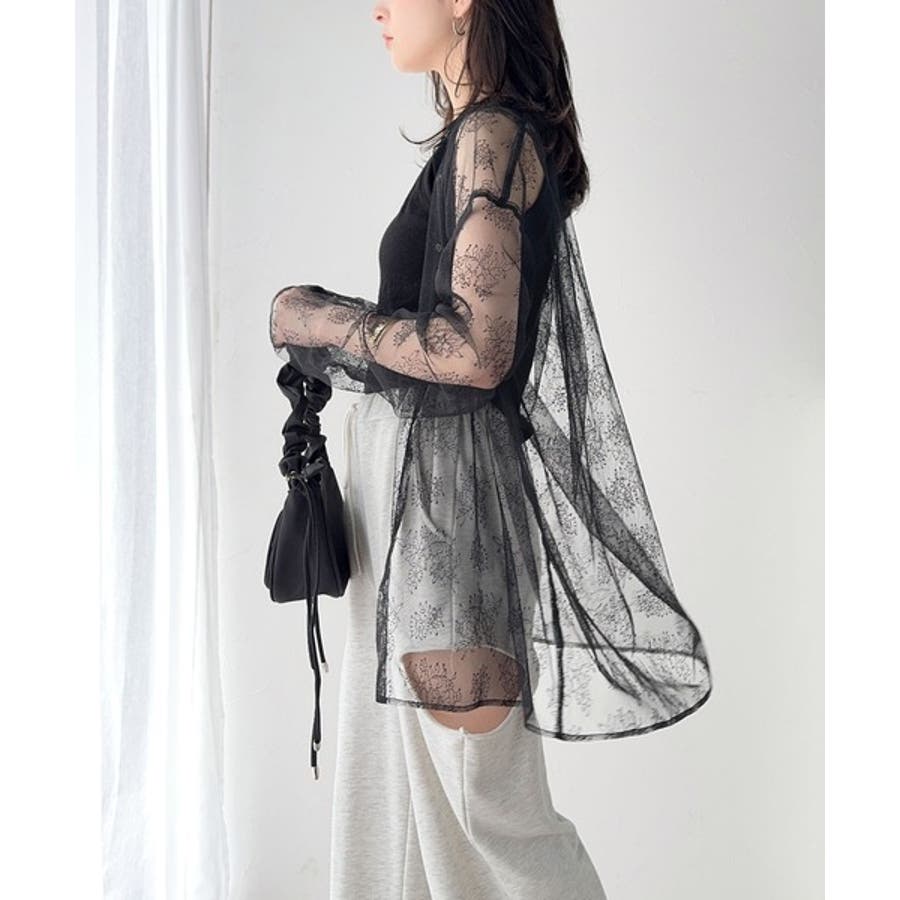 甘さ控えめ、大人の肌魅せ♪チュールレースオーバーシャツ(長袖)
