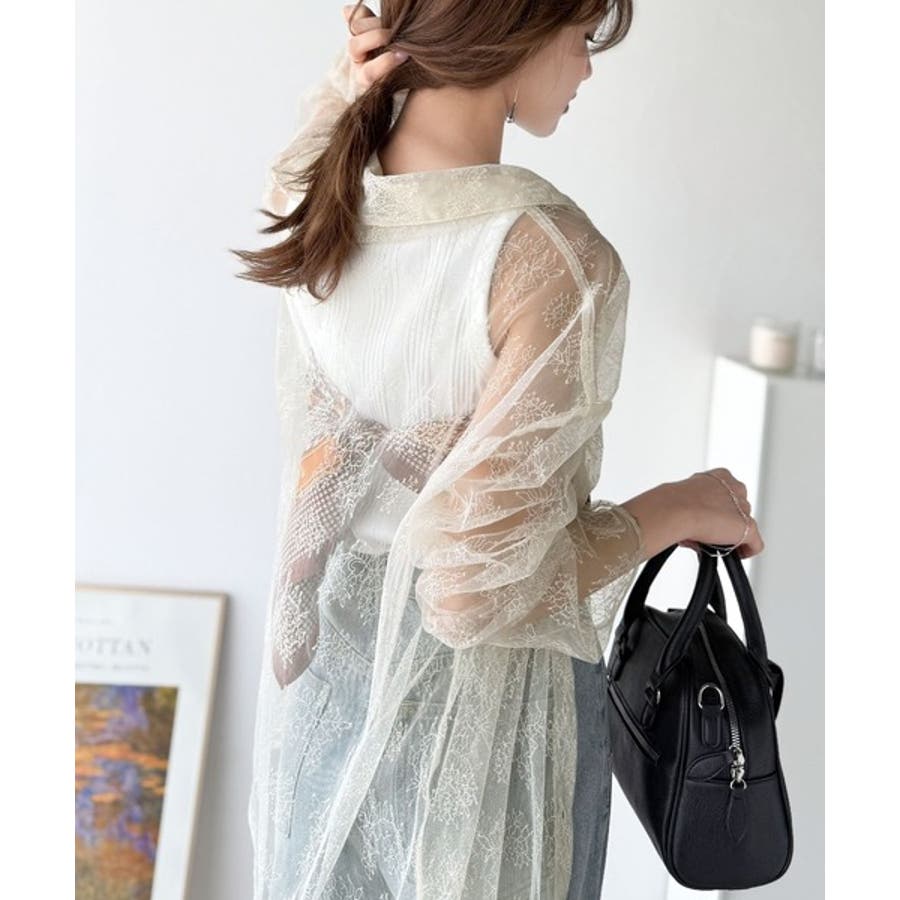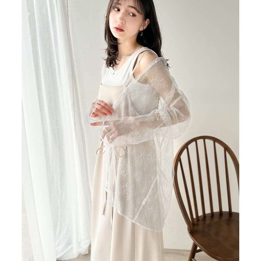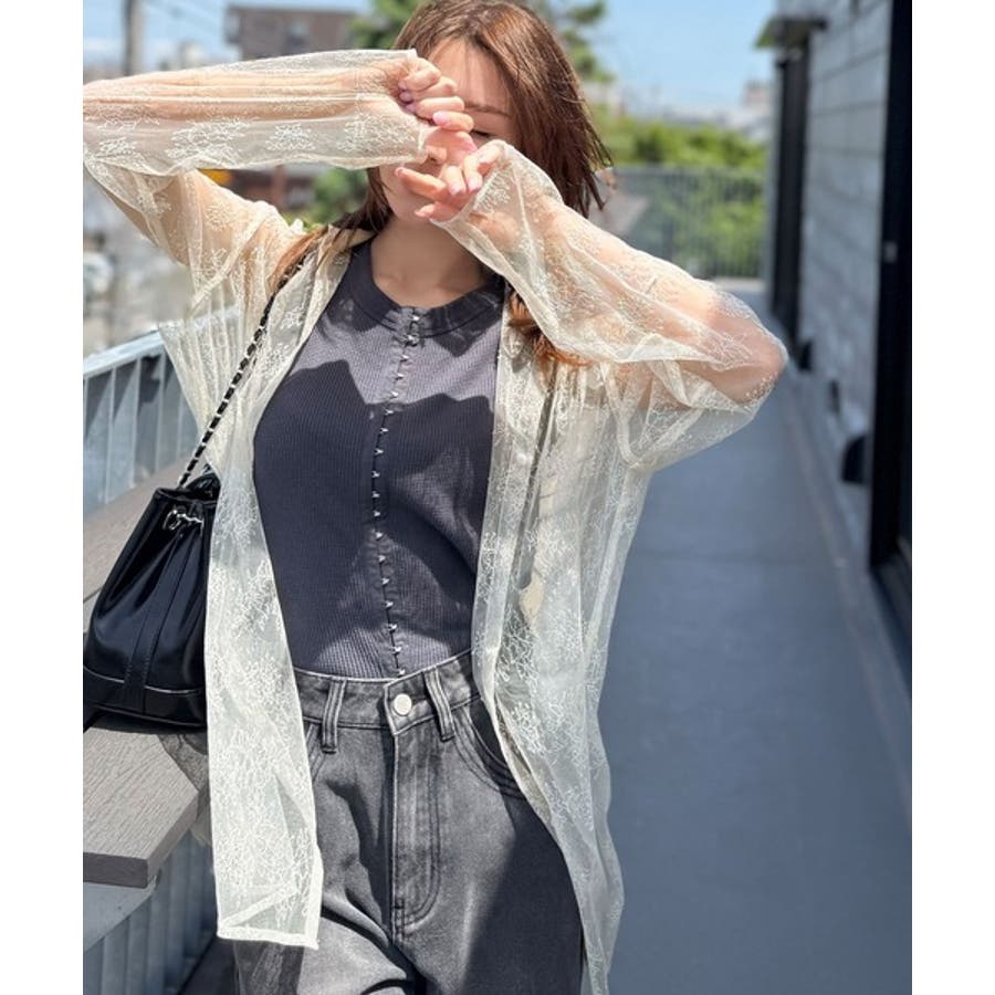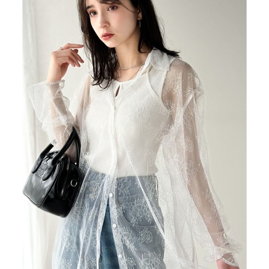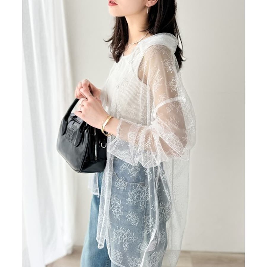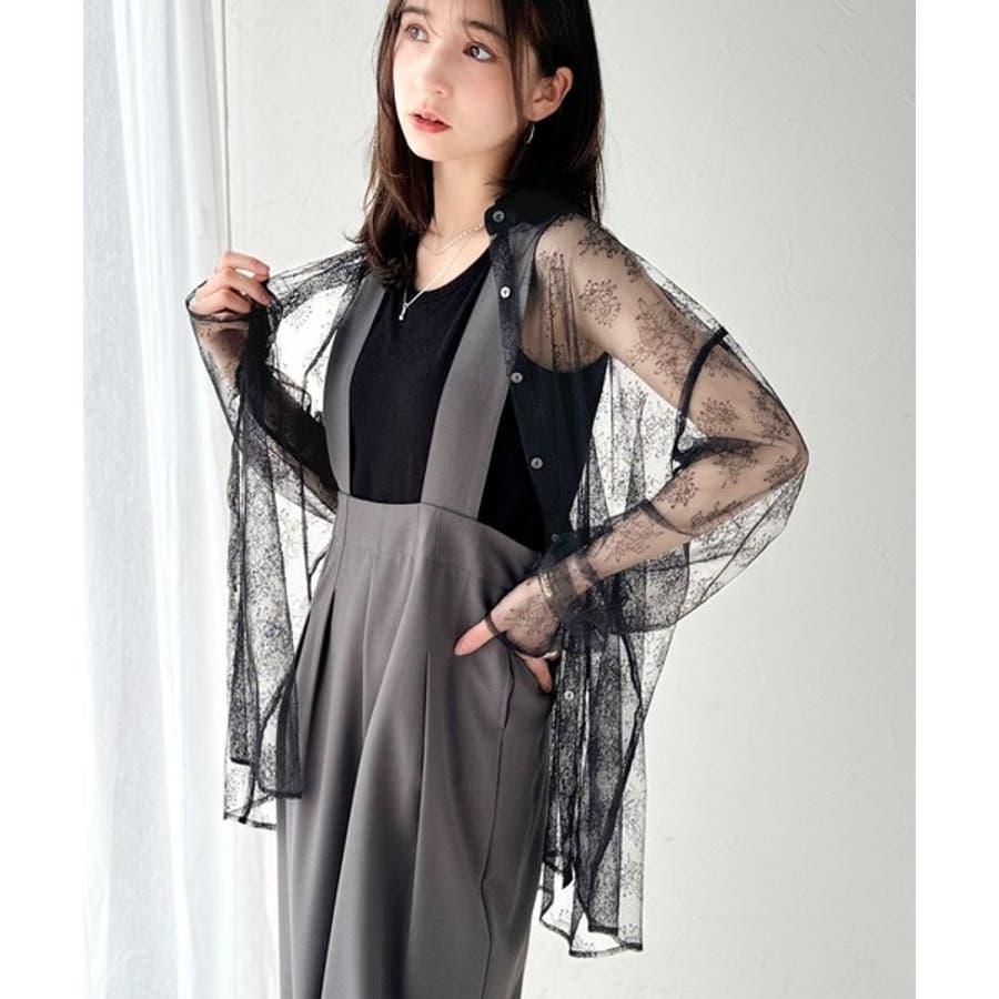 甘さ控えめ、大人の肌魅せ♪チュールレースオーバーシャツ(長袖)