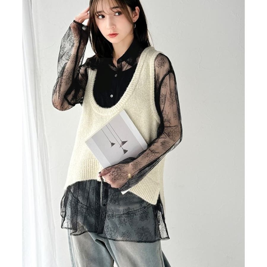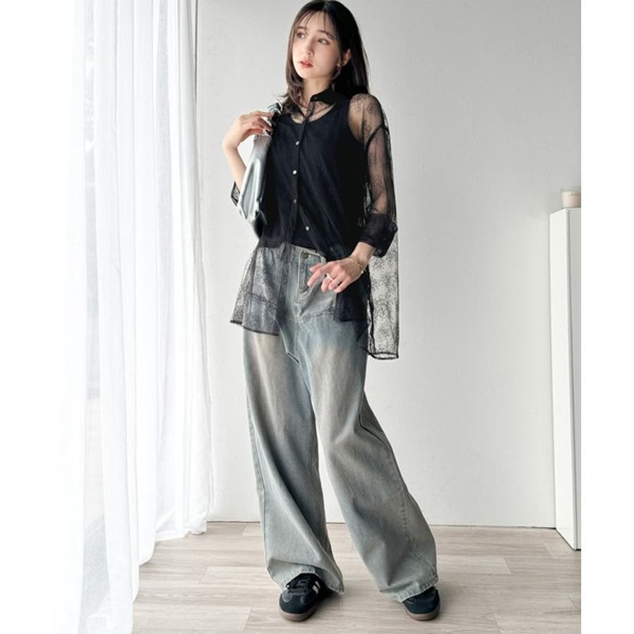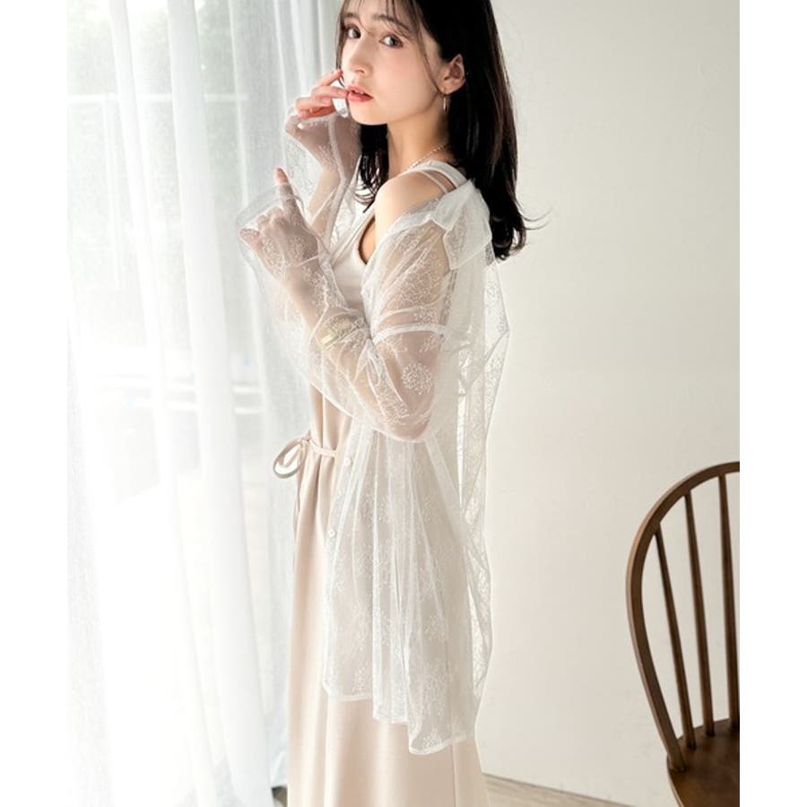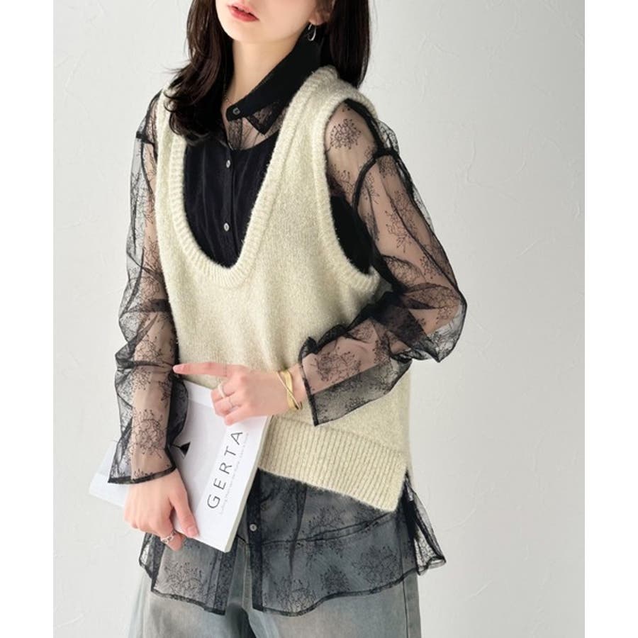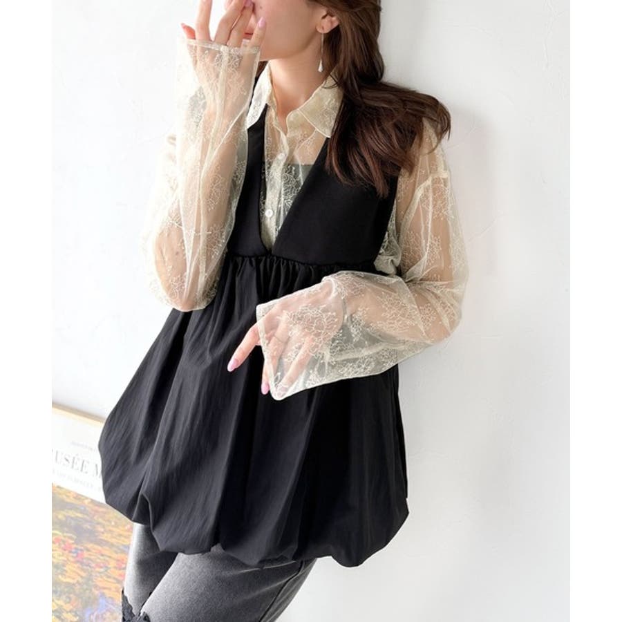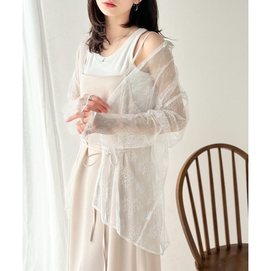 甘さ控えめ、大人の肌魅せ♪チュールレースオーバーシャツ(長袖)