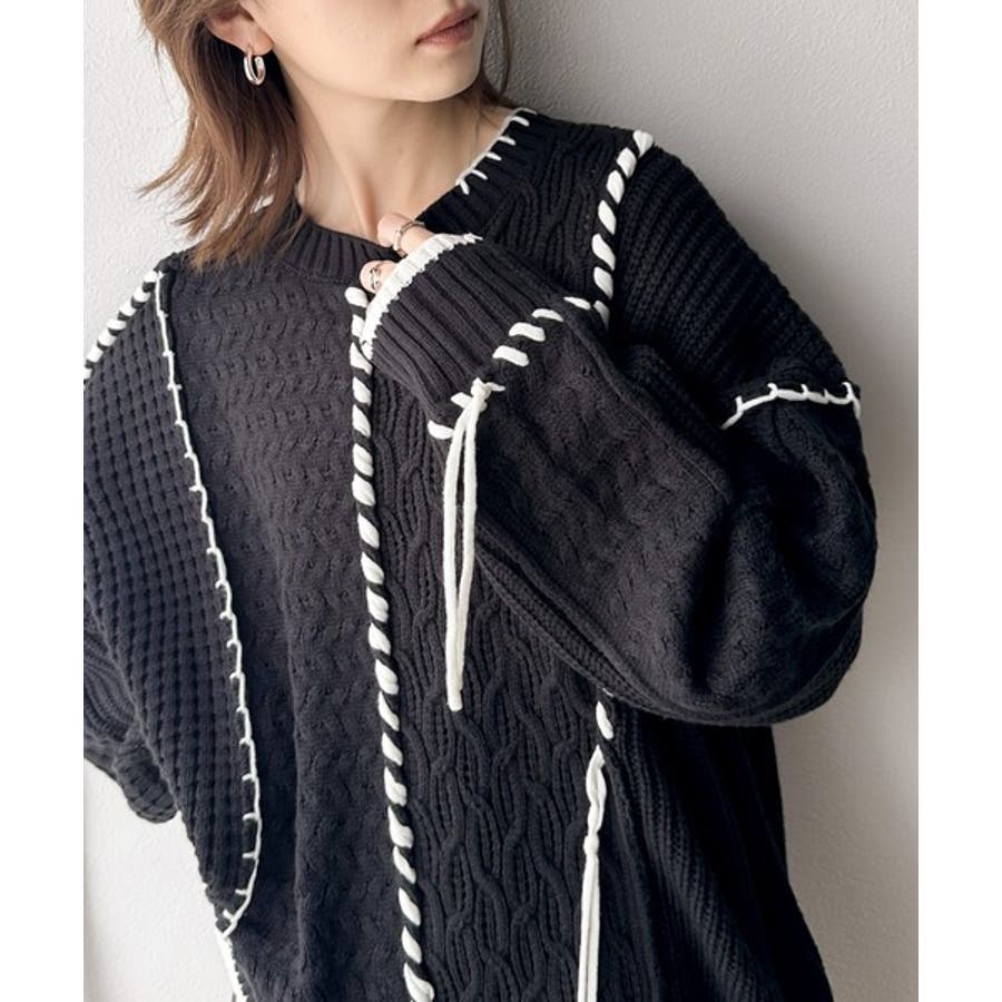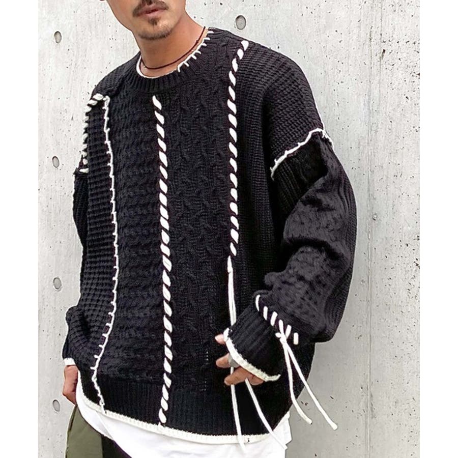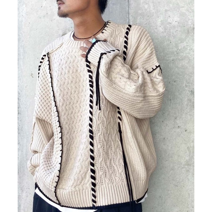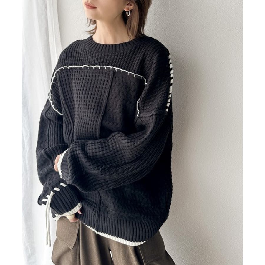存在感放つ、2wayクレイジーステッチクルーネックニット