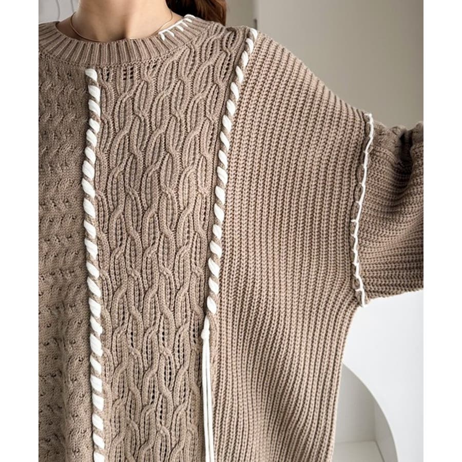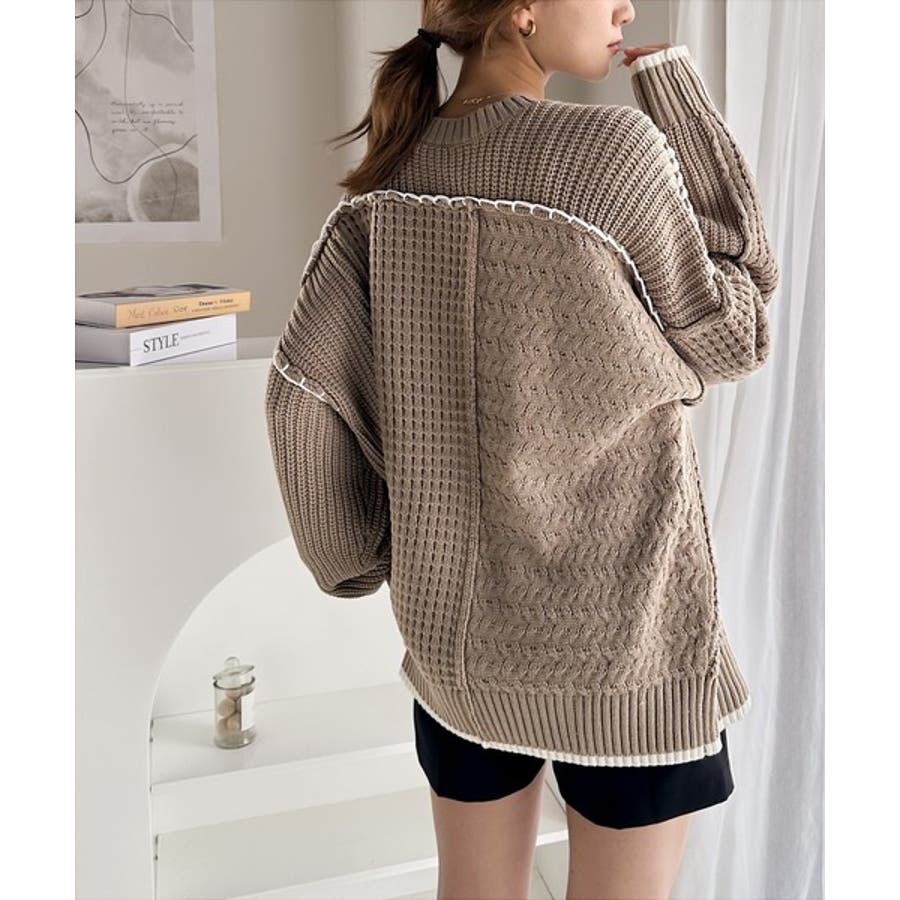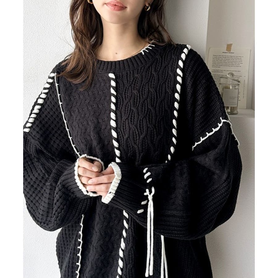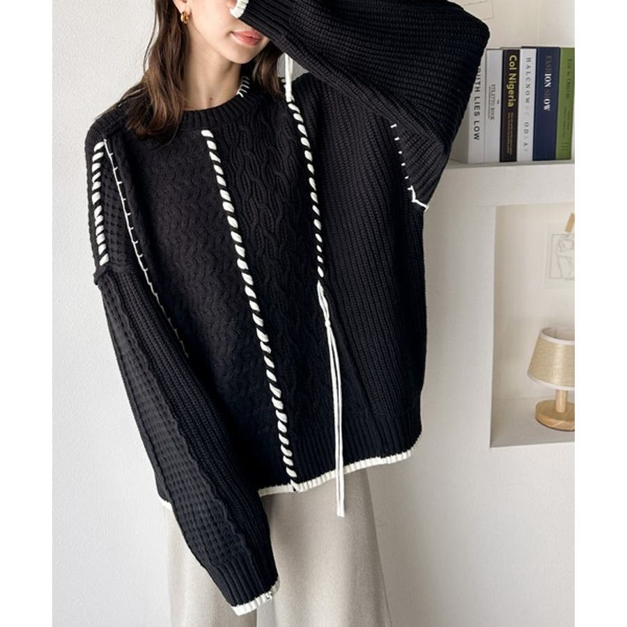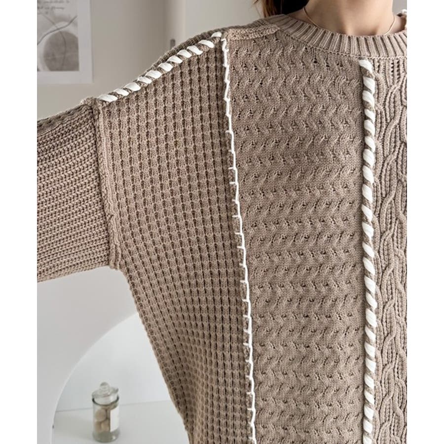 存在感放つ、2wayクレイジーステッチクルーネックニット