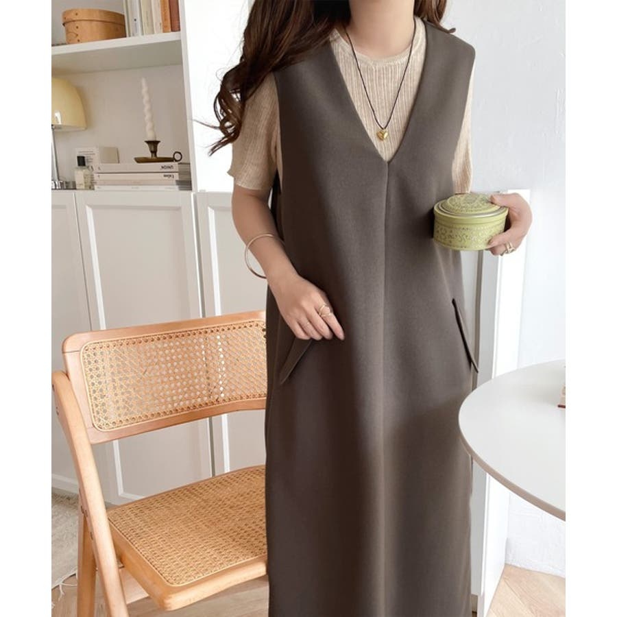 上品リラクシーstyle。ポケット付Vネックワンピース