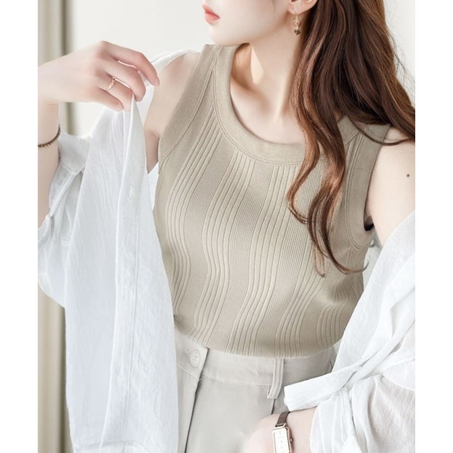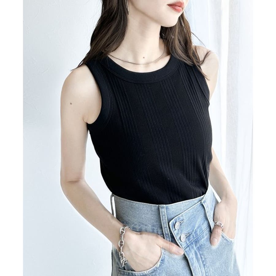 コーデの幅が広がるランダムリブタンクトップ。